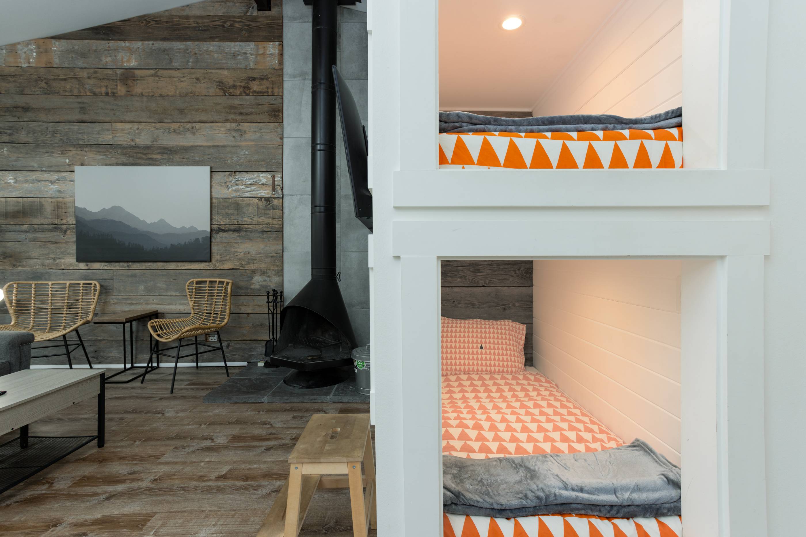 Stay together in this unique bedroom set-up with a queen bed and built-in bunk beds. Enjoy streaming all of your favorite shows and movies on the Amazon Fire TV Stick. The full bathroom has a shower over tub configuration.