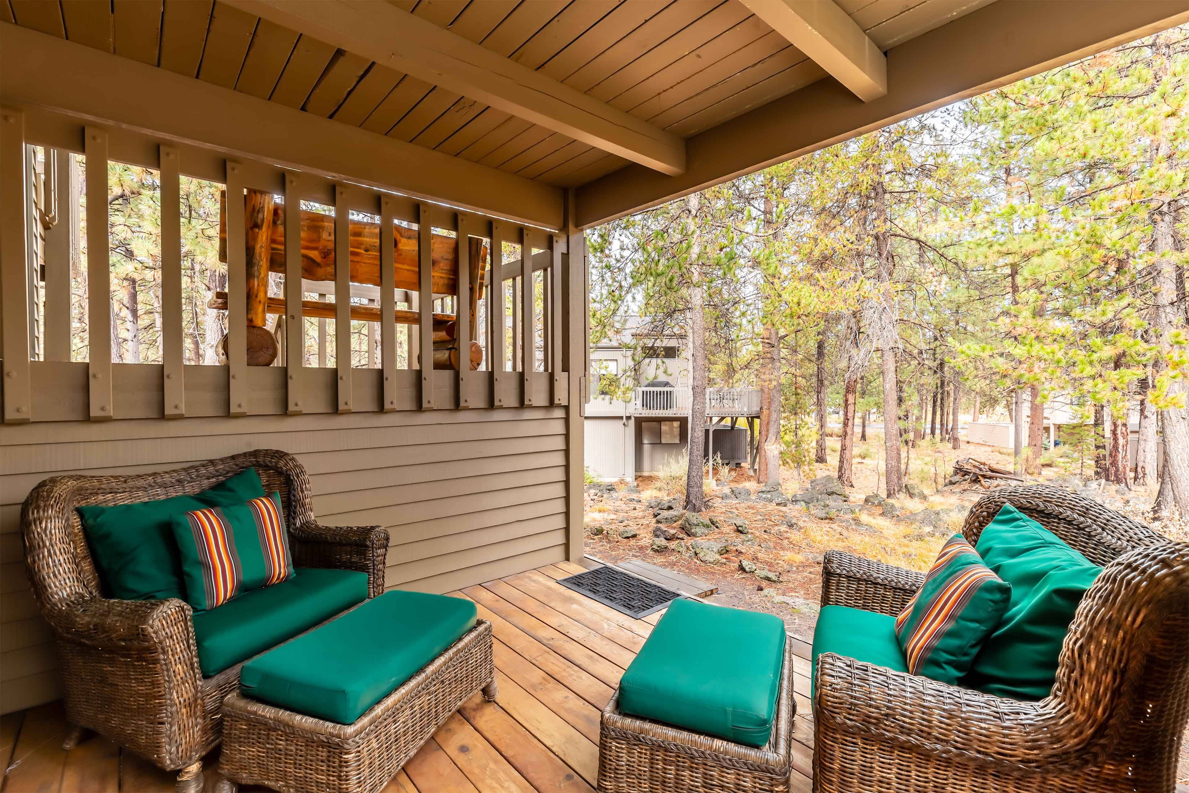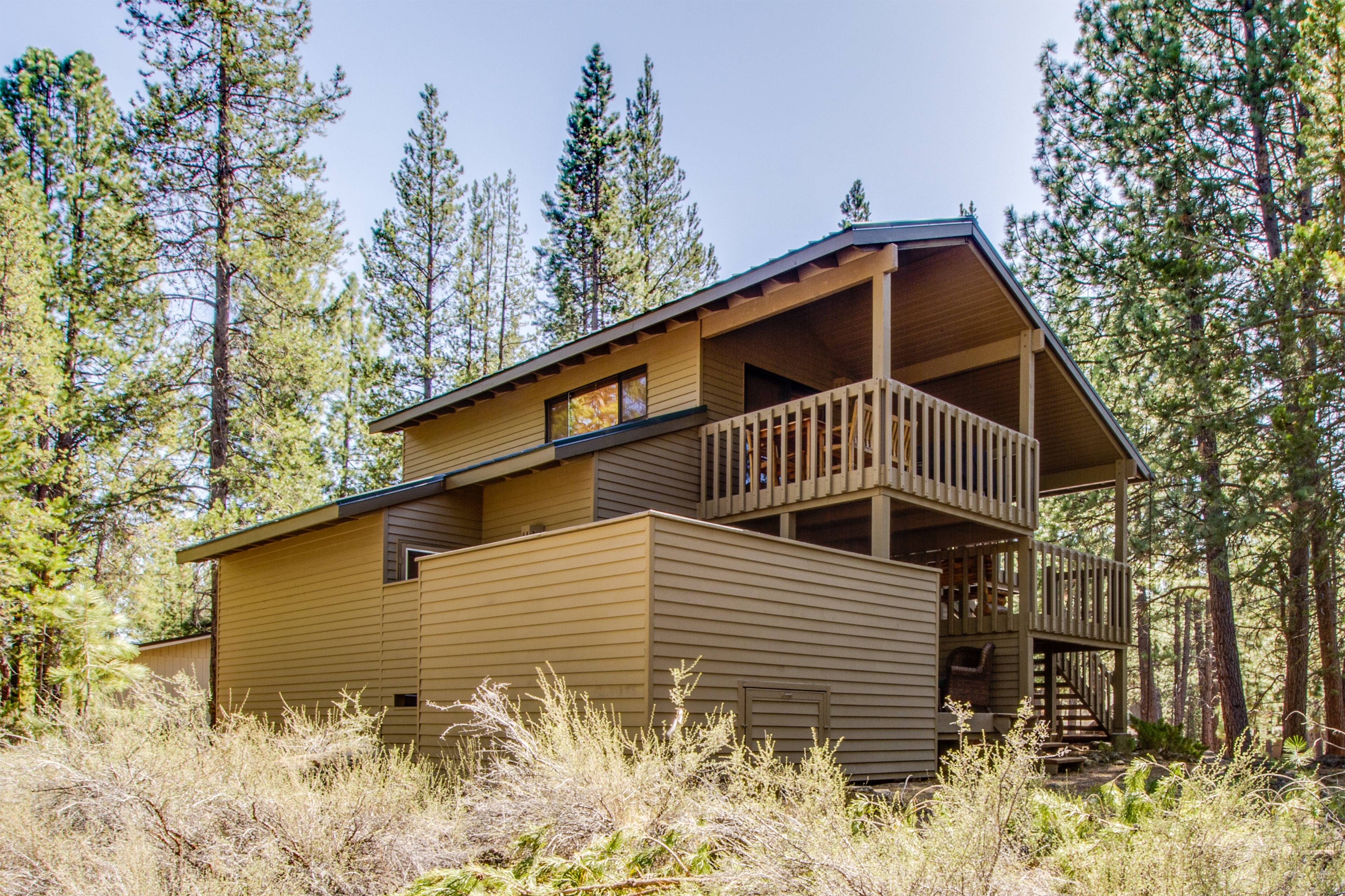 The home also includes bikes for guest use—an essential for exploring Sunriver’s 40+ miles of paved trails. After a day of biking, hiking, or floating the Deschutes River, relax with a game of cornhole or unwind under the stars. Dogs are welcome here too, and they’ll love the outdoor adventures just as much as you do.