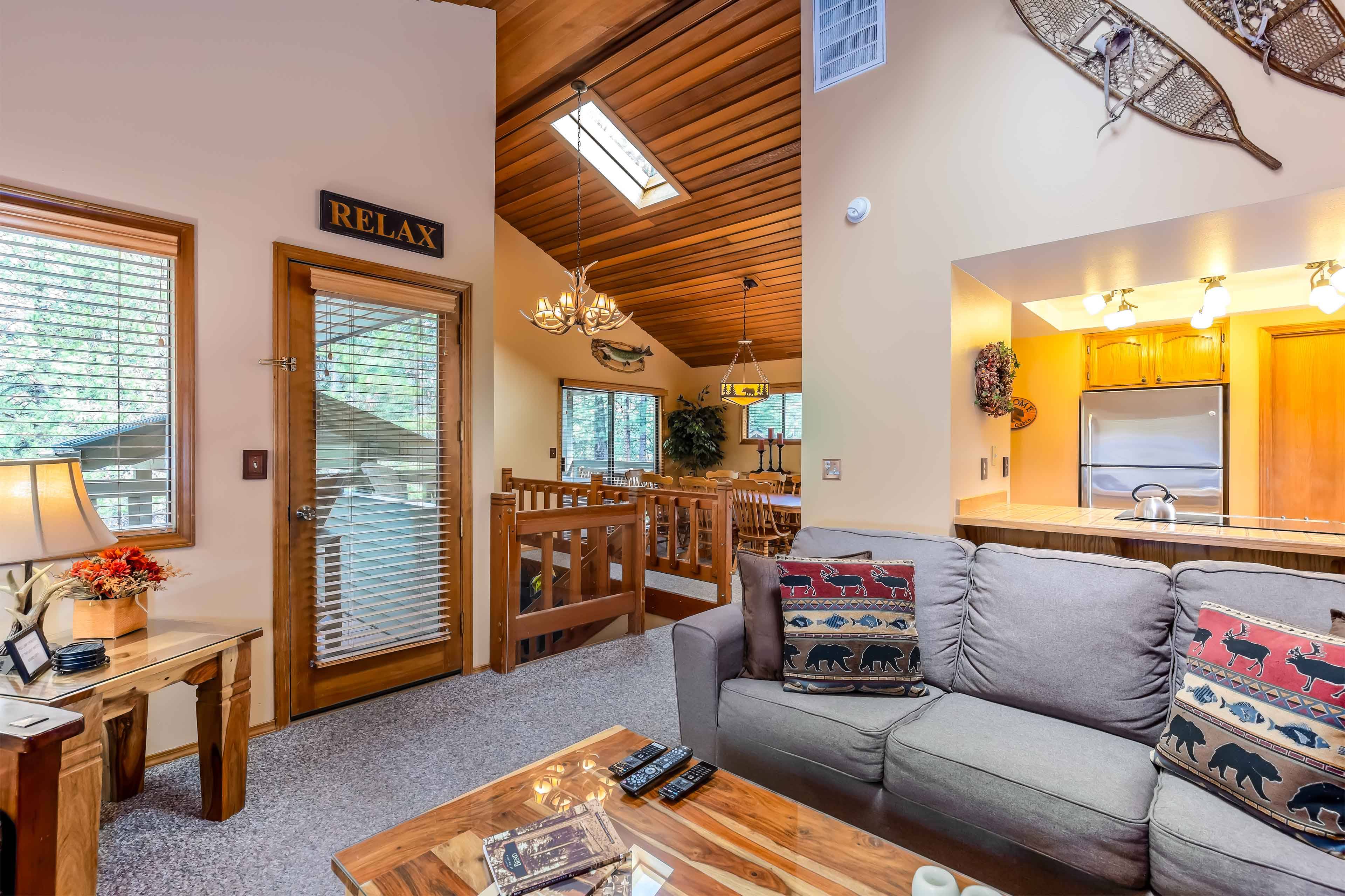 Welcome to your perfect family-friendly Sunriver retreat! This charming home features an open-concept living room full of character and warmth, making it the ideal place to relax after a day of adventure. The fully stocked kitchen and adjacent dining room on the upper main level make family meals a breeze, while the cozy living area is perfect for gathering around for games or a movie night.