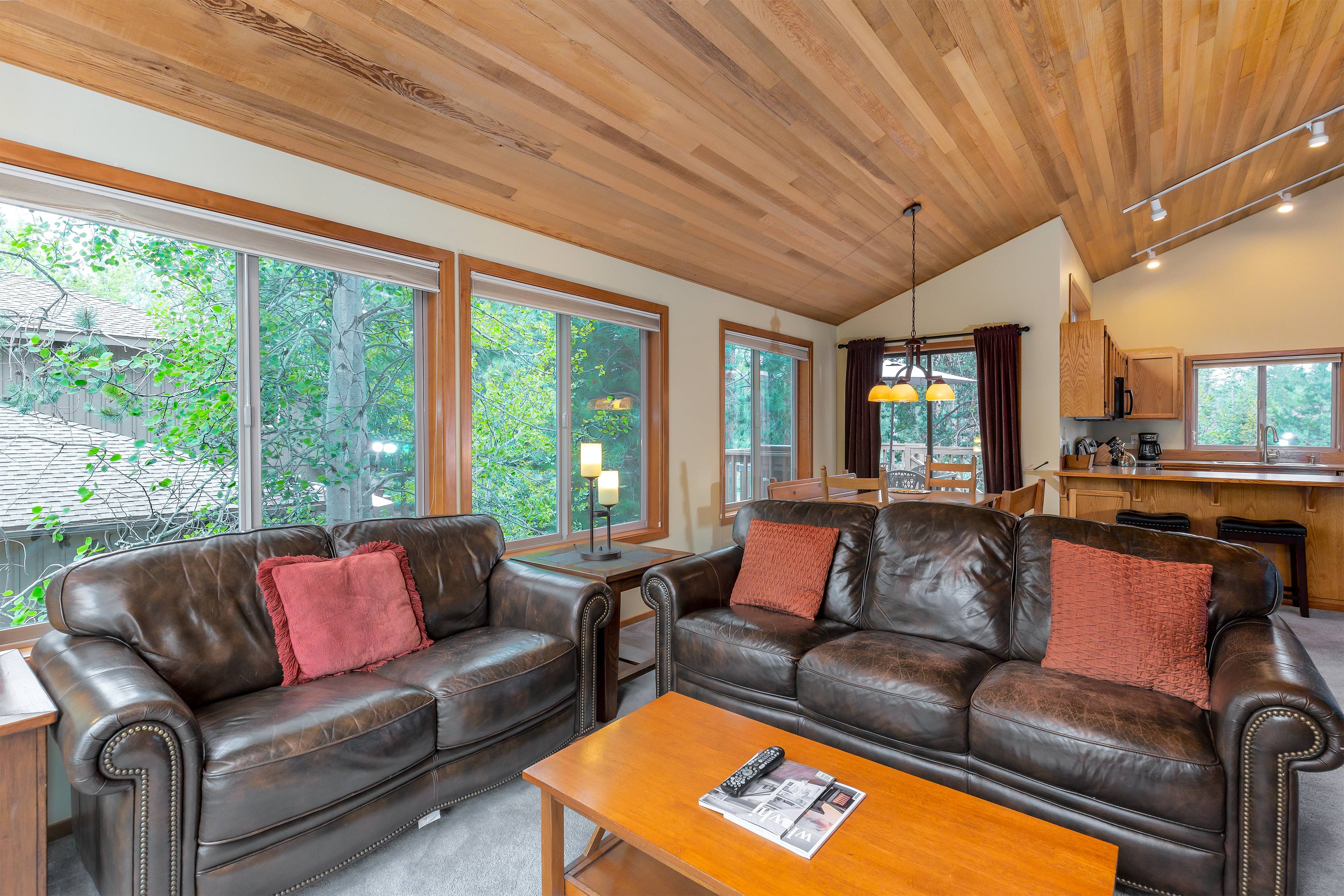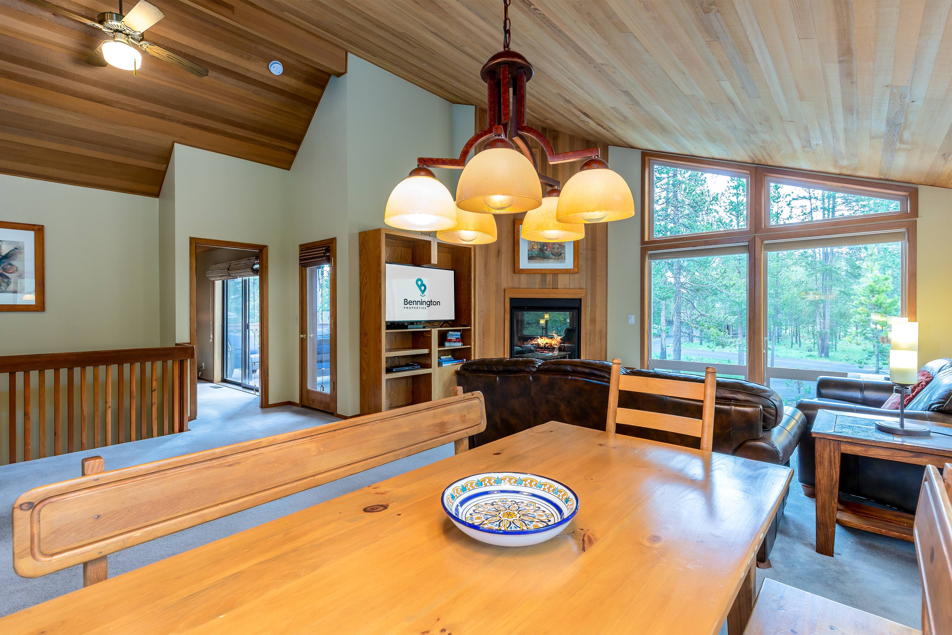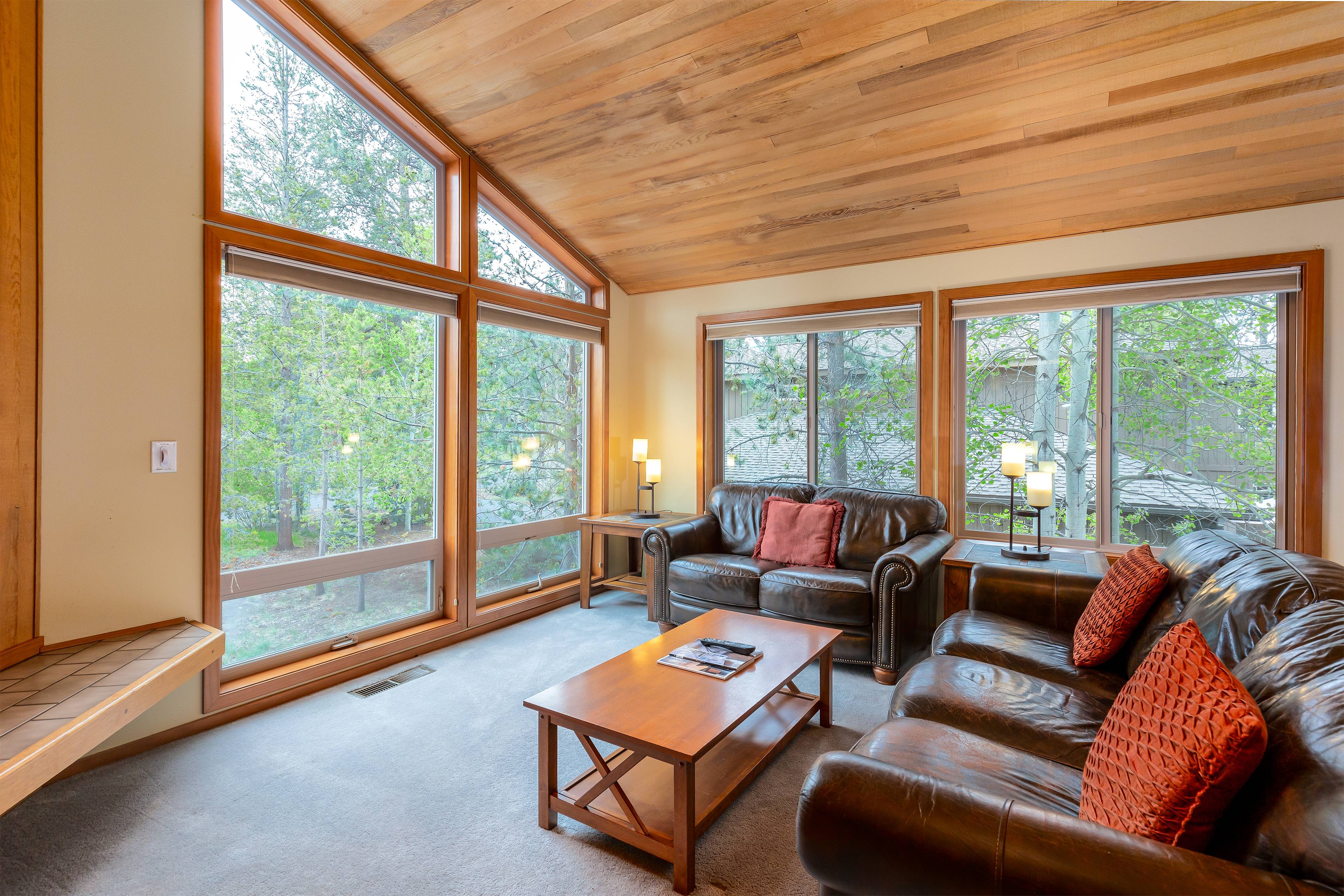 Welcome to your Sunriver retreat, where comfort, care, and connection come first. This thoughtfully prepared 3-bedroom, 2-bathroom home invites you to slow down and savor time together. Gather in the living room beside the gas fireplace and floor-to-ceiling windows framing serene forest views. Cook with ease in the fully stocked kitchen, then share meals in the adjacent dining room.