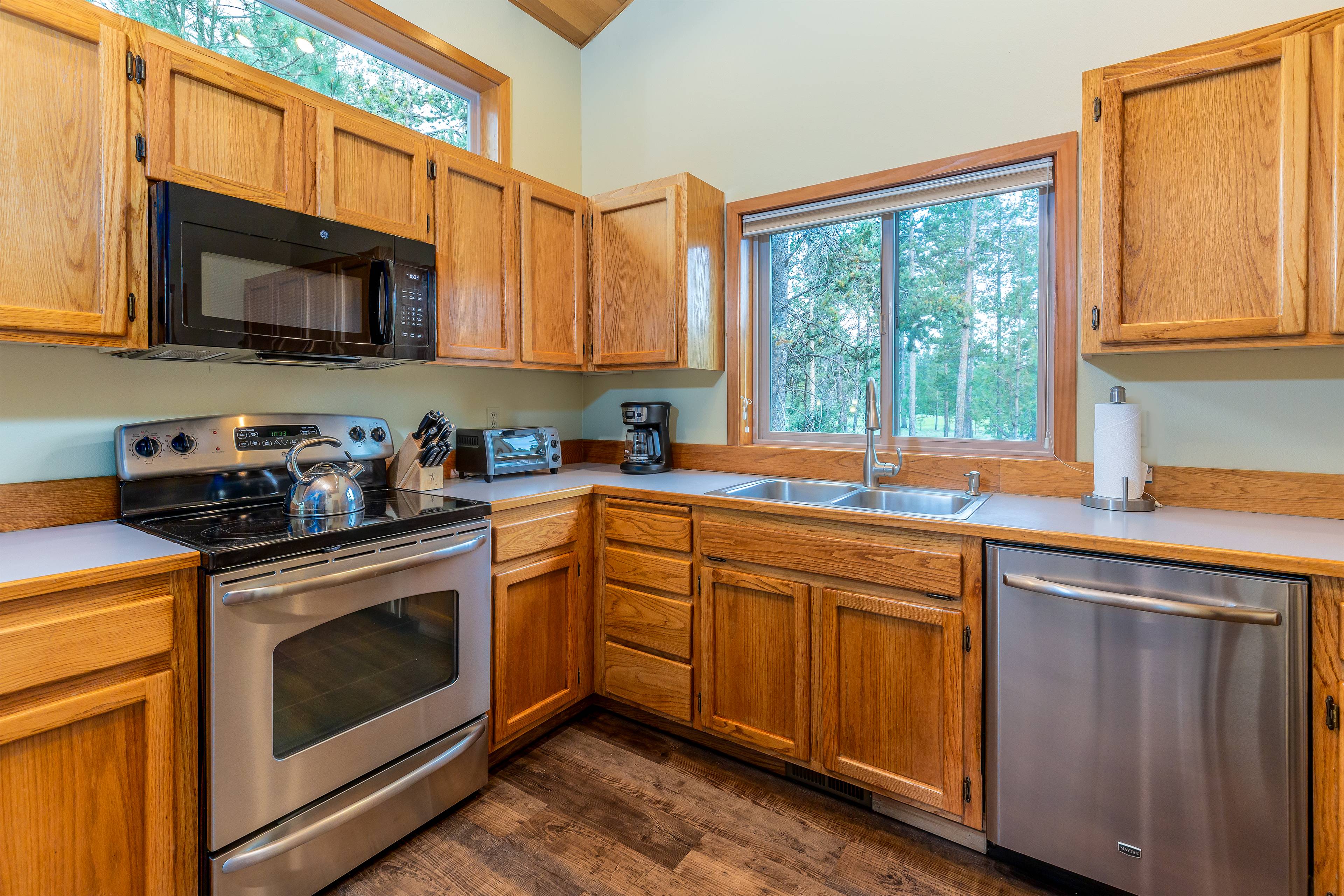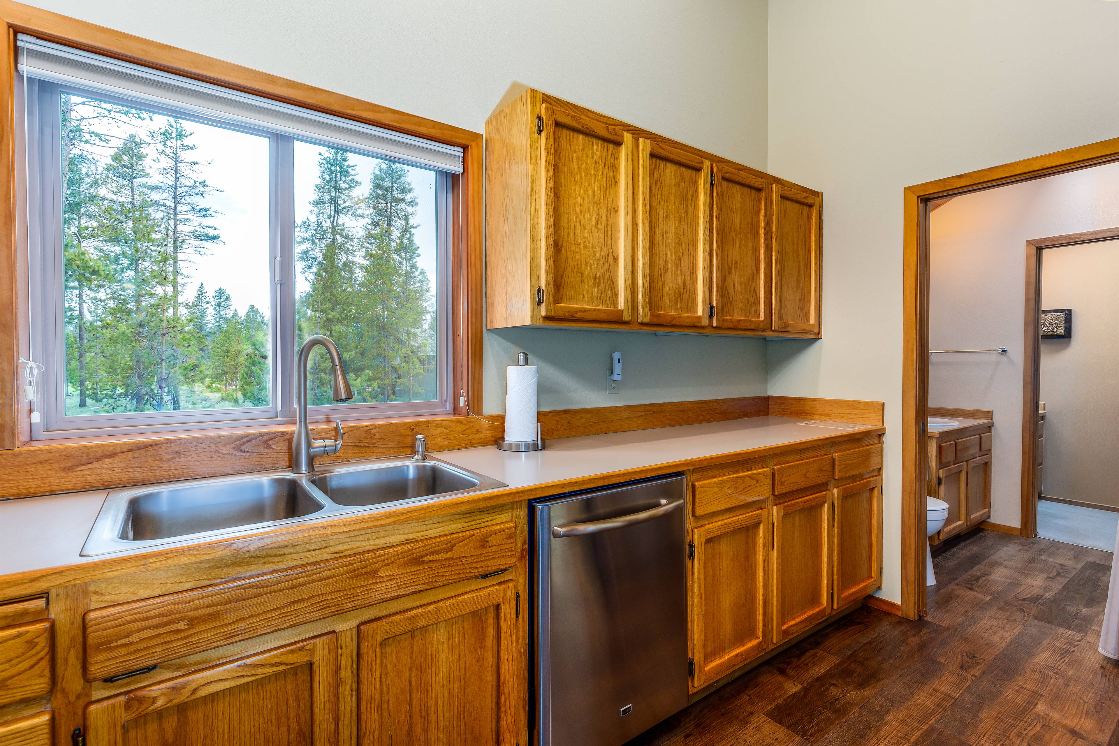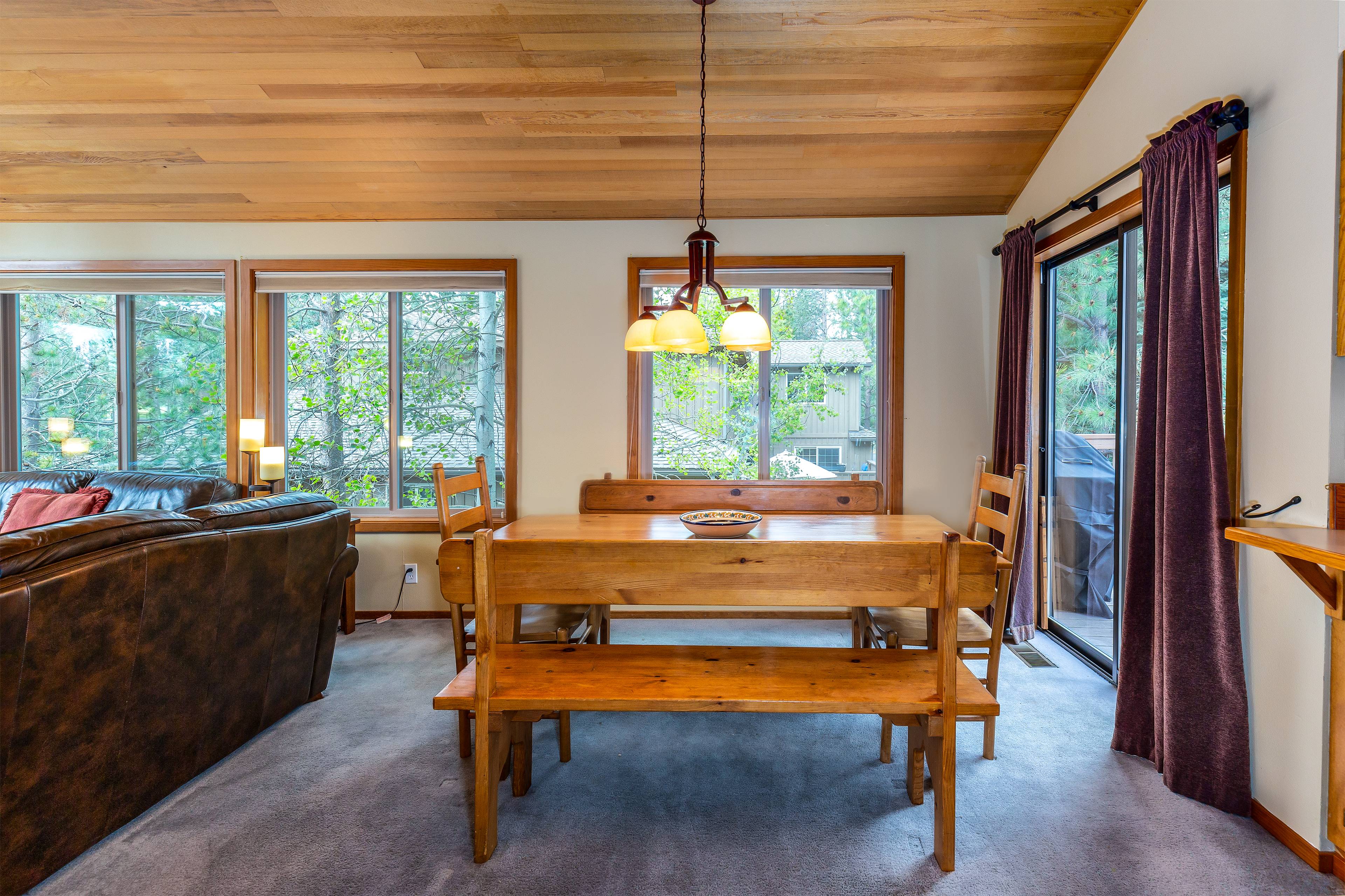 Welcome to your Sunriver retreat, where comfort, care, and connection come first. This thoughtfully prepared 3-bedroom, 2-bathroom home invites you to slow down and savor time together. Gather in the living room beside the gas fireplace and floor-to-ceiling windows framing serene forest views. Cook with ease in the fully stocked kitchen, then share meals in the adjacent dining room.