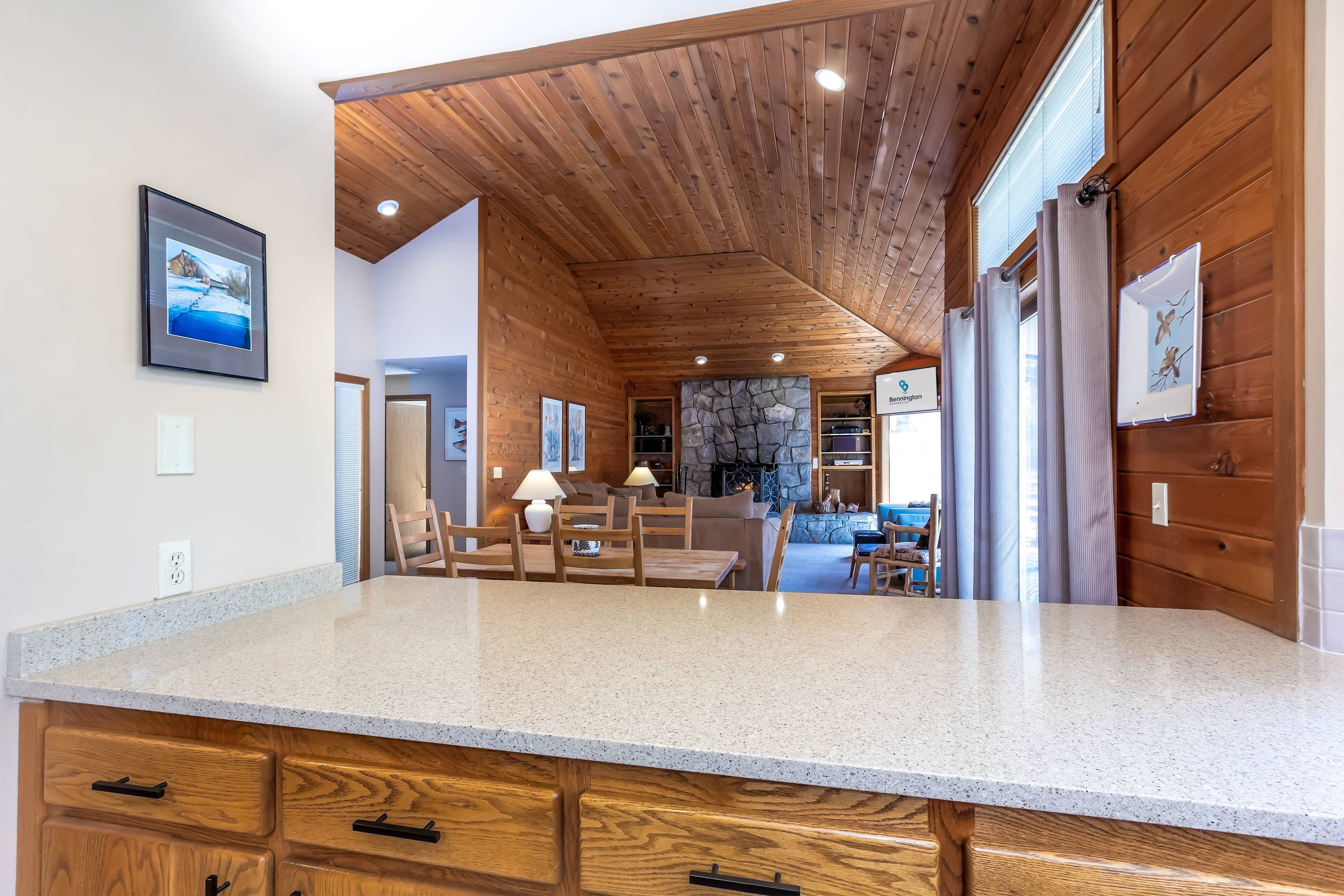 Welcome to your cozy Sunriver retreat! This warm and inviting home is perfect for families or groups looking to unwind and reconnect. The main level features a spacious living room with a classic wood-burning fireplace—ideal for curling up after a day of exploring. The fully stocked kitchen and adjacent dining room offer everything you need for shared meals and memorable conversations. A king bedroom with cable TV is conveniently located on the main level for added comfort and accessibility.