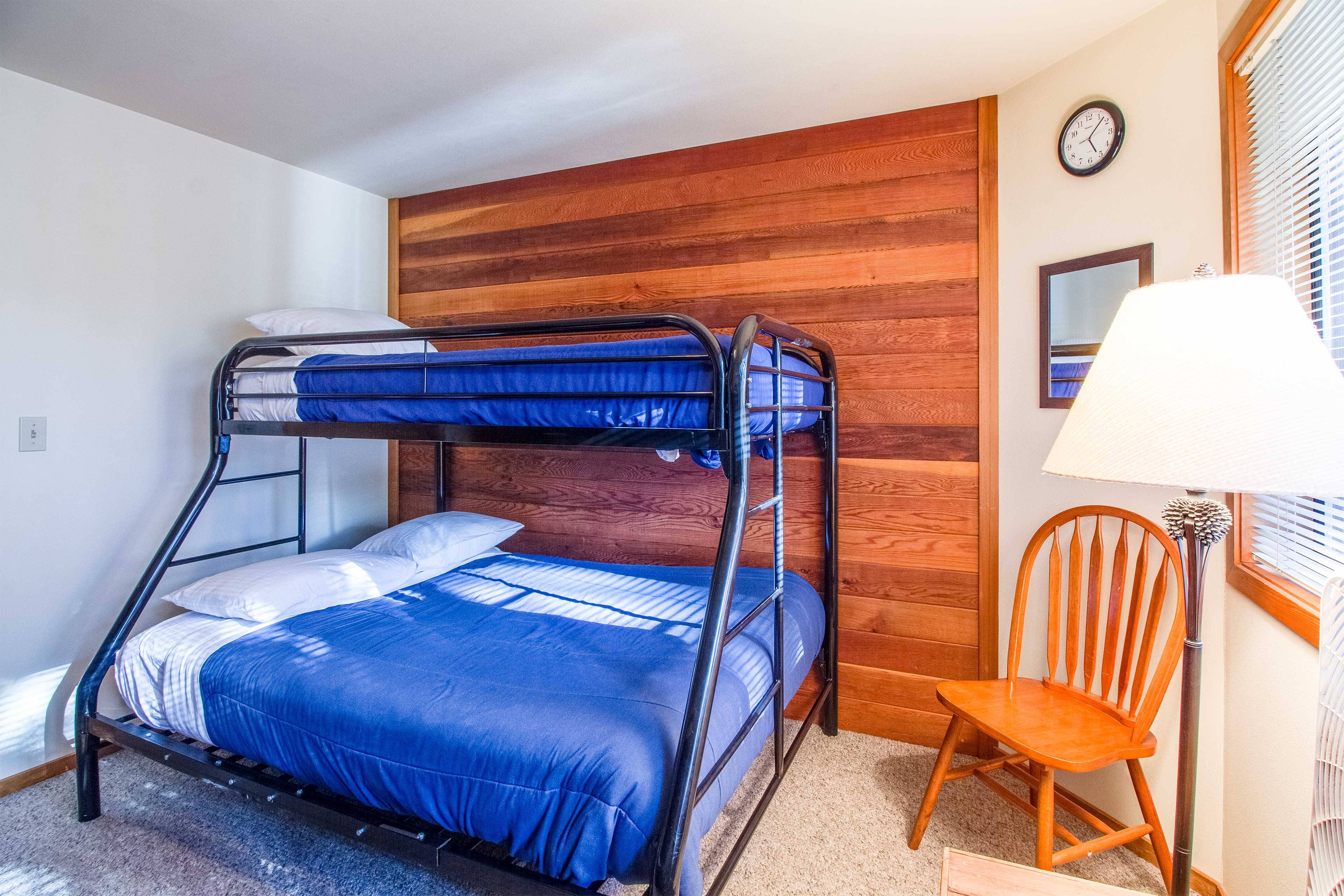 Upstairs, you'll find a queen bedroom and a fun-filled bunk room featuring two pyramid bunk beds—plenty of space for kids or the young at heart. Whether you’re making pancakes in the morning or heading out for a day of adventure, this home is built for ease and relaxation.