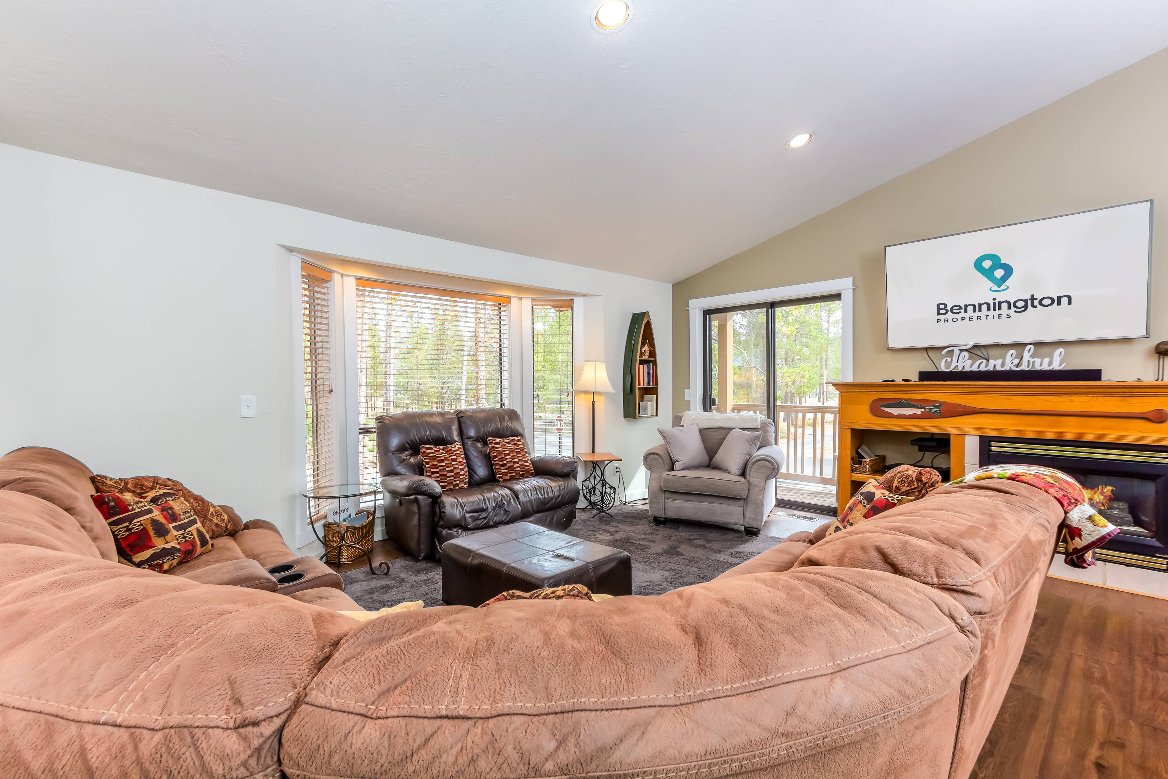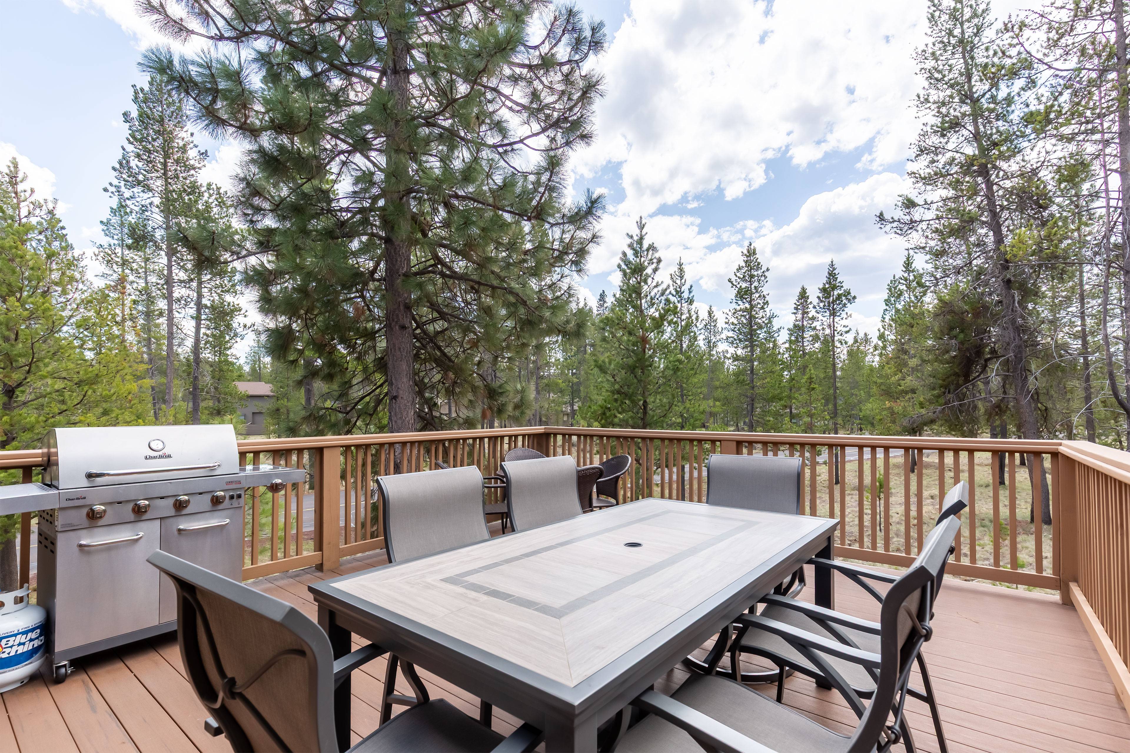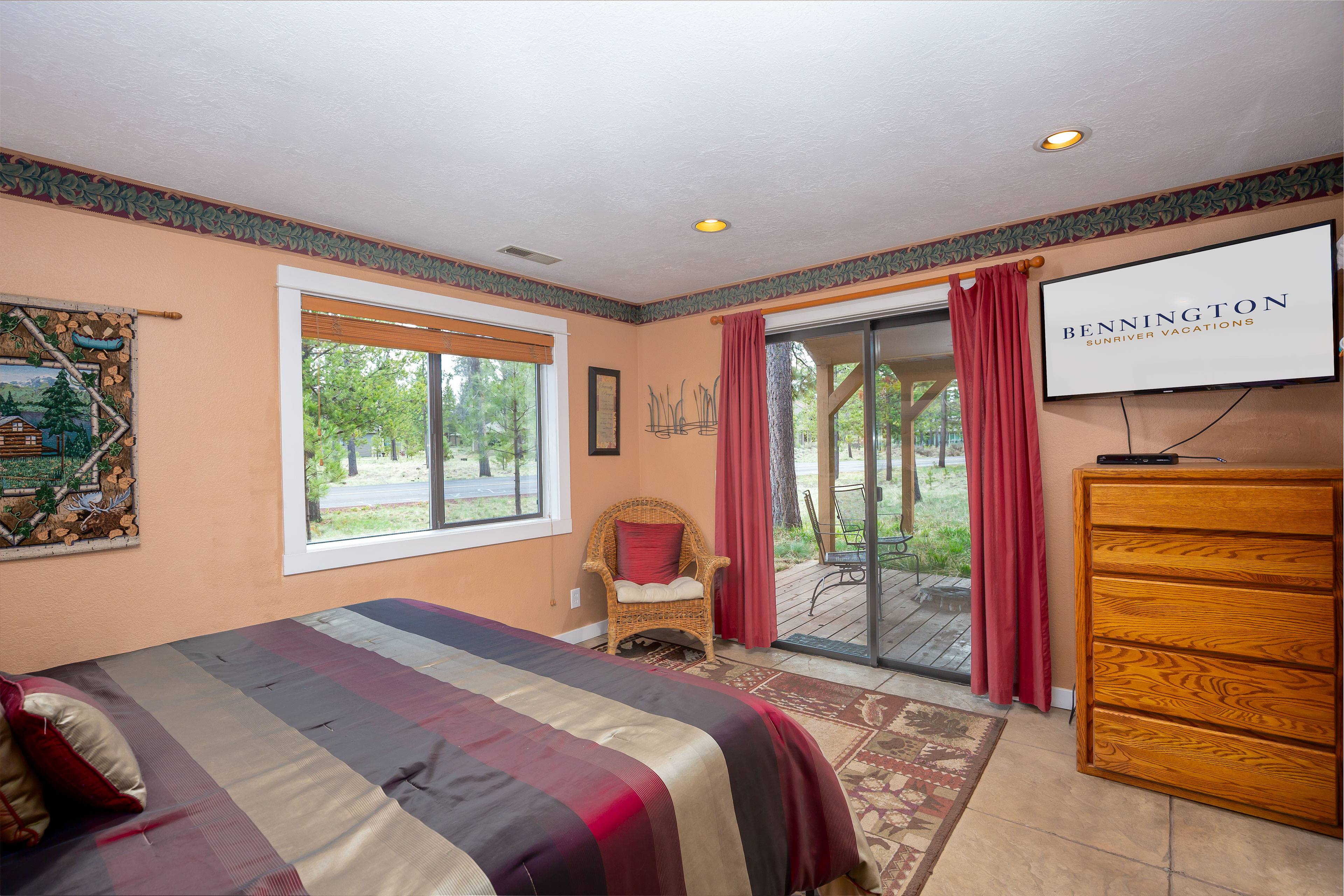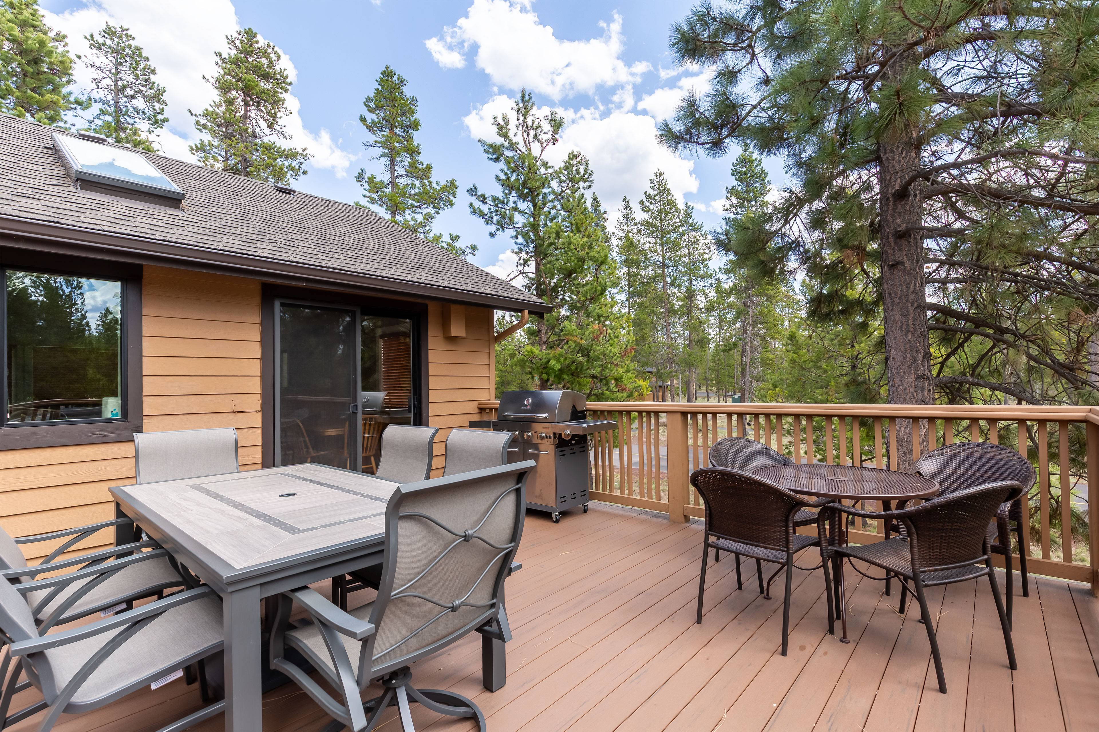 This spectacular 5 bedroom, 4 bathroom home has all you need for making the most of your Sunriver vacation! You'll enter to find a cozy living room with space for the whole family, a kitchen perfect for your family and holiday meals, and a back deck with gas BBQ and patio seating for taking in the beauty of Sunriver. Downstairs you'll also find the first king ensuite bedroom with attached bath and TV and a second bedroom with two twin trundles and TV. Full bathroom/laundry room are right down the hall.