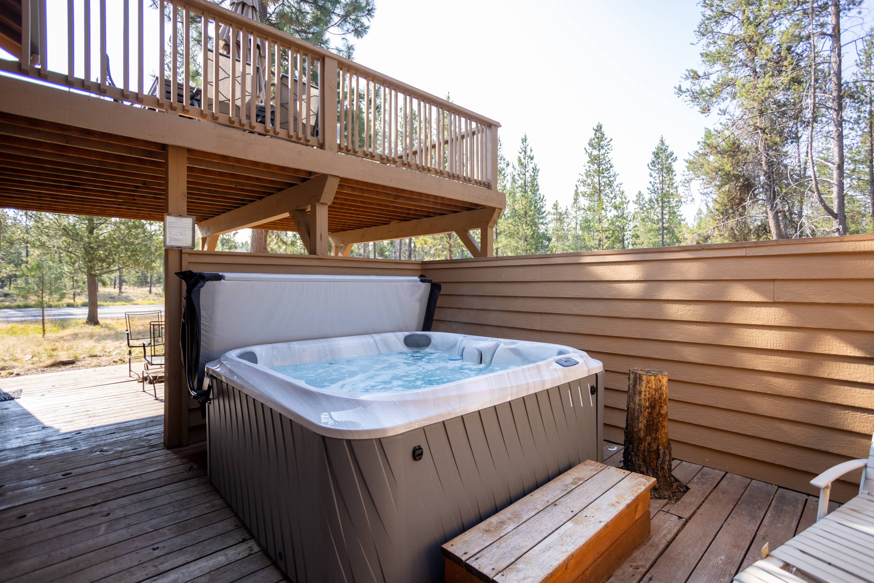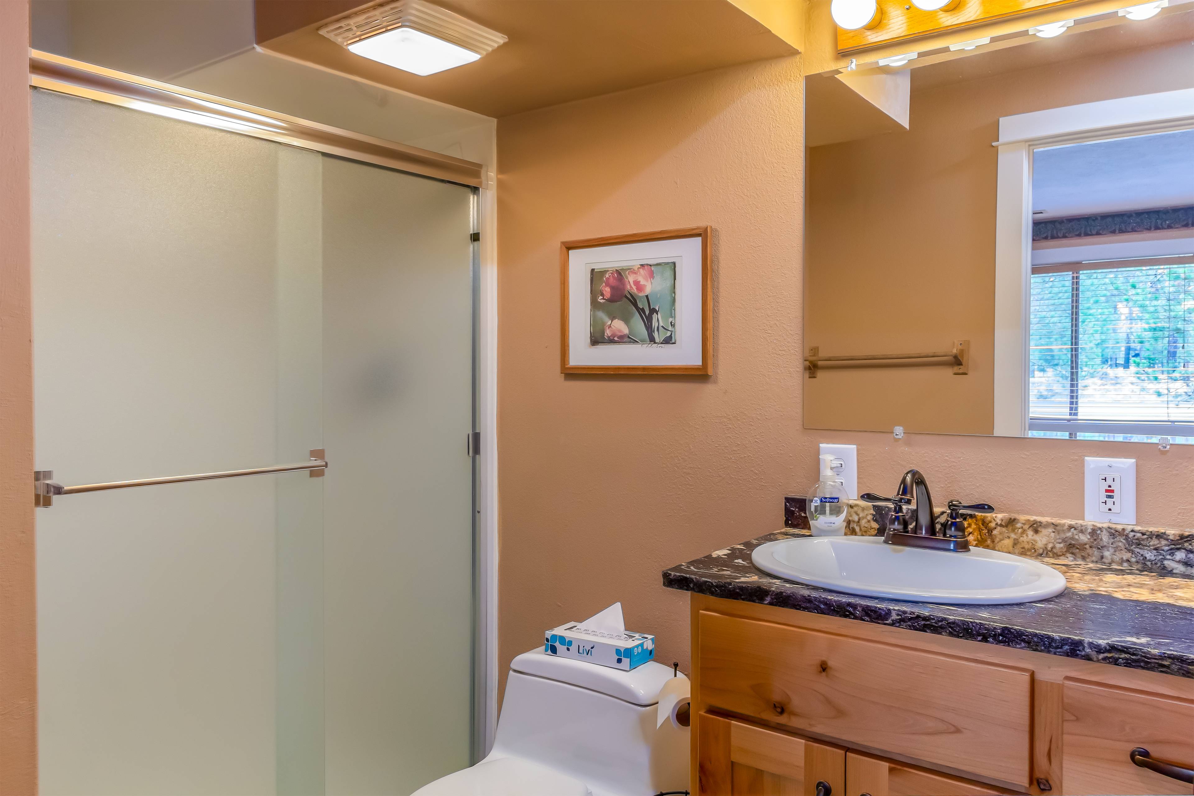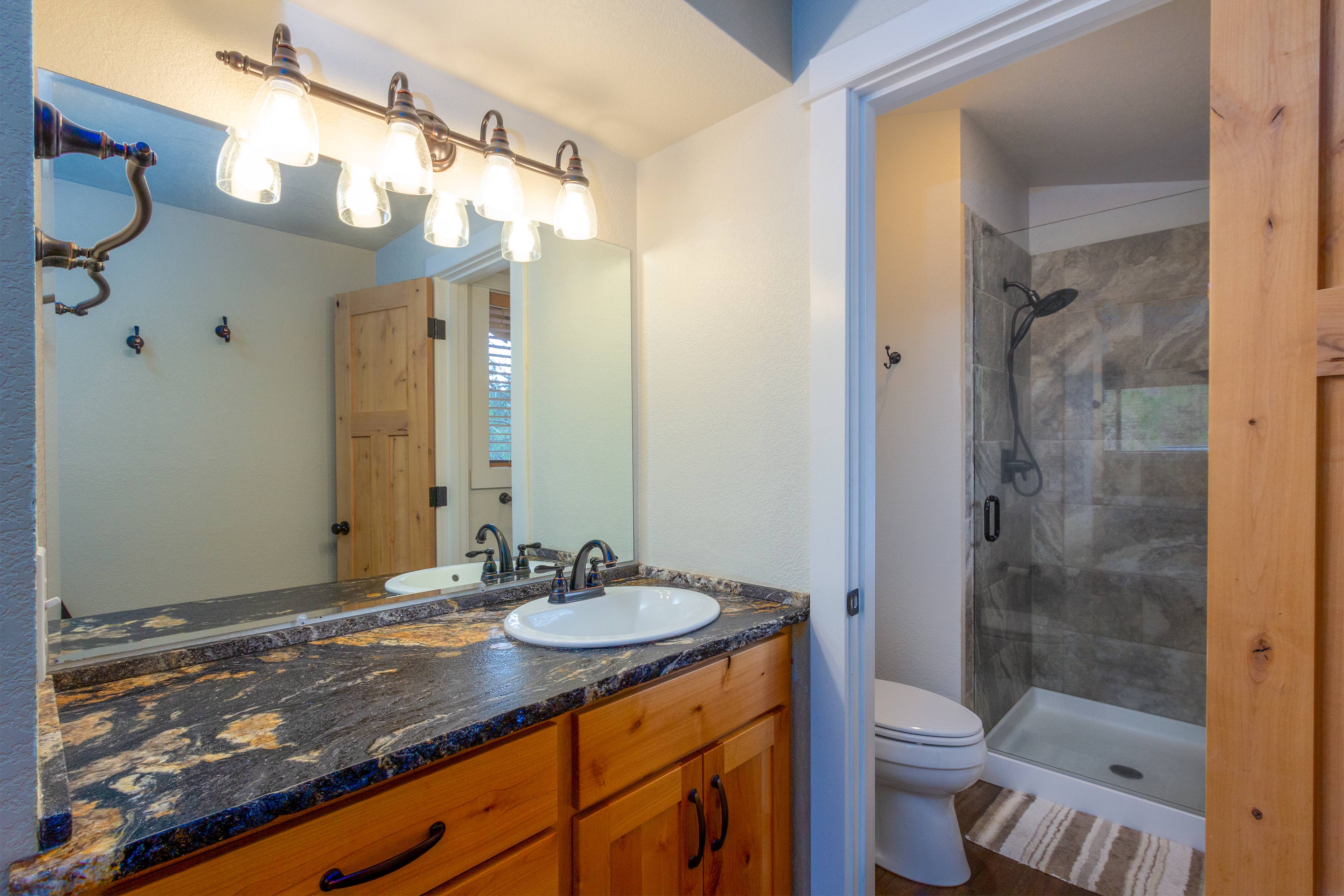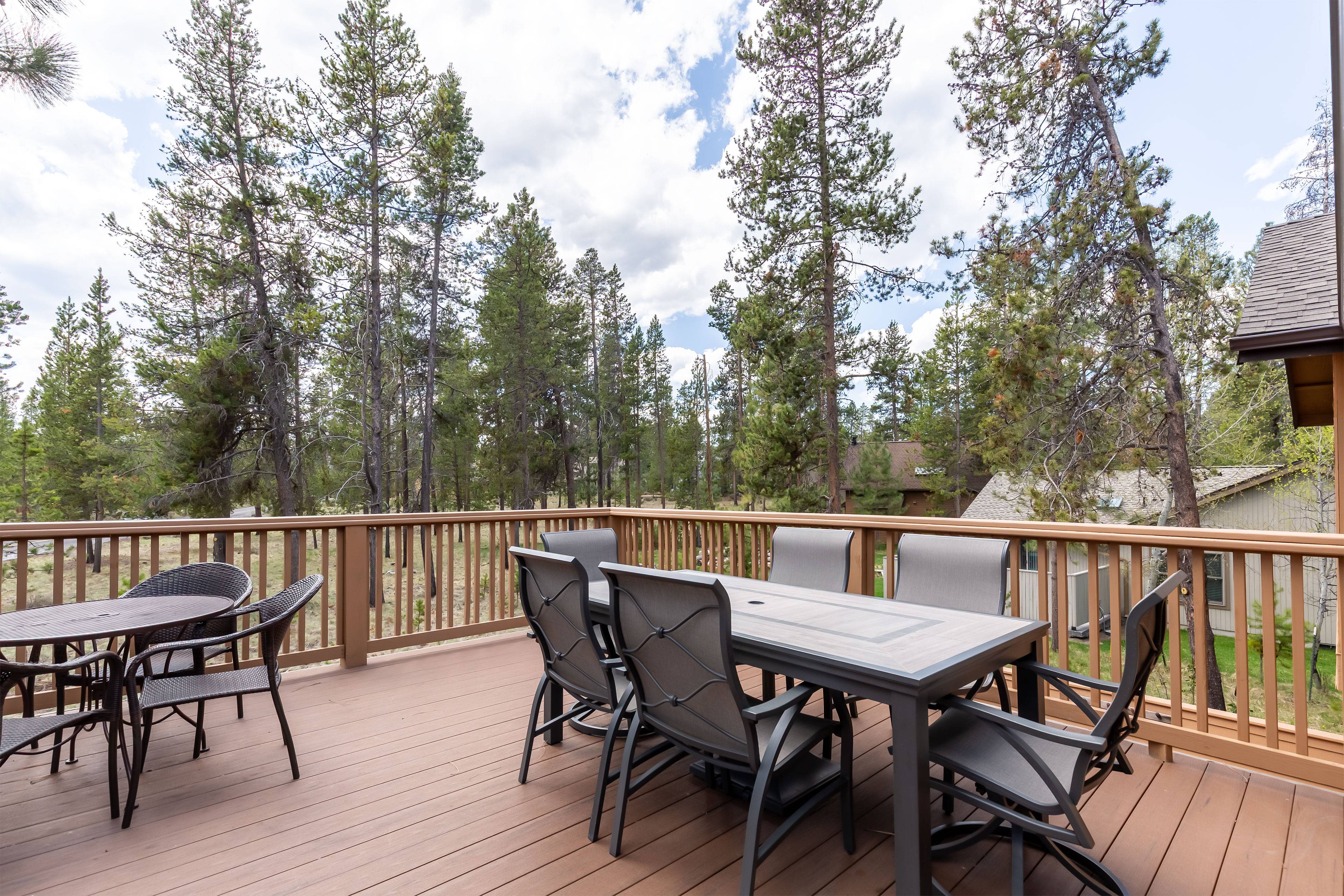 This spectacular 5 bedroom, 4 bathroom home has all you need for making the most of your Sunriver vacation! You'll enter to find a cozy living room with space for the whole family, a kitchen perfect for your family and holiday meals, and a back deck with gas BBQ and patio seating for taking in the beauty of Sunriver. Downstairs you'll also find the first king ensuite bedroom with attached bath and TV and a second bedroom with two twin trundles and TV. Full bathroom/laundry room are right down the hall.