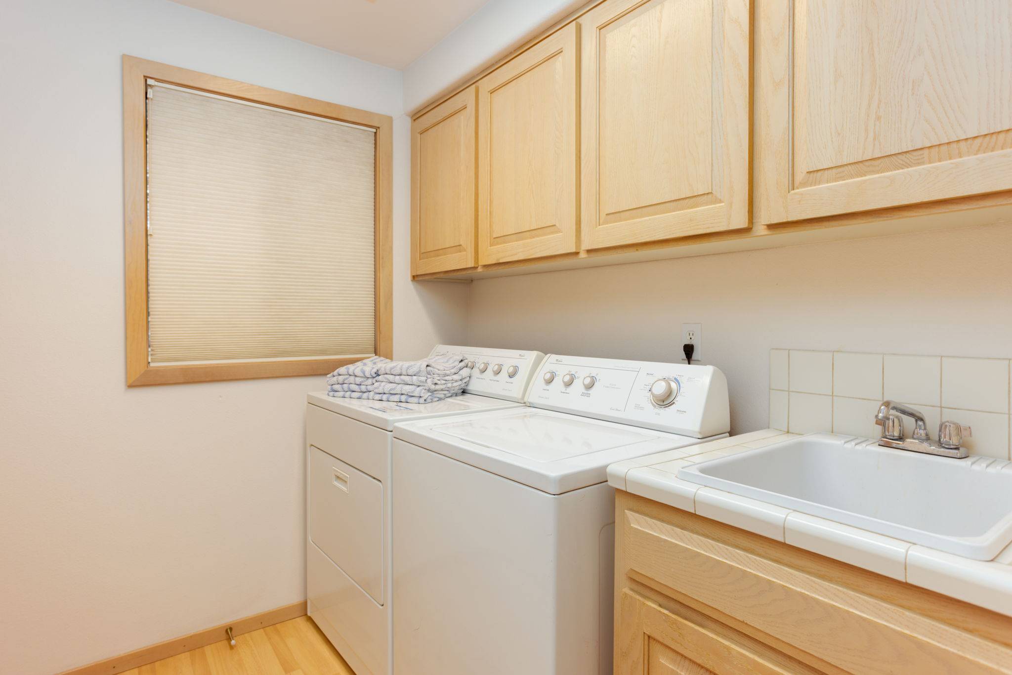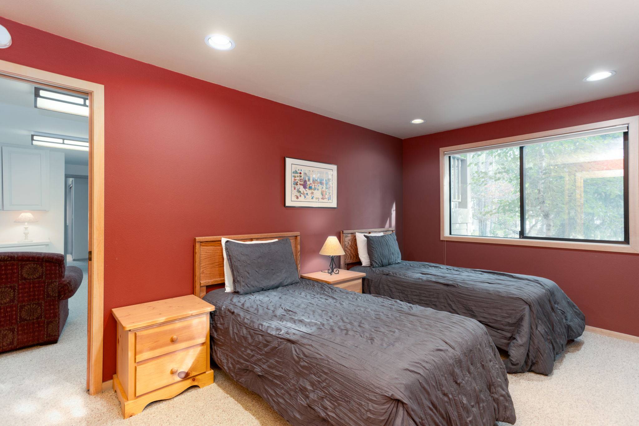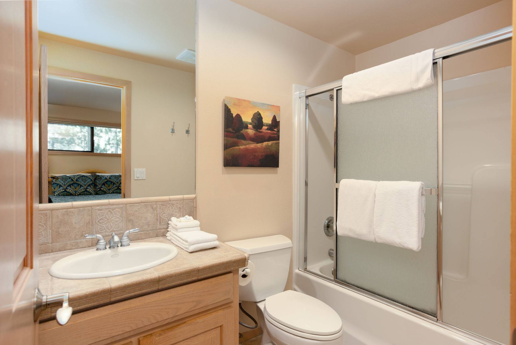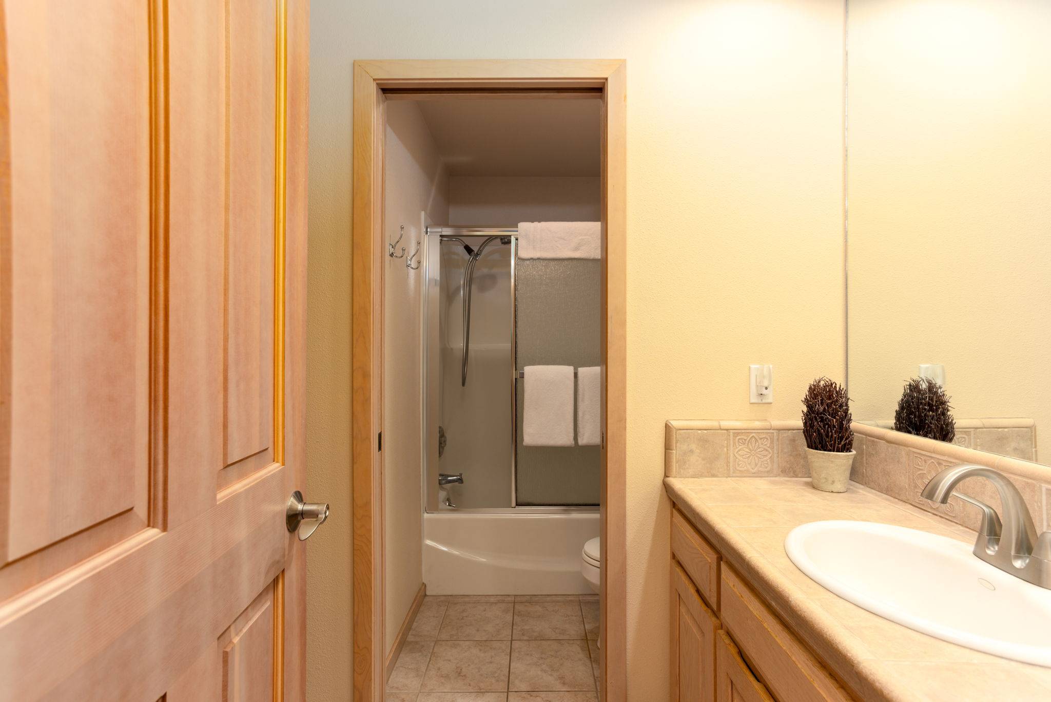 Head downstairs to find a bonus family room, two bedrooms, two full bathrooms and a laundry/mud room. The downstairs en suite has a Queen bed and private bathroom with a tub/shower combination. The 3rd bedroom has 2 Twin beds (with new mattresses) - the attached 3rd full bathroom has a tub/shower combination and functions well as a guest bathroom with jack-and-jill access from the family room. With a sleeper sofa and its own 45" TV, the family room is the perfect place to catch the big game or cuddle up for movie night while others entertain upstairs. A large hot tub adjacent to the family room will allow you to relax and enjoy the surroundings by day or stars at night. For family trips with young children, this home is offering toys, a pack-n-play, baby gate, and high chair. Plus, there's a full-size toddler crib and mattress that converts to a youth bed for growing kids.