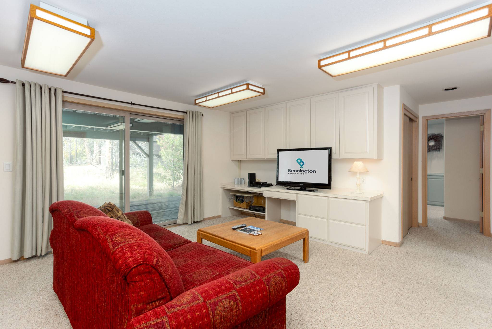Step outside through the sliding glass door onto the large deck with a gas barbecue and patio seating so you can enjoy your meals in the beautiful wooded surroundings. The owners have provided 4 additional indoor/outdoor chairs for extra seating in the dining area or patio.