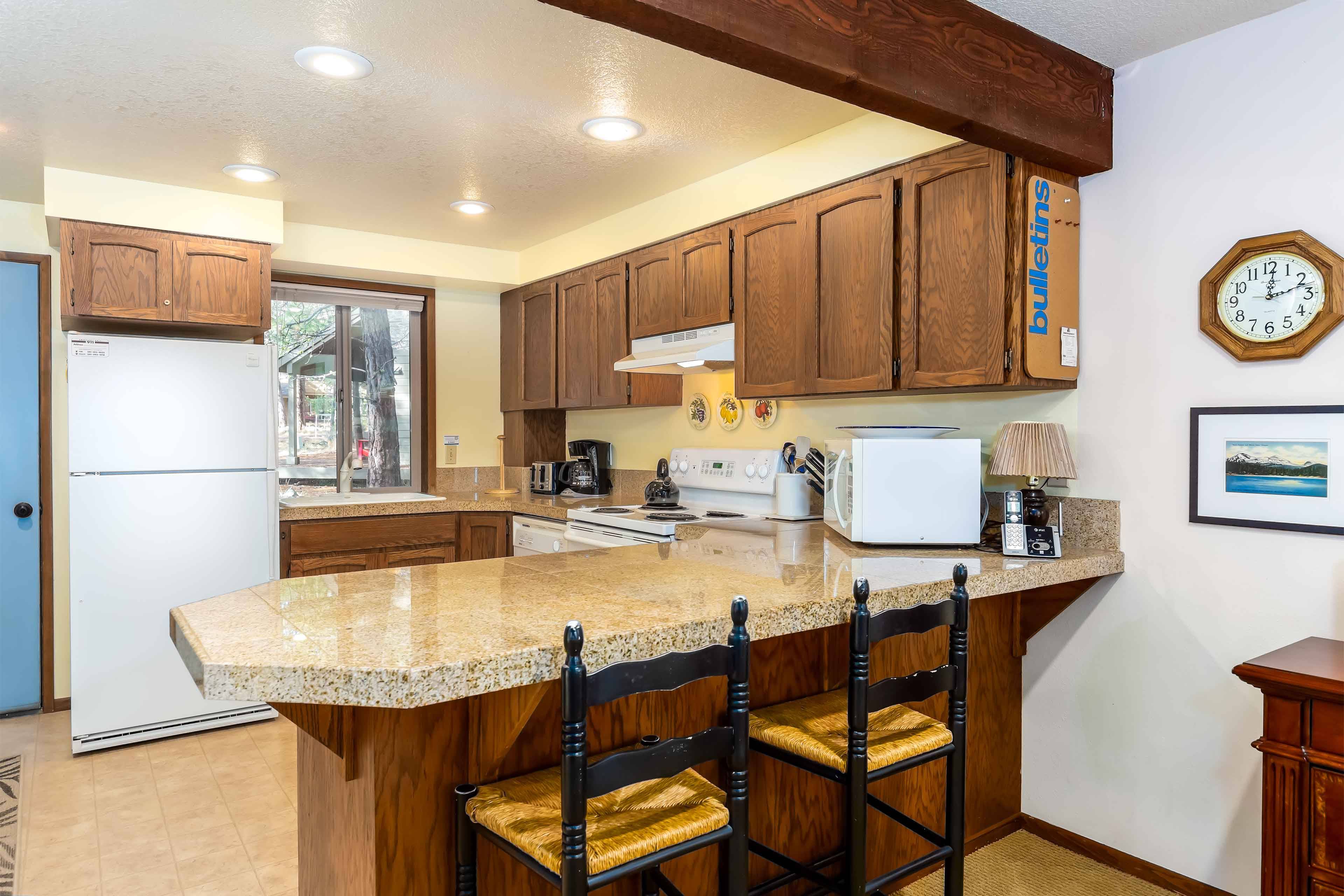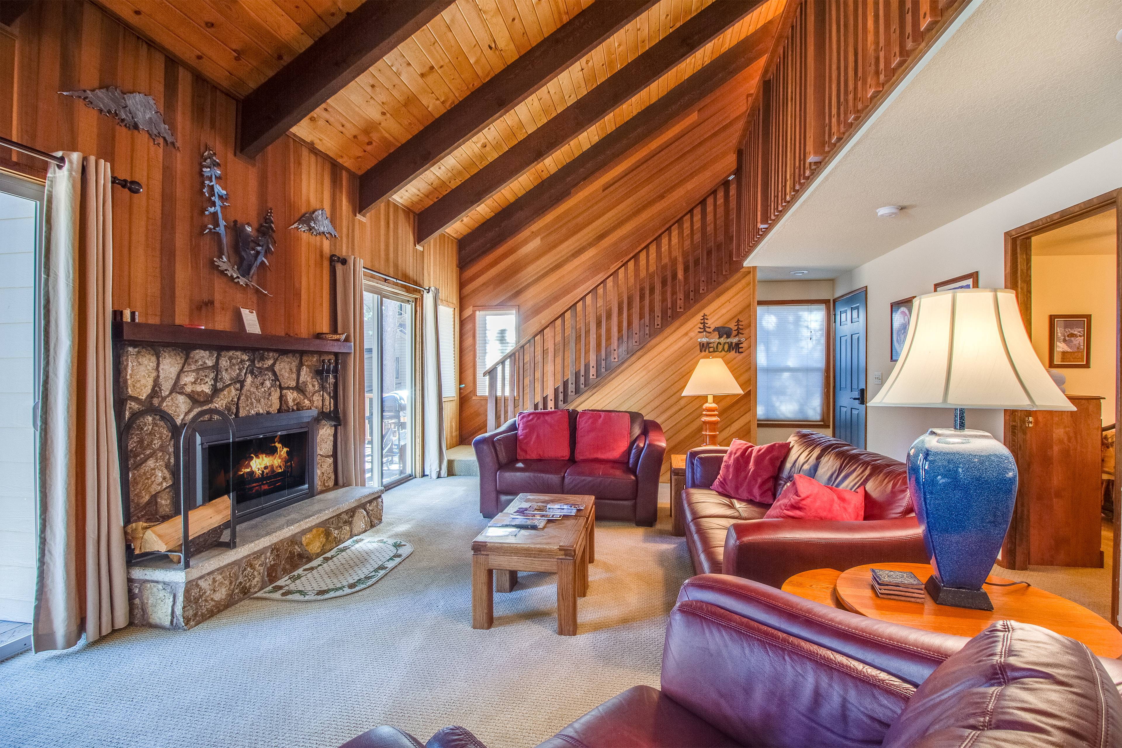 The living room provides the perfect spot to relax with a wood burning fireplace and gorgeous views. The fully stocked kitchen and dining room are adjacent, making entertaining a breeze.