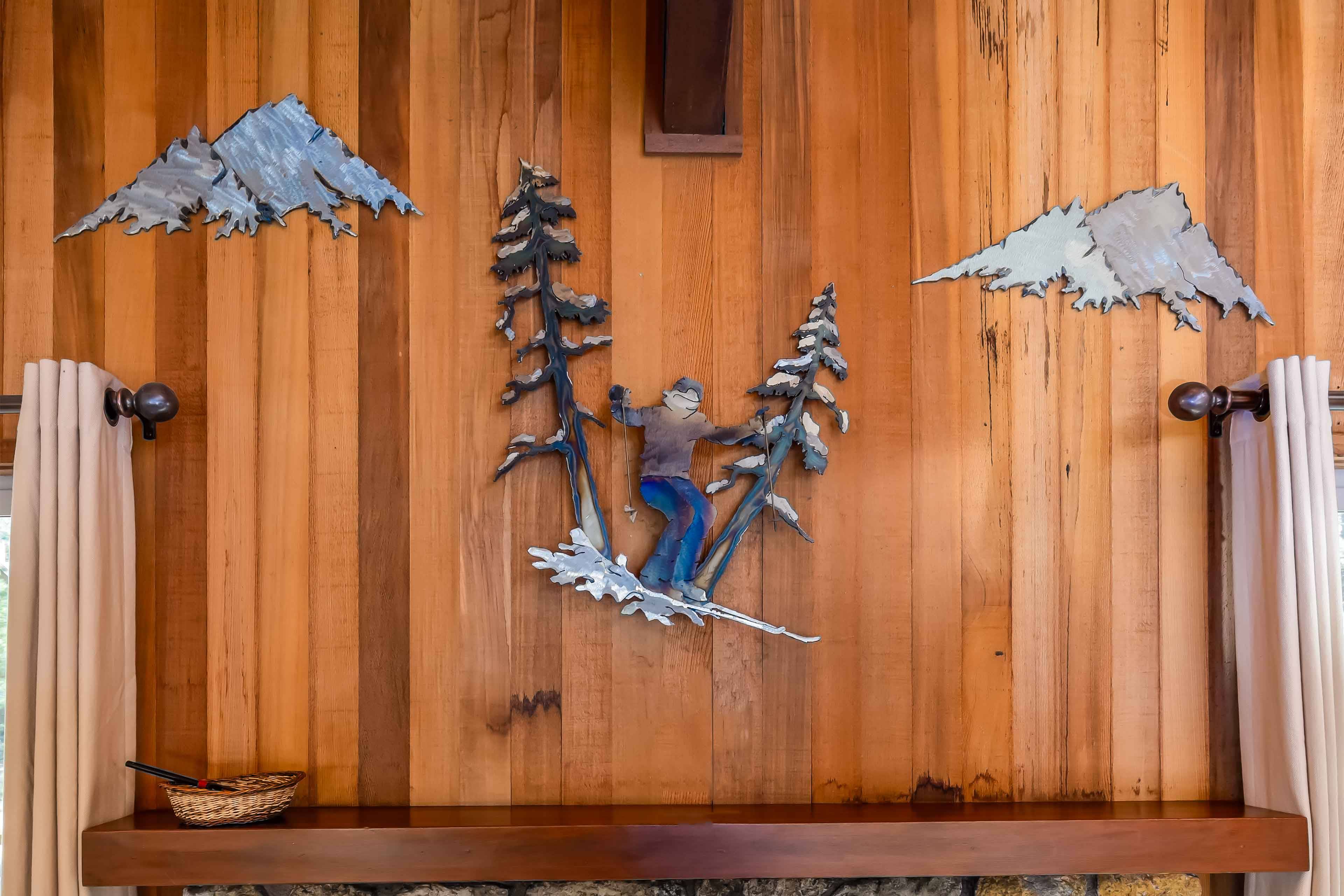 A real cabin in the woods, Sunriver feel to the place, with large windows looking out on native vegetation. Tasteful wood and beams, coordinated furnishings