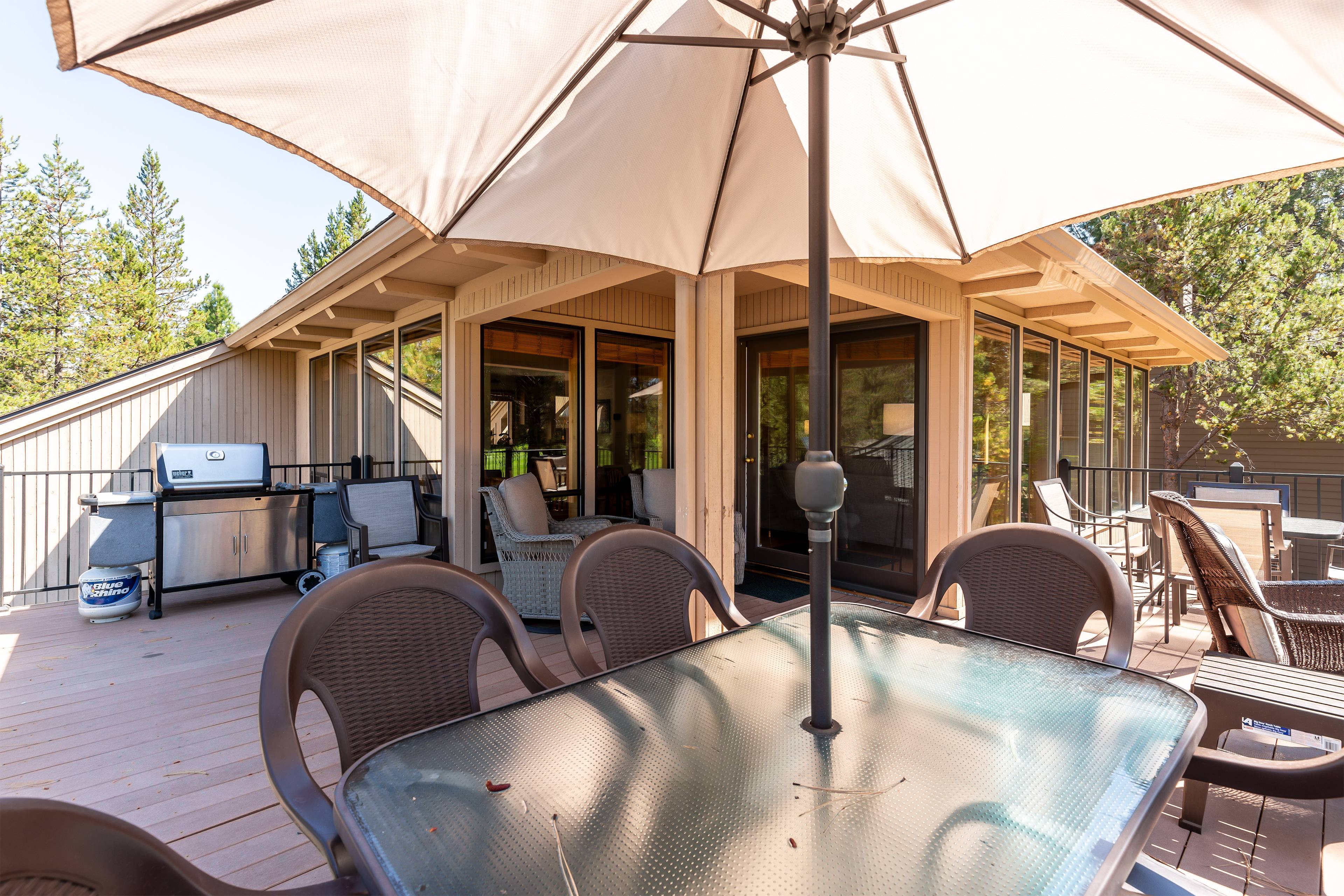 The house was fantastic - very nicely furnished and well equipped. One of the bikes needed to have the brakes fixed and the staff jumped right on it by providing us a rental bike until it got fixed. Excellent service! Two things need attention: The screen door going out to the main deck is off the track and needs to be replaced. Also, there is a very nice 6 place glass-top dining table of the deck but only three chairs to go with it. There were two cheap plastic Adirondack chairs on the deck but not suitable for dining. There was a card table chair but we had six people. A house of this quality (and rental price) deserves better. Finally, your website states "...affords both golf course and MT Bachelor views from the great room and upper deck" and shows a picture of Mt. Bachelor. There is no way you can see the mountain from anywhere on the deck or from the great room. The picture was clearly taken from the 7th fairway, not from the house. This was very disappointing and very misleading. You need to correct your website. That said, we had a wonderful stay at the house. Thank you.