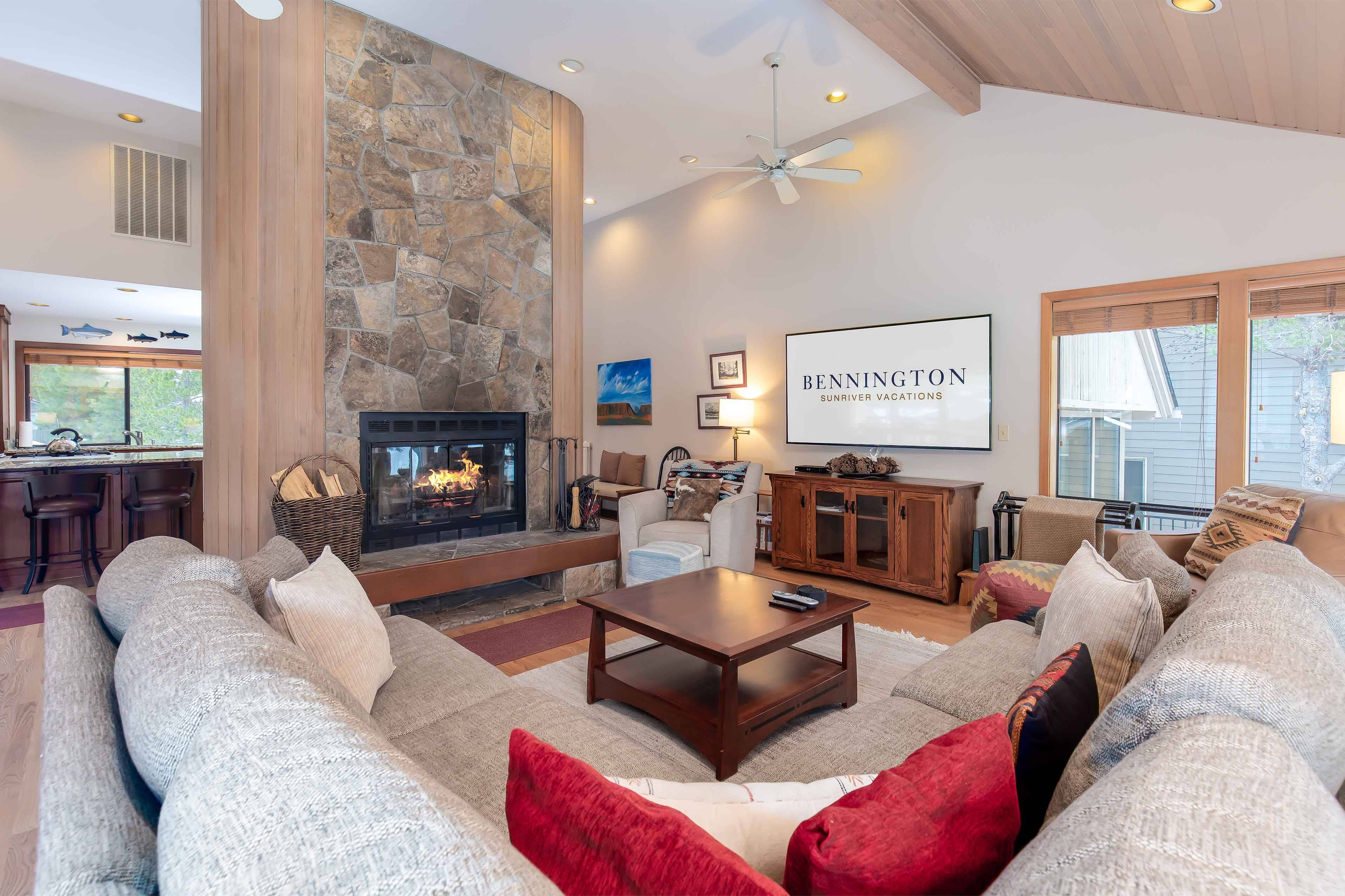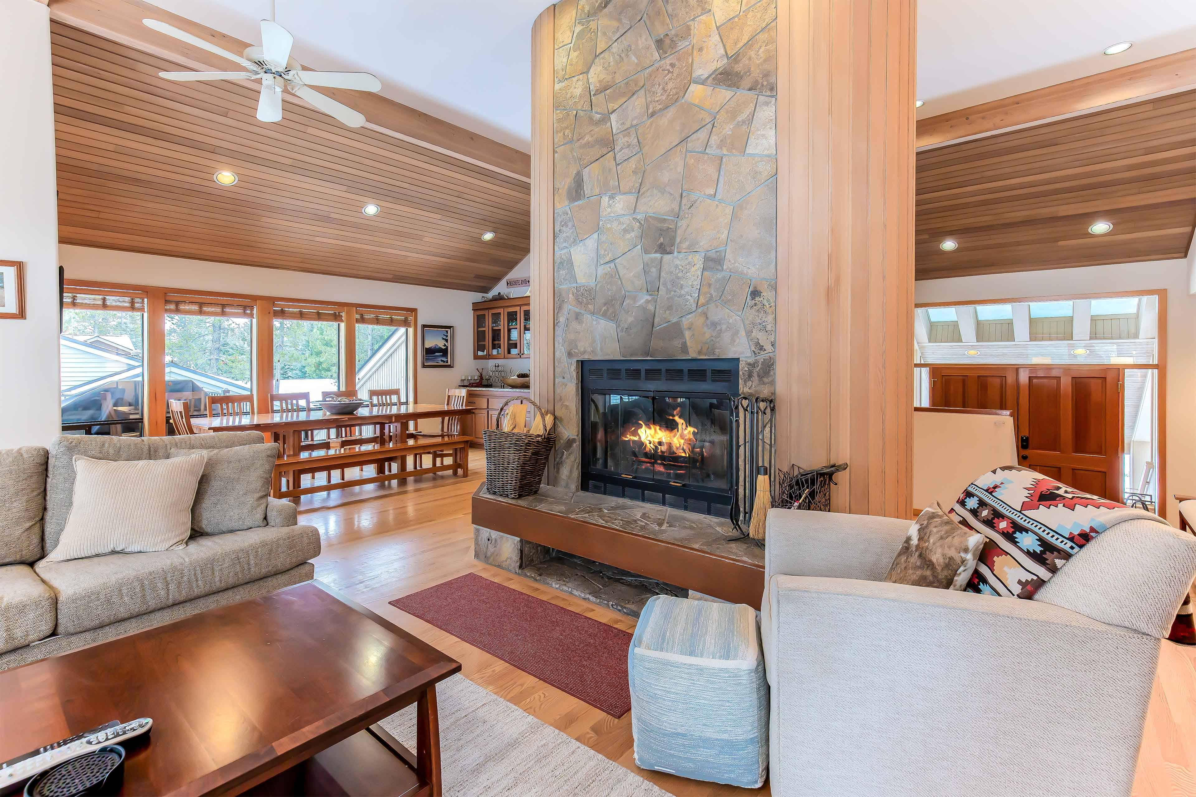 With a spacious great room, four tastefully appointed bedrooms, a bonus den with sofa bed, and 3.5 recently remodeled bathrooms, there's plenty of room to spread out. Guests will enjoy the open floor plan of the upper level; a massive wood-burning fireplace stands as the centerpiece to a large dining area, easily accommodating ten to twelve, an upgraded kitchen, pantry and buffet and the comfortable living room.