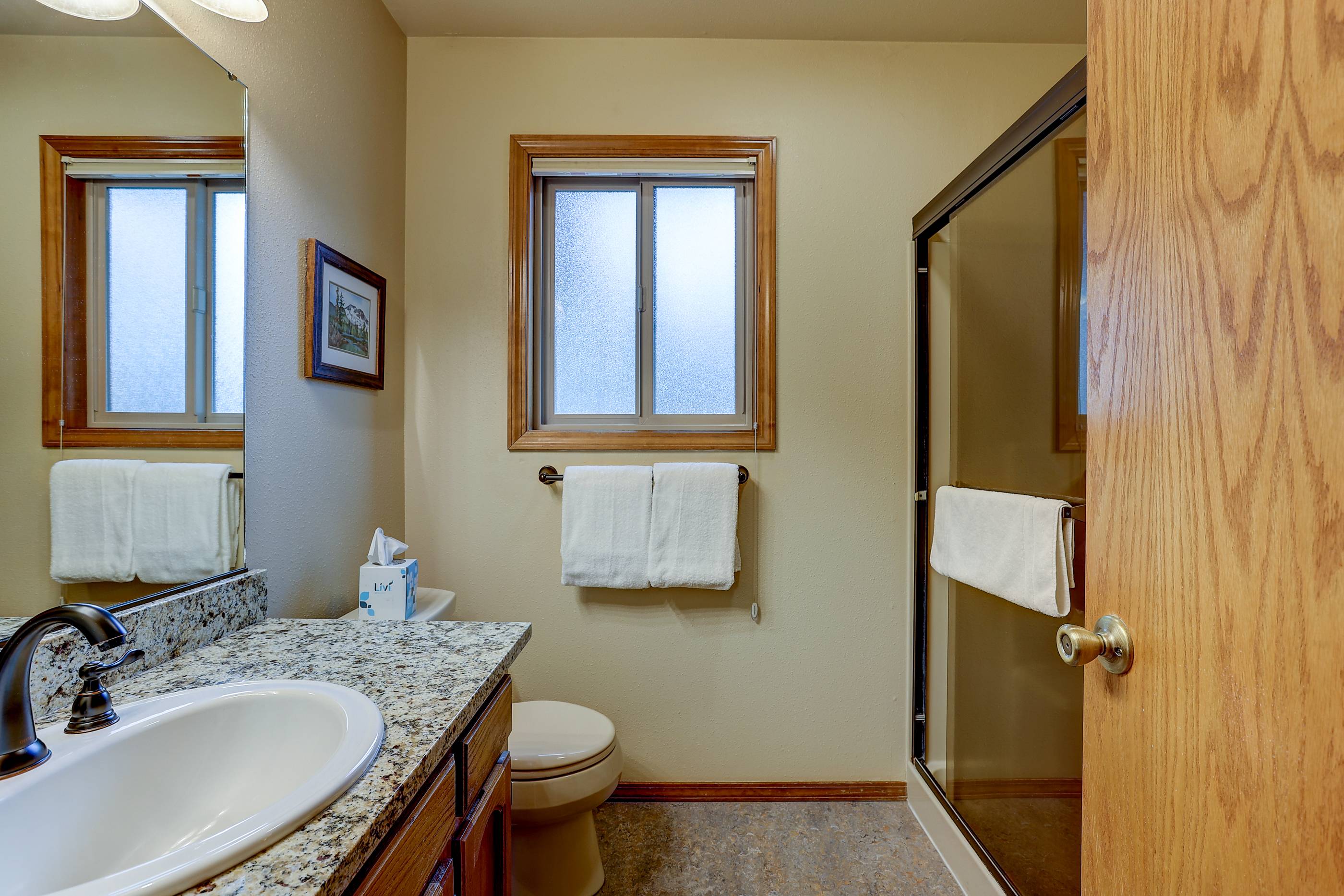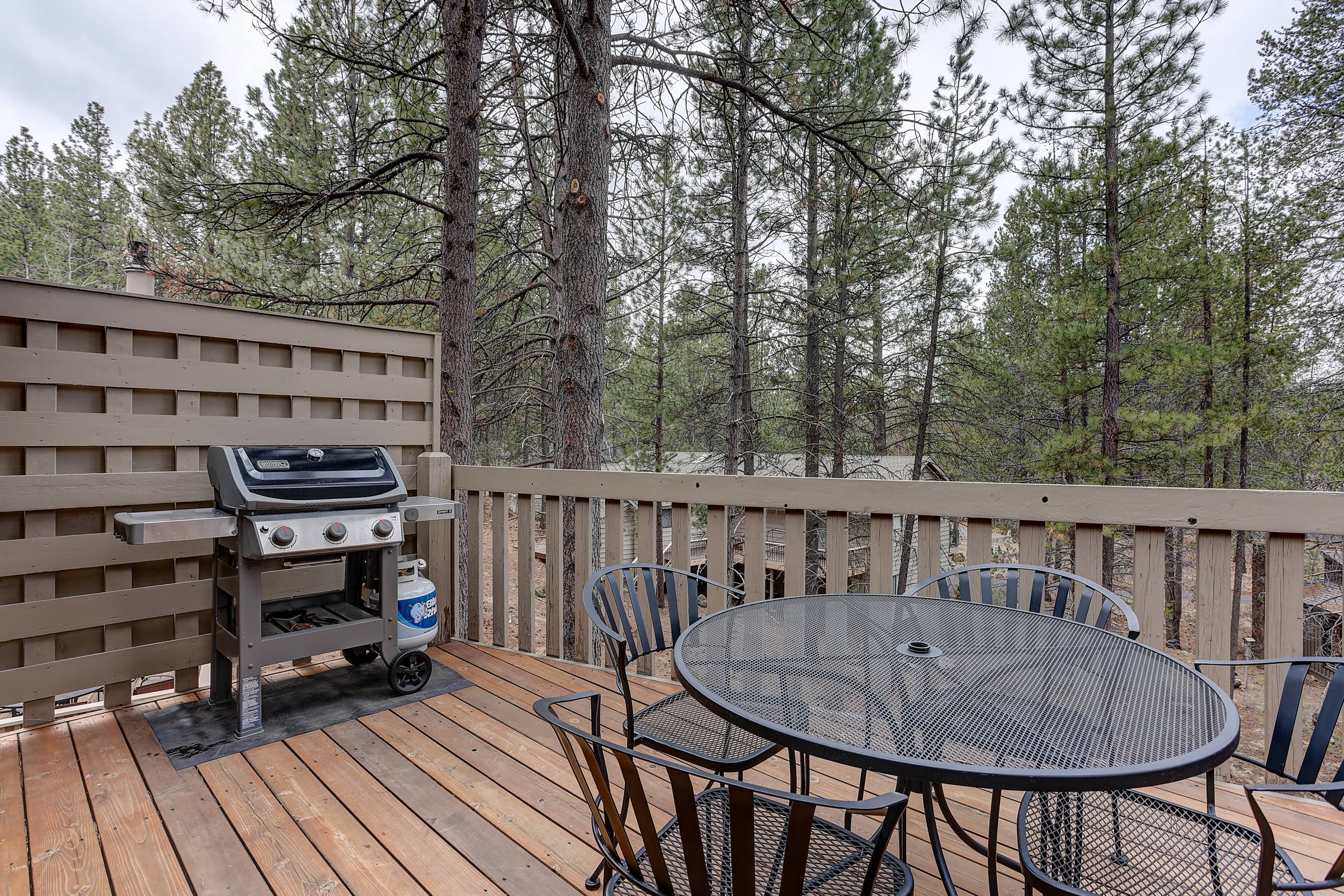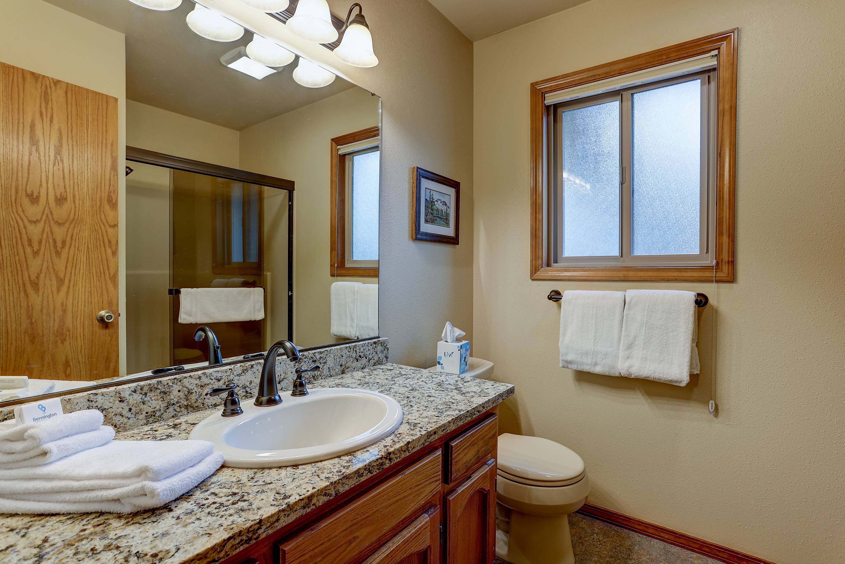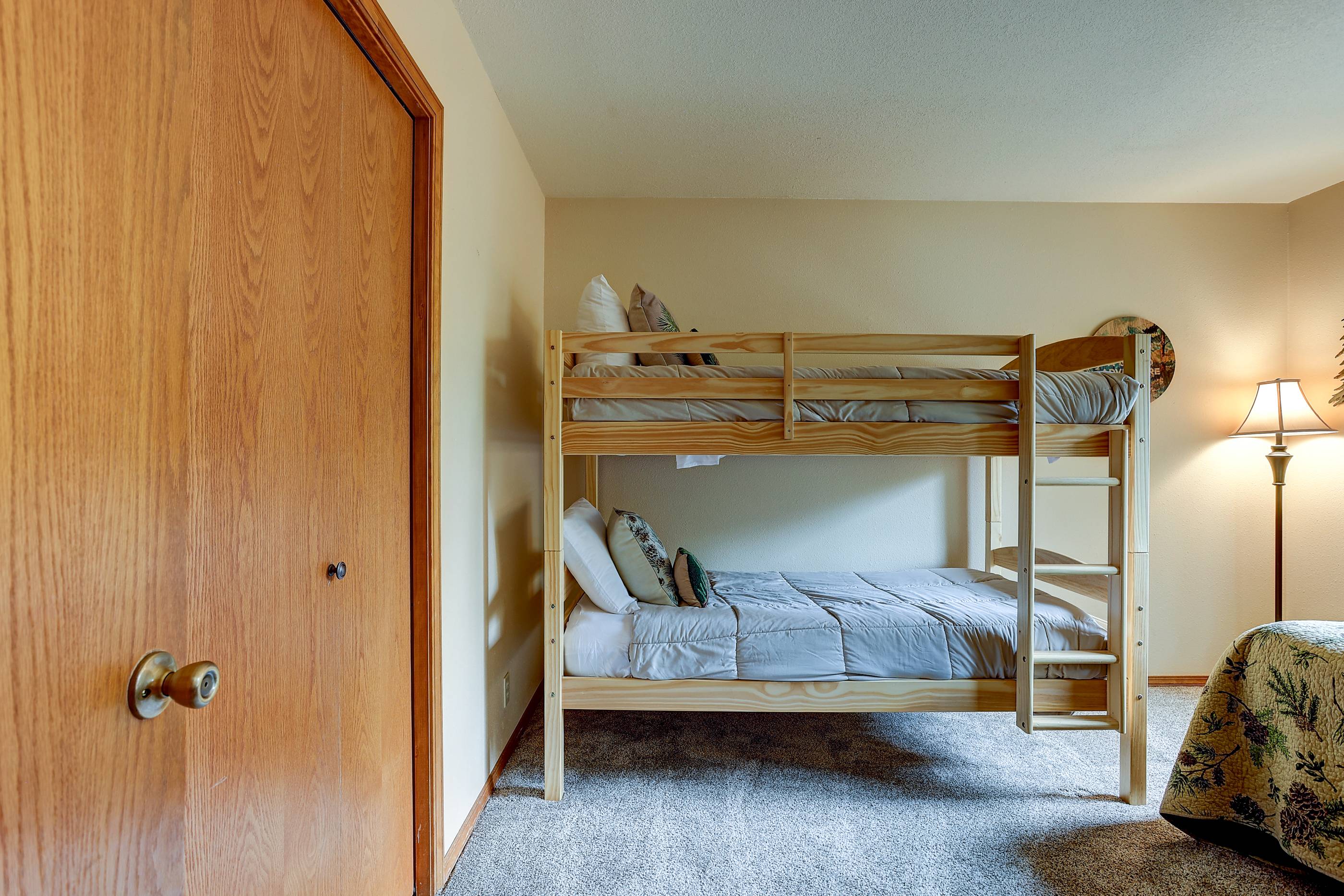 This home was perfect for our family of 5. Close to the village, sparkling clean, comfortable beds and sheets, plenty of towels, fully equipped kitchen. Master BR has a king bed, 2nd BR has a twin bunk and a full bed. 3 flat screen TVs, one in the living room and one in each bedroom. 4 adult bikes included. We ended up renting 2 kids bikes for our 9 year old and 6 year old at the Sunriver Bike Barn. Great layout with the 2 bedrooms and bathrooms downstairs and the open living, dining, and kitchen space upstairs. SHARC passes not included, but it ended up closing for the season anyway while we were there due to COVID. 3 separate outdoor decks/patios. The second bathroom had a door that opened out to the hot tub which made it easy to jump in the shower before or after a warm soak. Very comfortable and would totally stay here again.