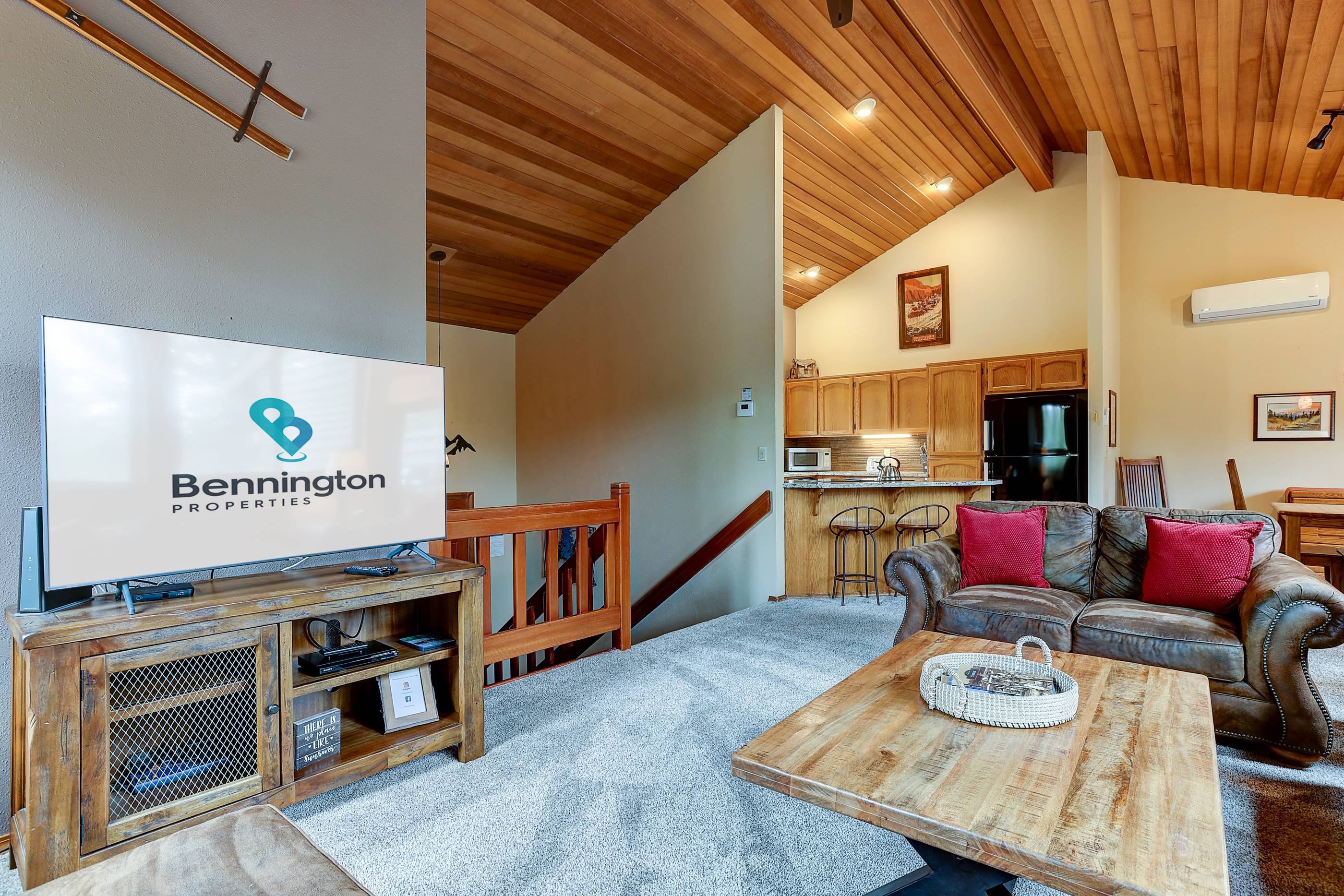 Coyote 18 is a cozy, reverse-living home featuring two bedrooms and 2 bathrooms, making it the ideal home for your next vacation with family or friends. The living room provides plenty of space to relax by the fire, watching a movie or playing a board game.