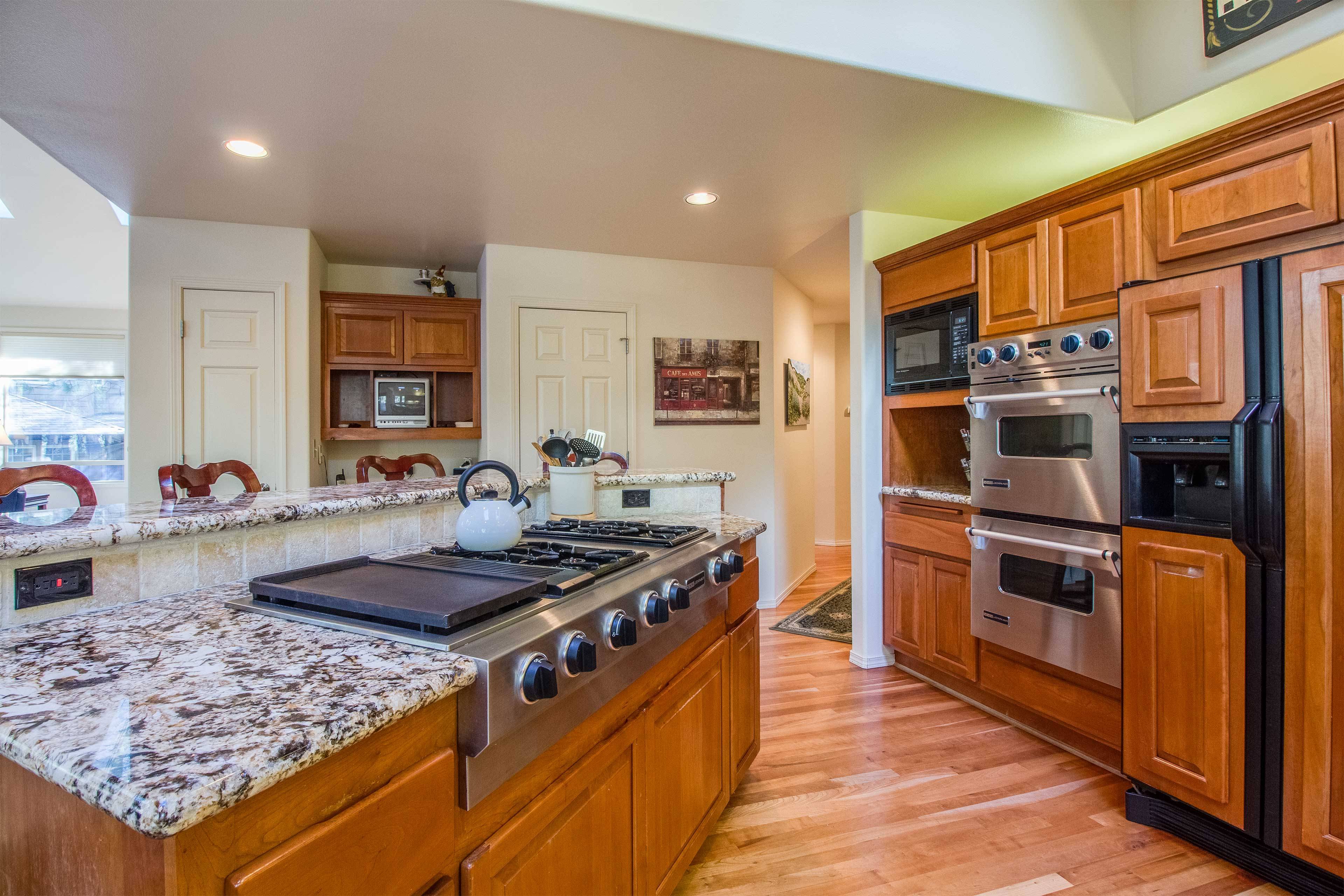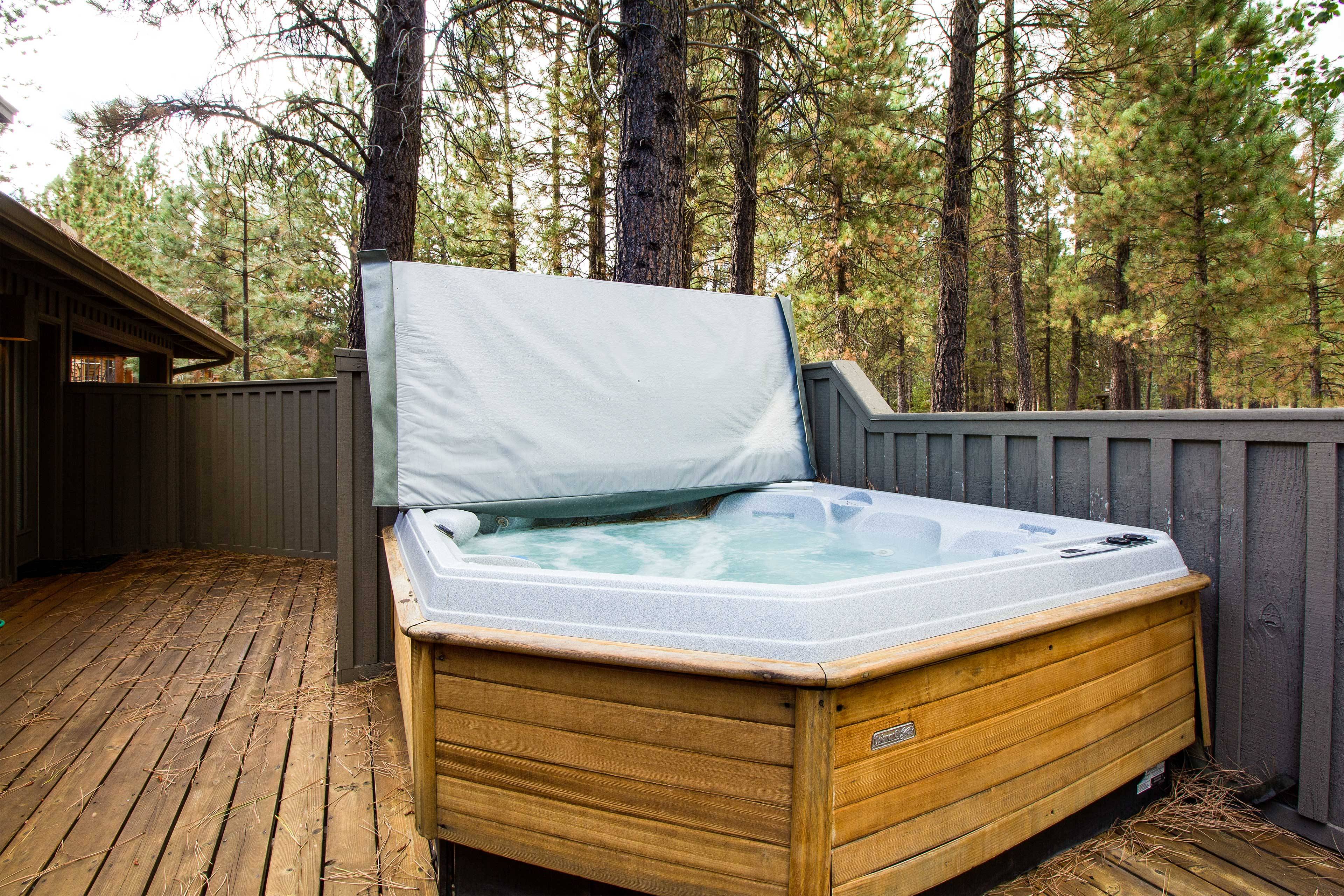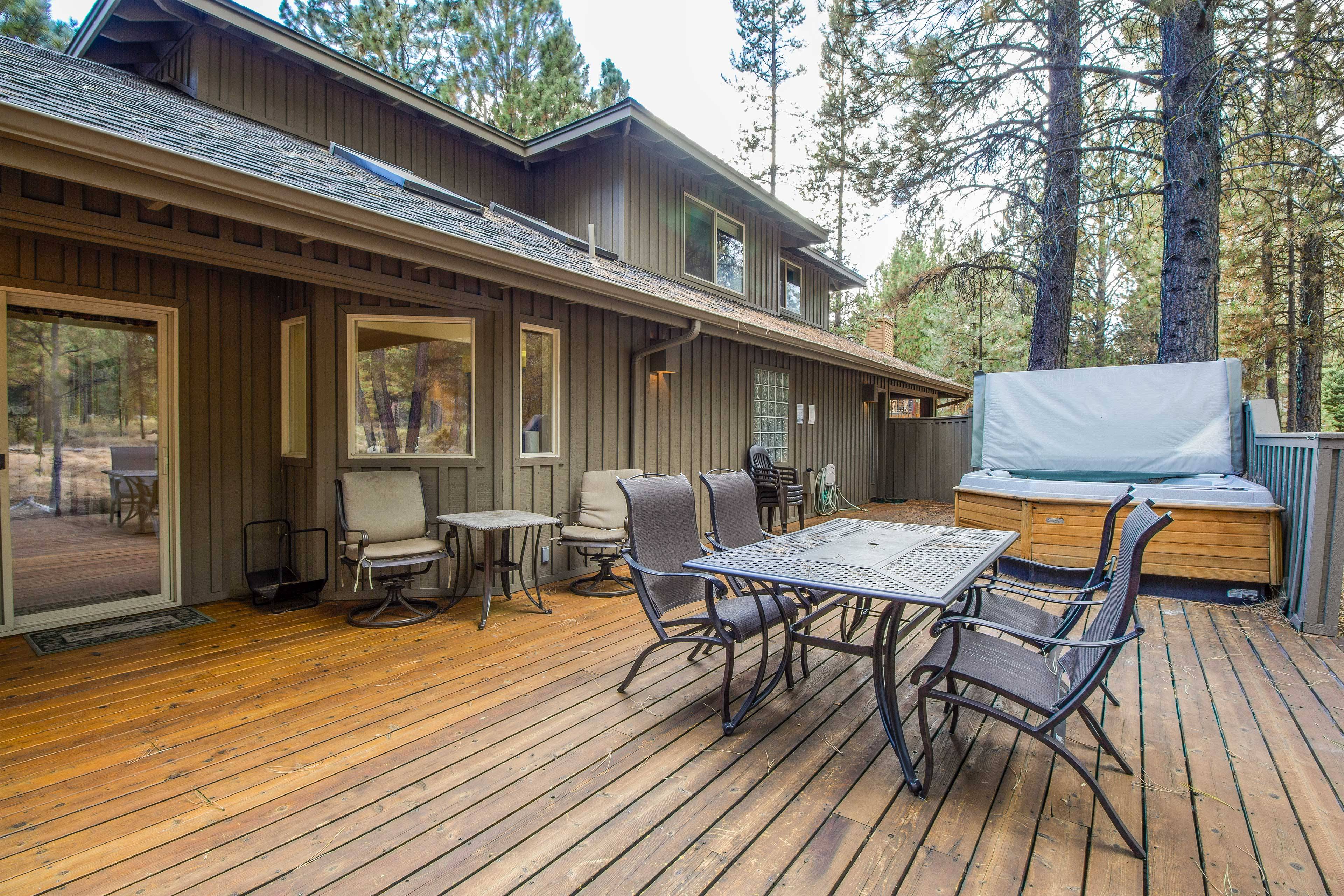 The great room opens up to the large deck (one of the best back decks in Sunriver), with lots of patio furniture and a bubbling hot tub for your soak under the stars following a long day of playing in the sun. Take a bike ride anywhere in Sunriver on one of the 5 adult bikes provided.
