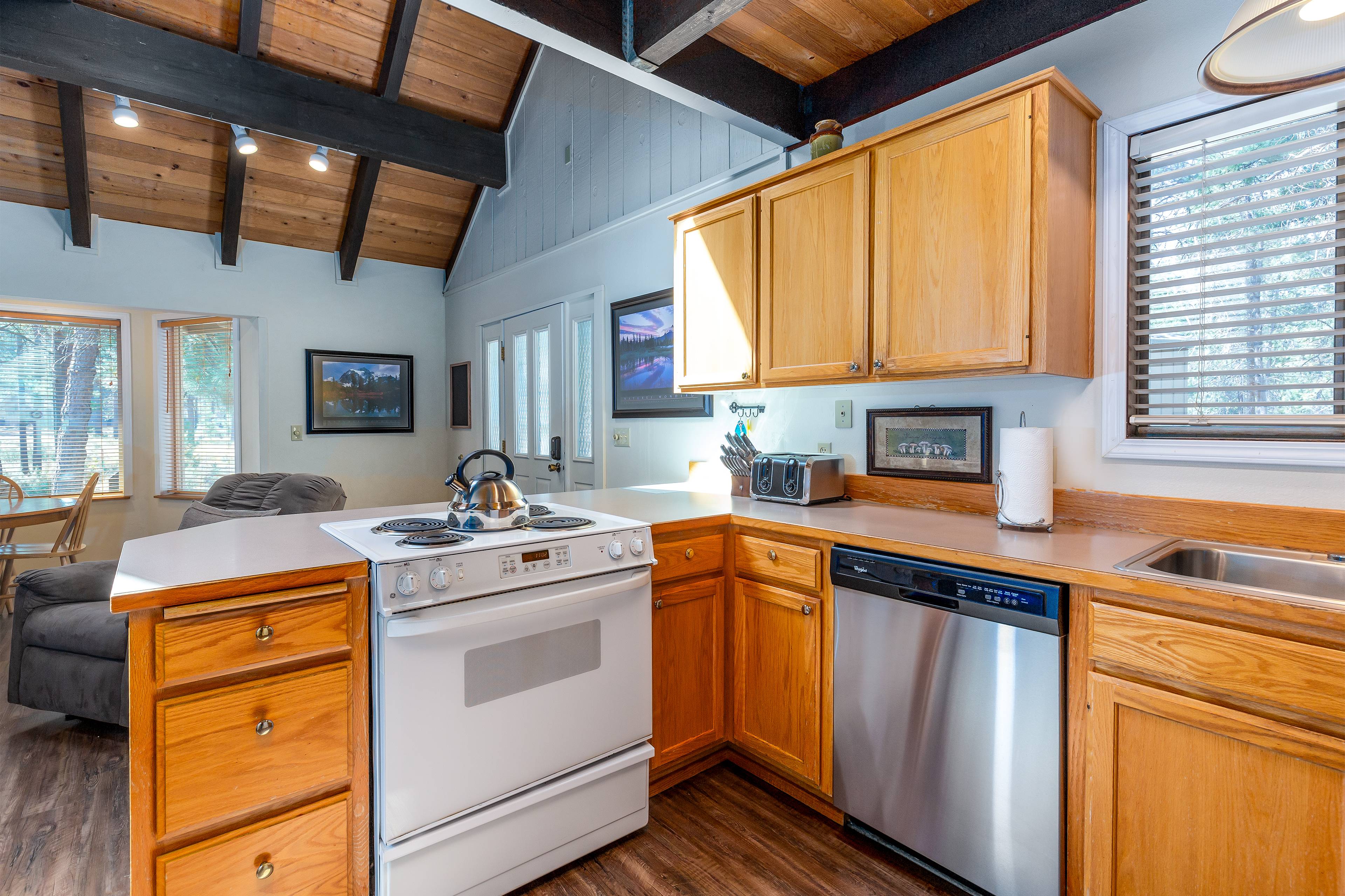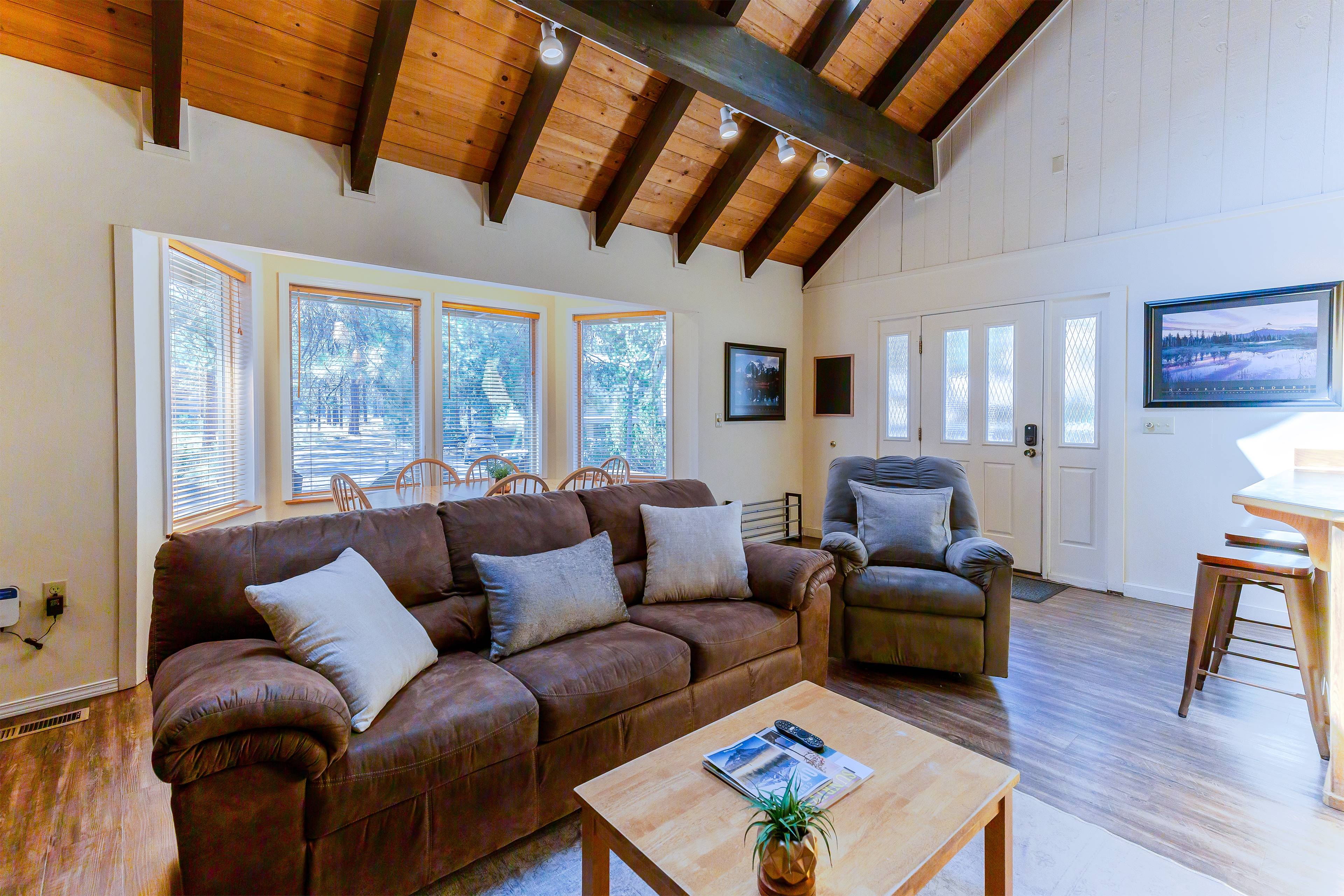 Your cabin in the woods awaits. This great home is nestled among the trees, a short walk from the shops, restaurants, and fun at the Sunriver Village, providing the perfect getaway for couples and young families to enjoy.