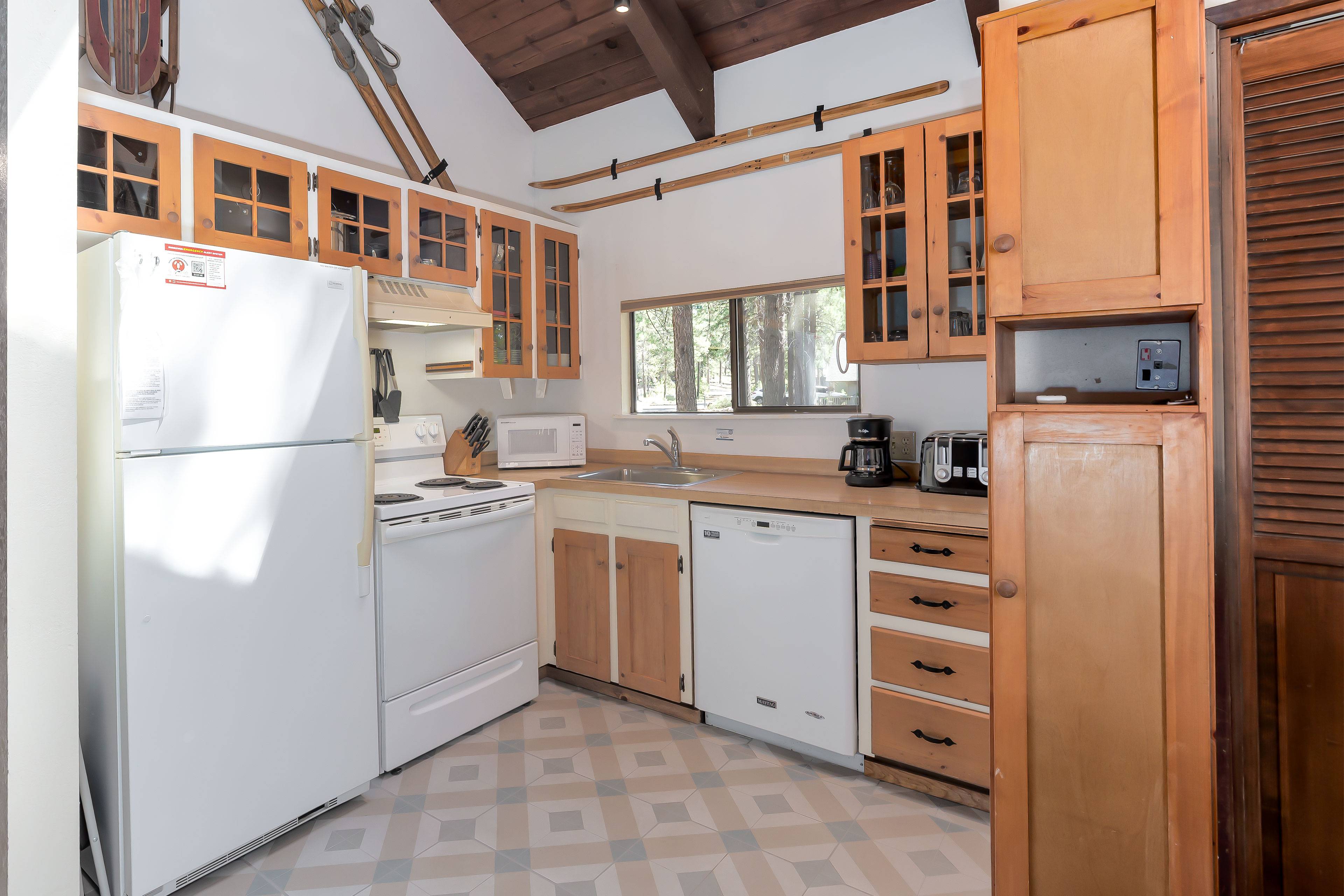The cozy living room has comfortable furnishings, perfect for a night in front of the fire. The adjacent kitchen is fully equipped for whipping up your family's favorite meals. The main level holds the primary bedroom with a queen bed and a full bathroom.