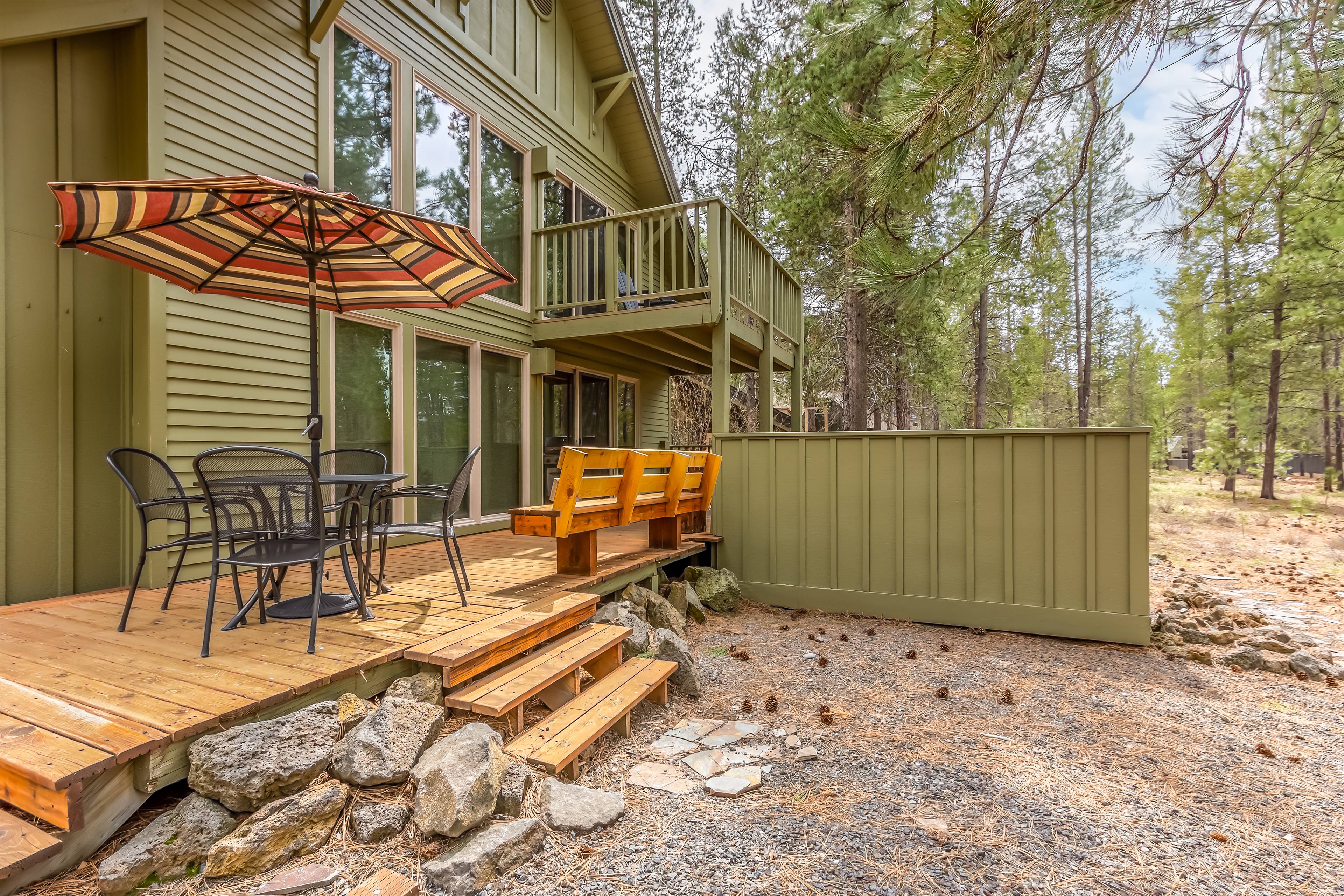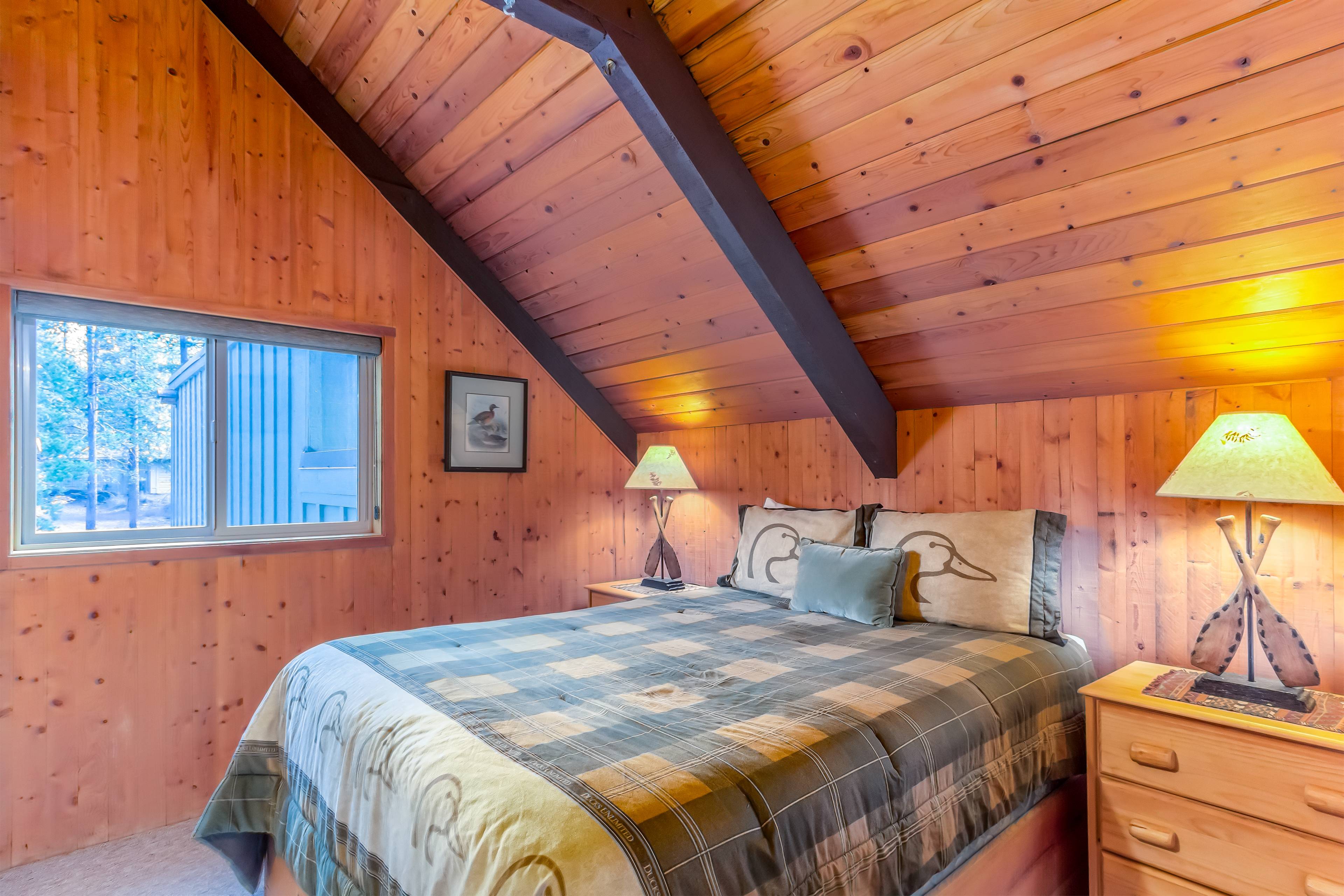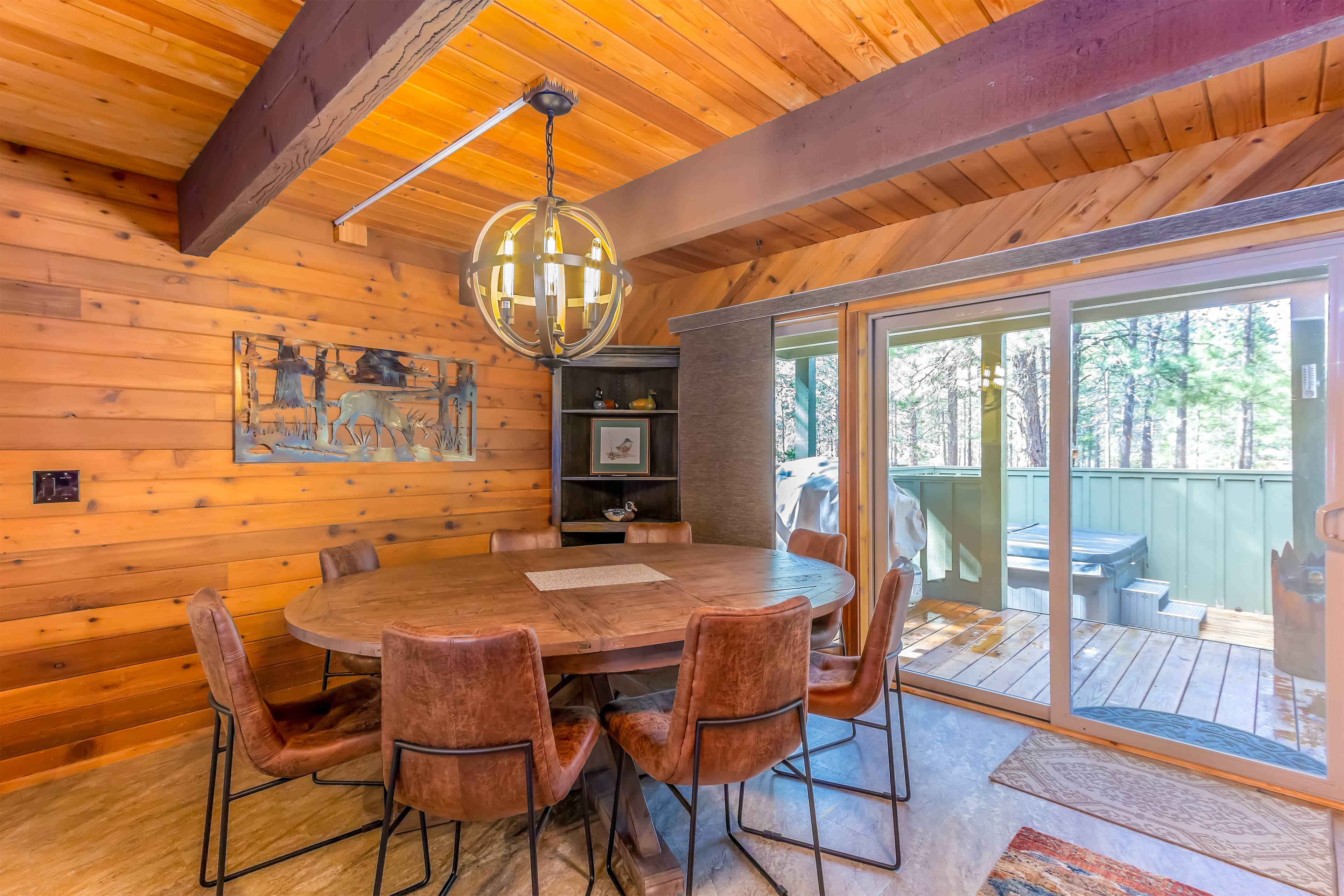 A wonderful, classic Sunriver Cabin with lots of cedar accents and newly remodeled kitchen! Up to 8 guests will sleep comfortably in the 4 bedrooms; 1 California King, 2 Queens, and 1 Pyramid Bunk. Each floor has a full bath, the loft with TV and sitting area provides a secondary living space to sneak away and read a good book, work on that puzzle, or play one of the many board games provided. Enjoy a friendly game of foosball. Located a short distance to the shops, restaurants, grocery store and activities at Sunriver's Village mall, perfect for a ride on the 4 adult bikes provided. 8 Deer is the perfect home-base from which guests can explore all the area has to offer! Soak under the stars in the home's private hot tub or enjoy a BBQ'd meal on the back deck.