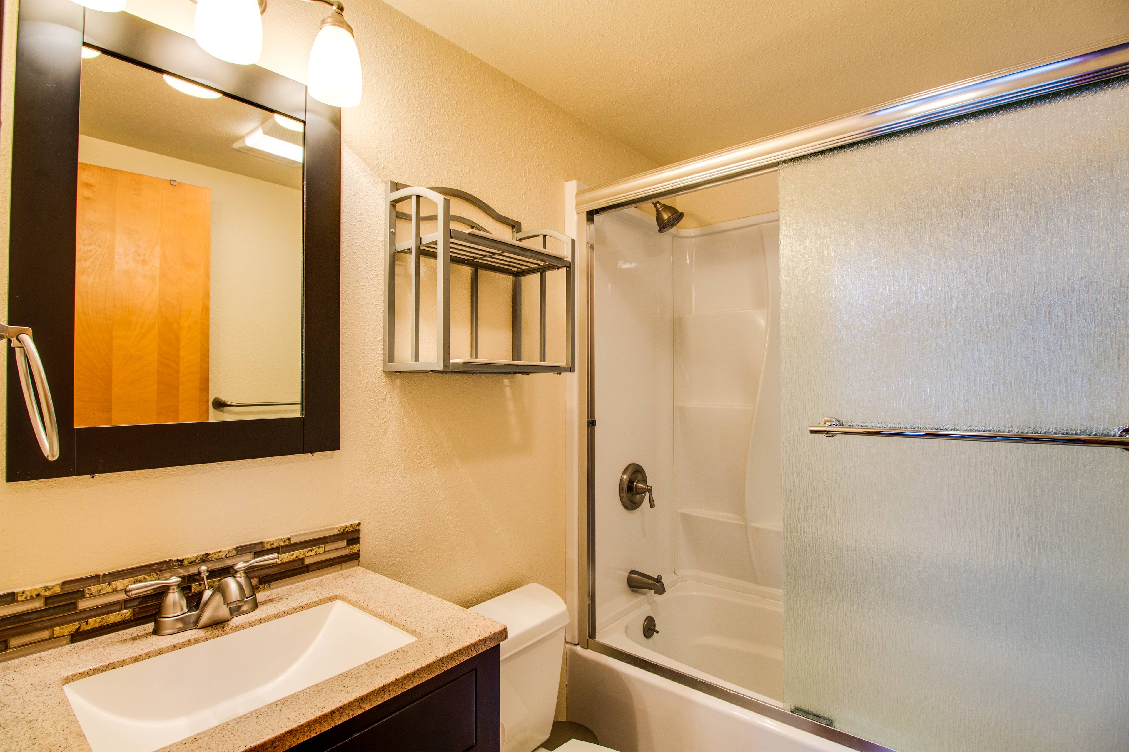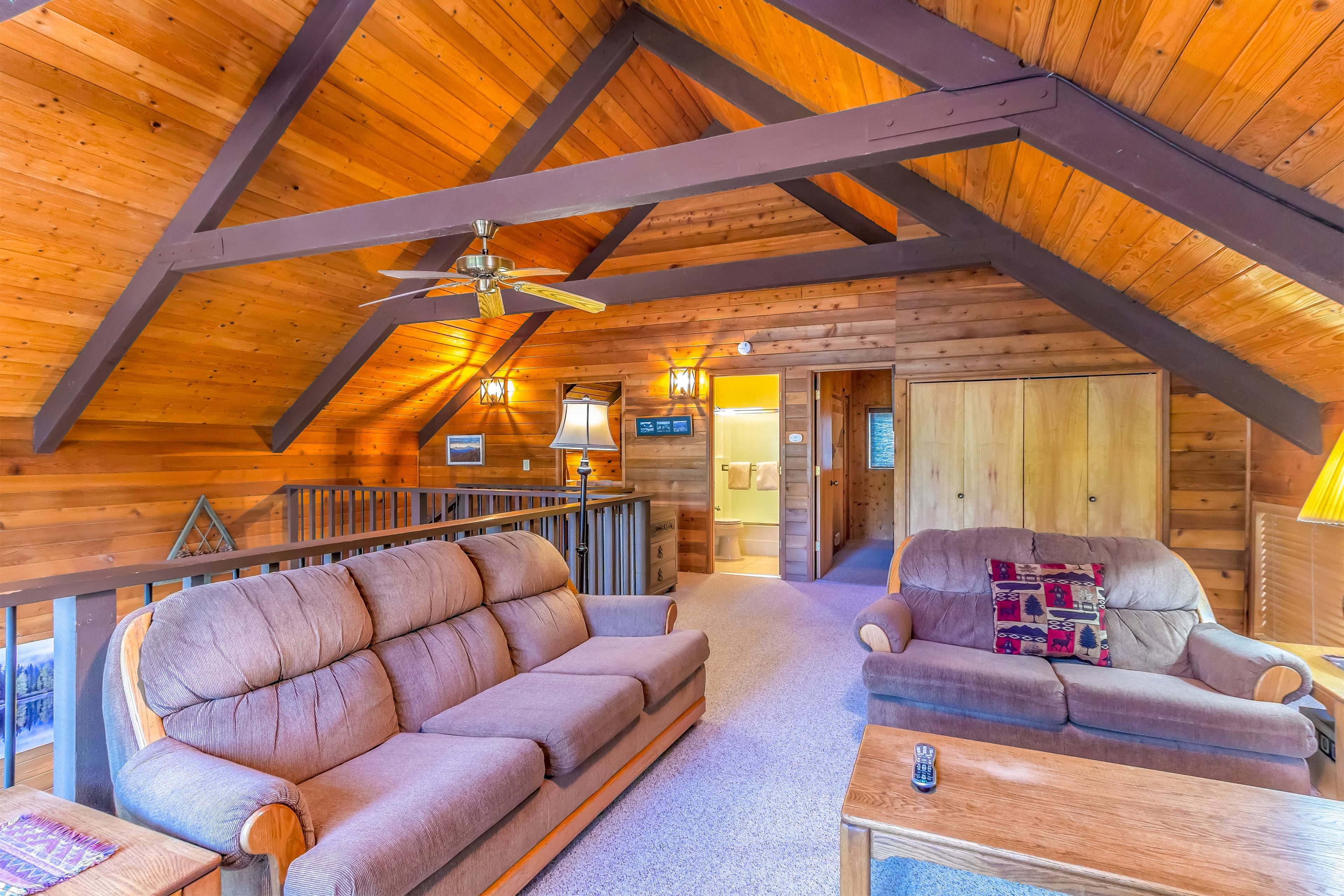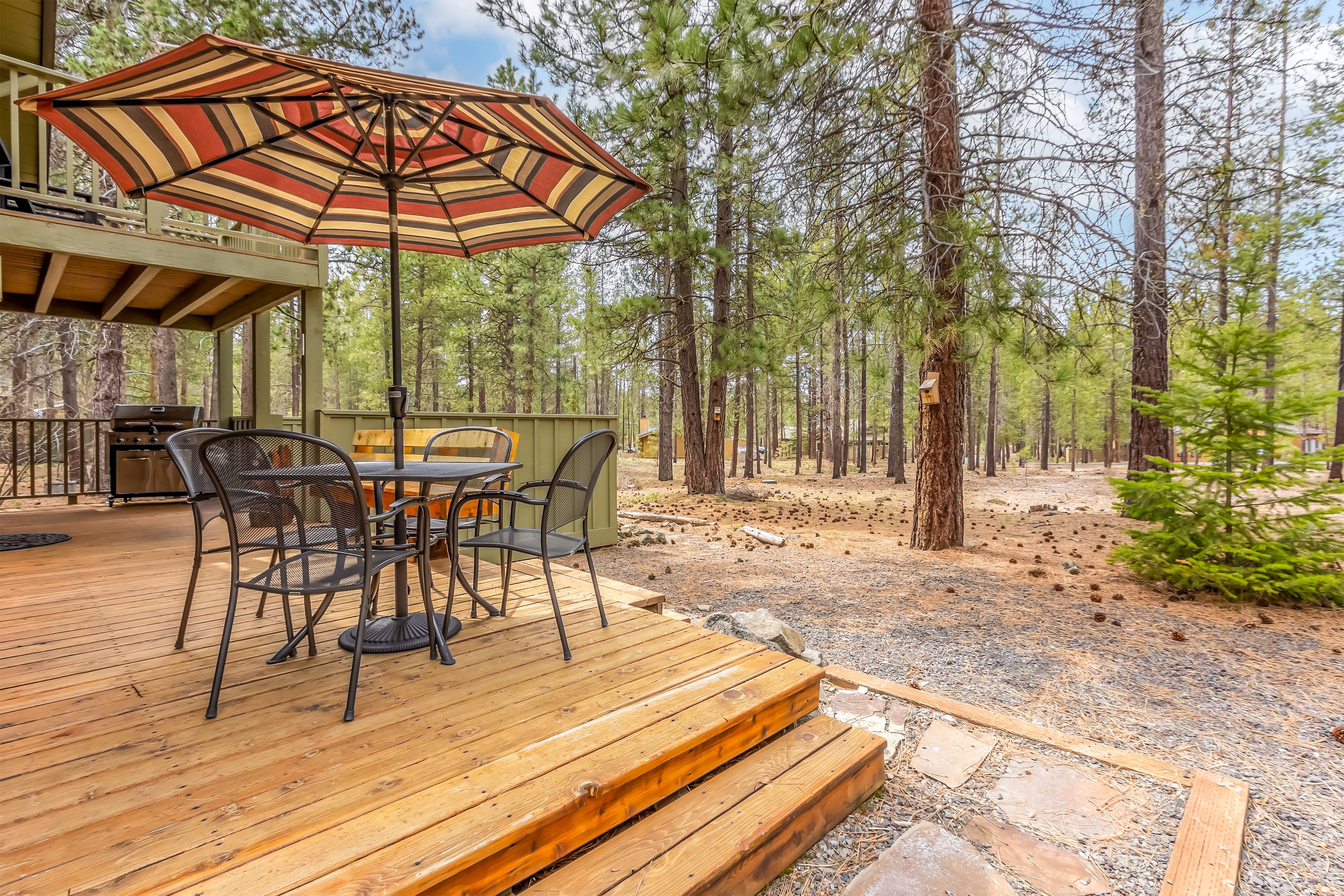 A wonderful, classic Sunriver Cabin with lots of cedar accents and newly remodeled kitchen! Up to 8 guests will sleep comfortably in the 4 bedrooms; 1 California King, 2 Queens, and 1 Pyramid Bunk. Each floor has a full bath, the loft with TV and sitting area provides a secondary living space to sneak away and read a good book, work on that puzzle, or play one of the many board games provided. Enjoy a friendly game of foosball. Located a short distance to the shops, restaurants, grocery store and activities at Sunriver's Village mall, perfect for a ride on the 4 adult bikes provided. 8 Deer is the perfect home-base from which guests can explore all the area has to offer! Soak under the stars in the home's private hot tub or enjoy a BBQ'd meal on the back deck.