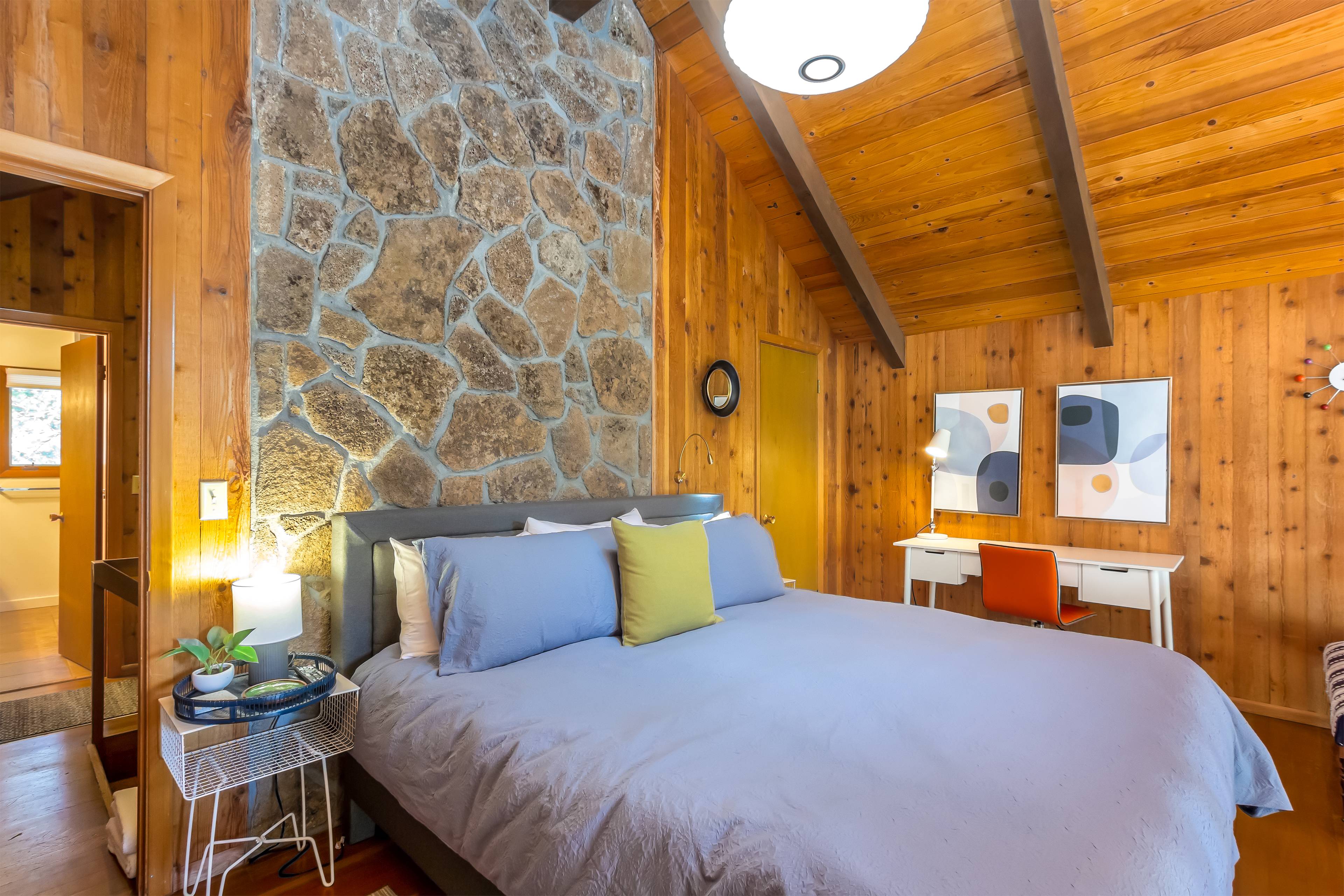 One of the best AirBnb's I have ever stayed at! This house is incredible! What makes it special is the way it is furnished and decorated. It is not cheap in any sort of way. There must have been an interior designer doing this house because the details right down to decorations on the shelf, the awesome buffet, clock in the master bedroom are awesome! The feeling you get with a peaked roof looking out to the trees, huge real fireplace with local rock, loft looking out over it all is fantastic. And the sunken living room, cozy!! I would also point out that no part of the house feels 'used up'. The range hood is original but in great shape for example. Master bedroom mattress is extremely comfortable too. Kitchen well stocked Bennington property managers were very proactive and was easy to check in. Only small negative is proximity to the main road, but its not bad and hardly hear anything, definitely tucked back. We would love to visit again!