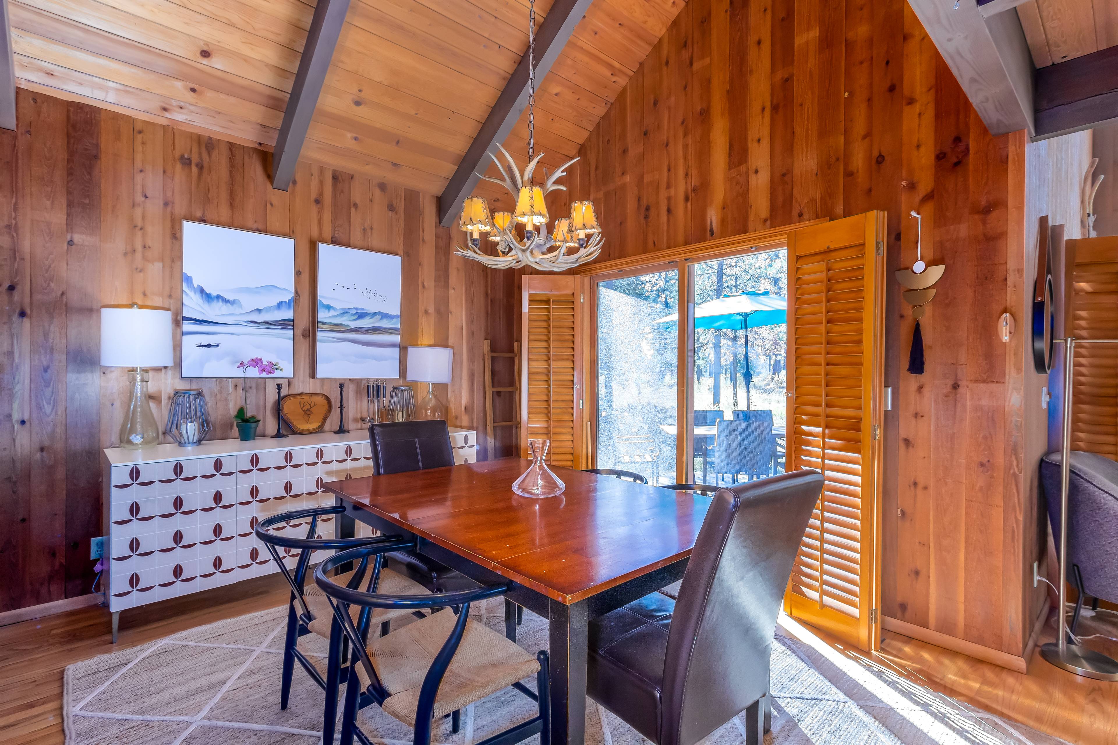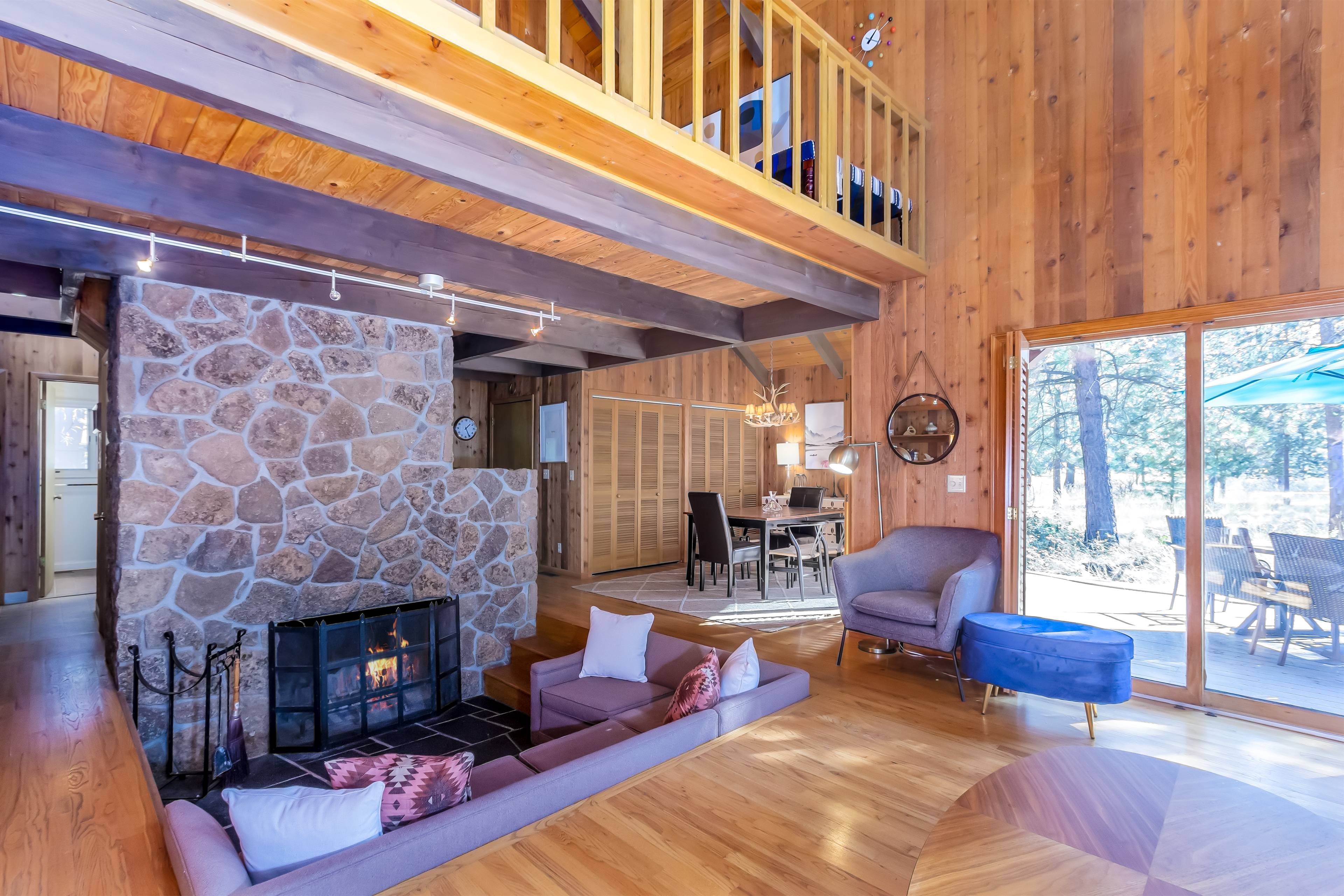 You'll enjoy the retro furnishings in this very unique Sunriver Home. The living room has a sunken seating area to enjoy the wood fireplace, plus TV with cable. The adjacent dining room has seating for 6 and is just outside of the fully-stocked kitchen.