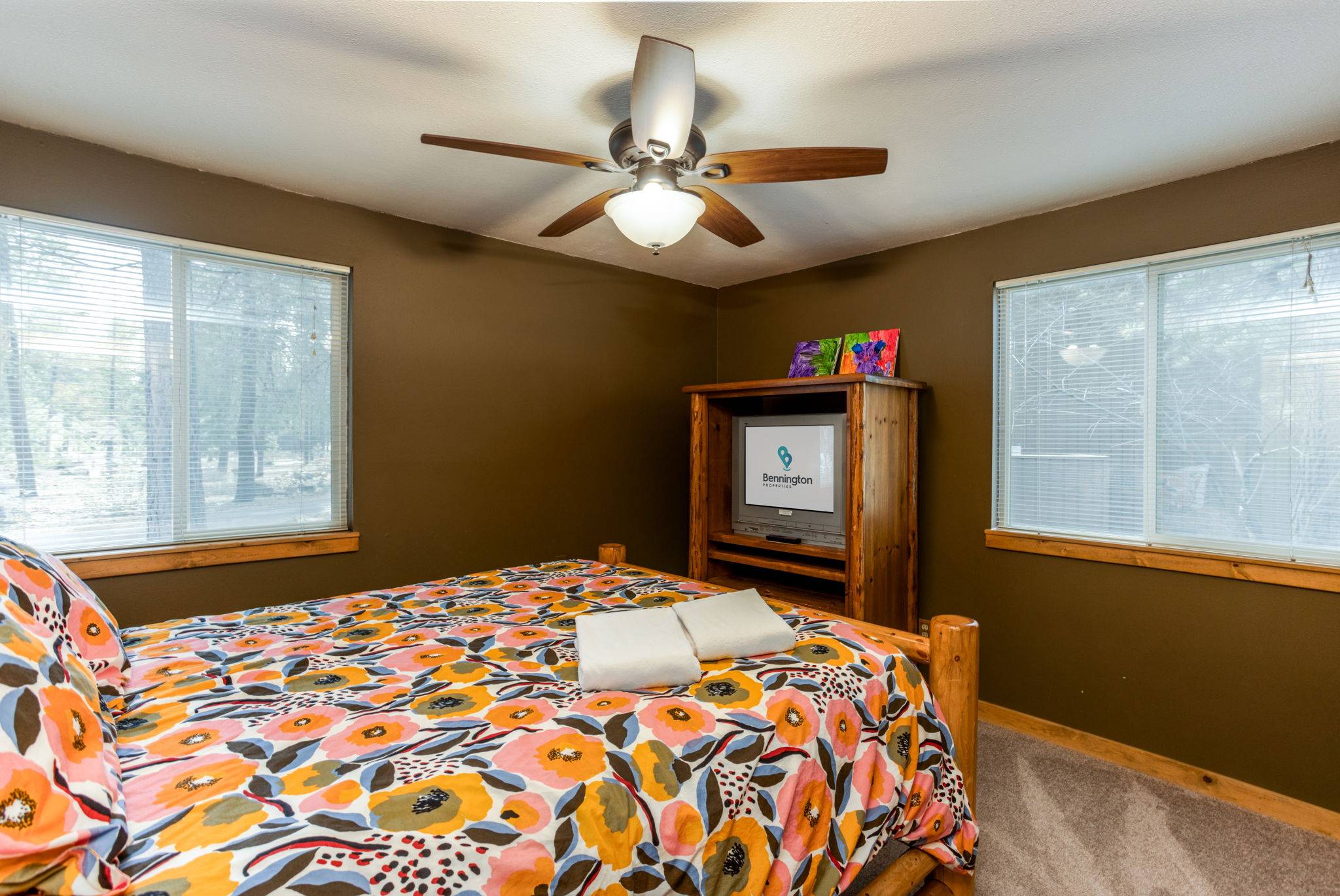 The big back deck is perfect for lounging or firing up the grill for a family BBQ surrounded by tall pines. With bikes included, it's easy to cruise to Fort Rock Park, the SHARC Aquatic Center, or grab a treat in the Village.
