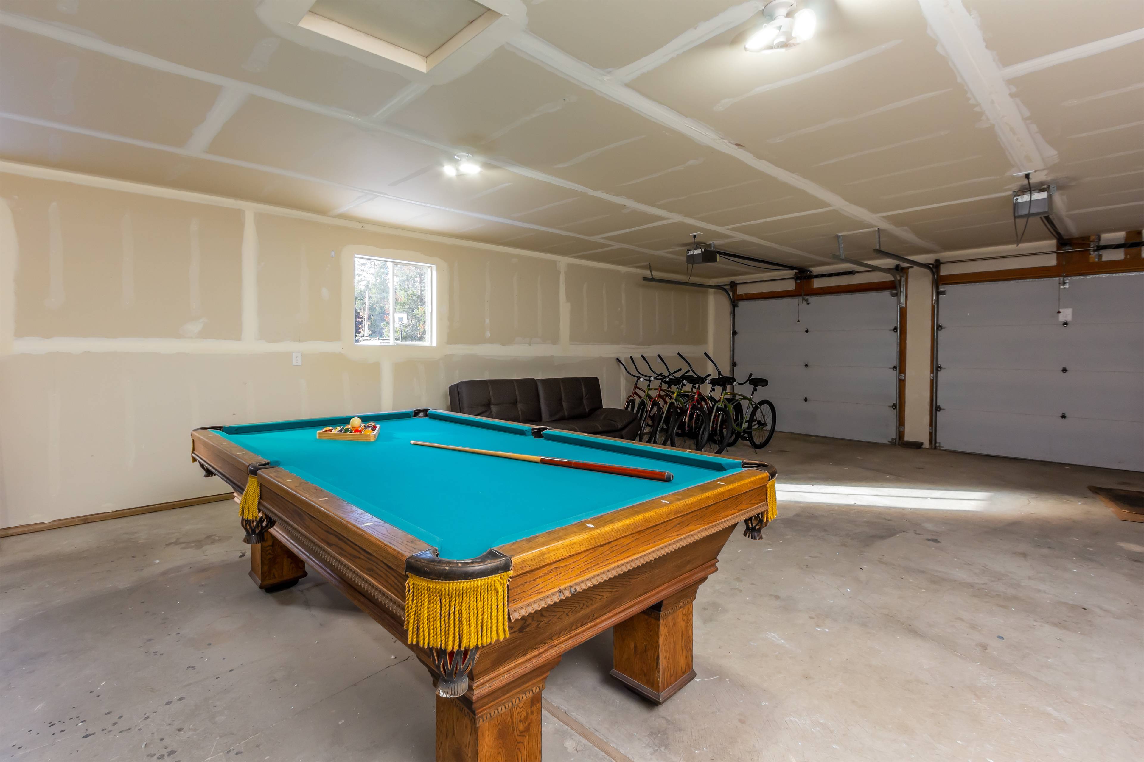 The garage holds a full-sized pool table and bikes when you are ready to take a cruise around the neighborhood.