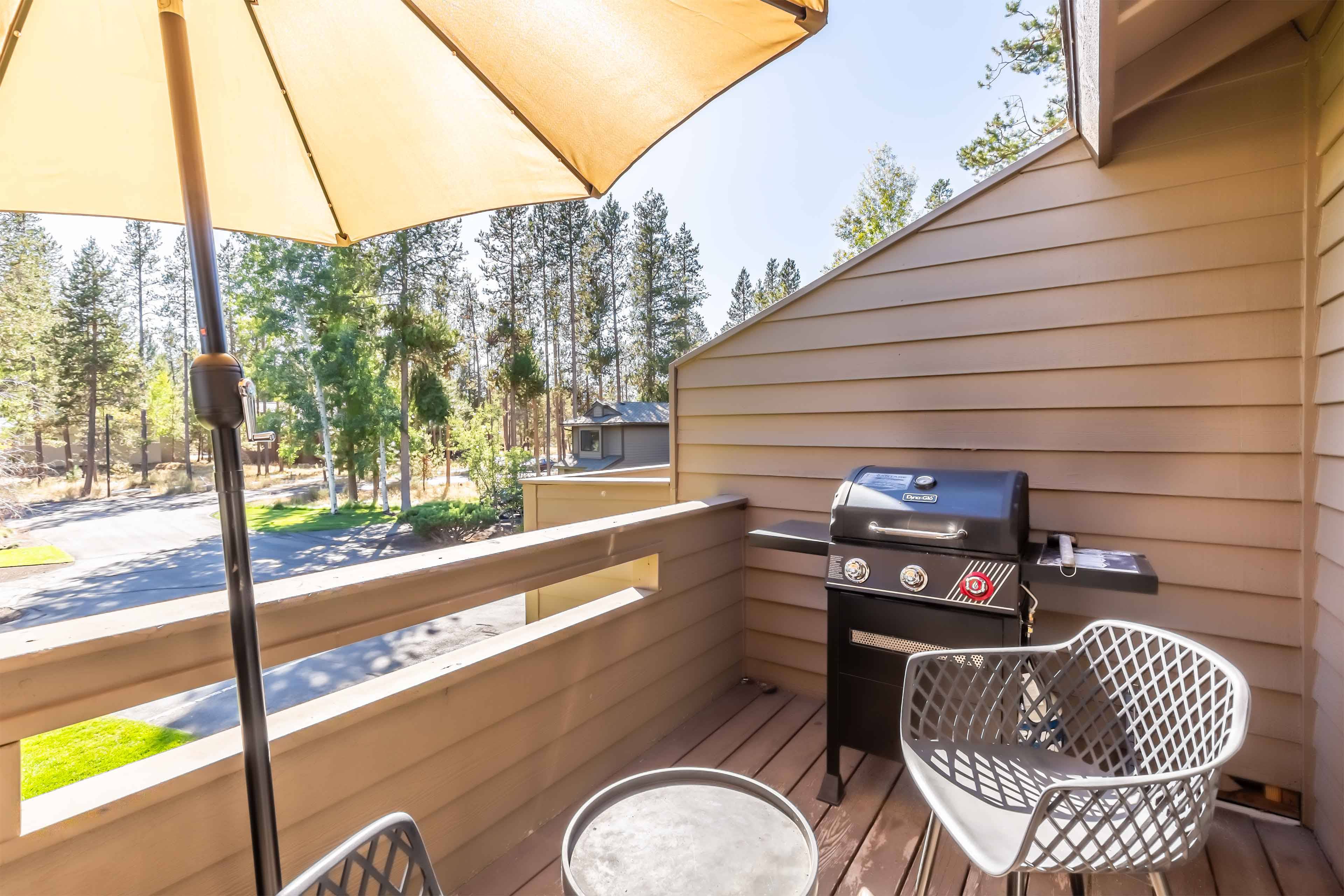 Take a break and head outside to one of two balconies to soak up the fresh mountain air. The balcony off of the kitchen has a gas BBQ.