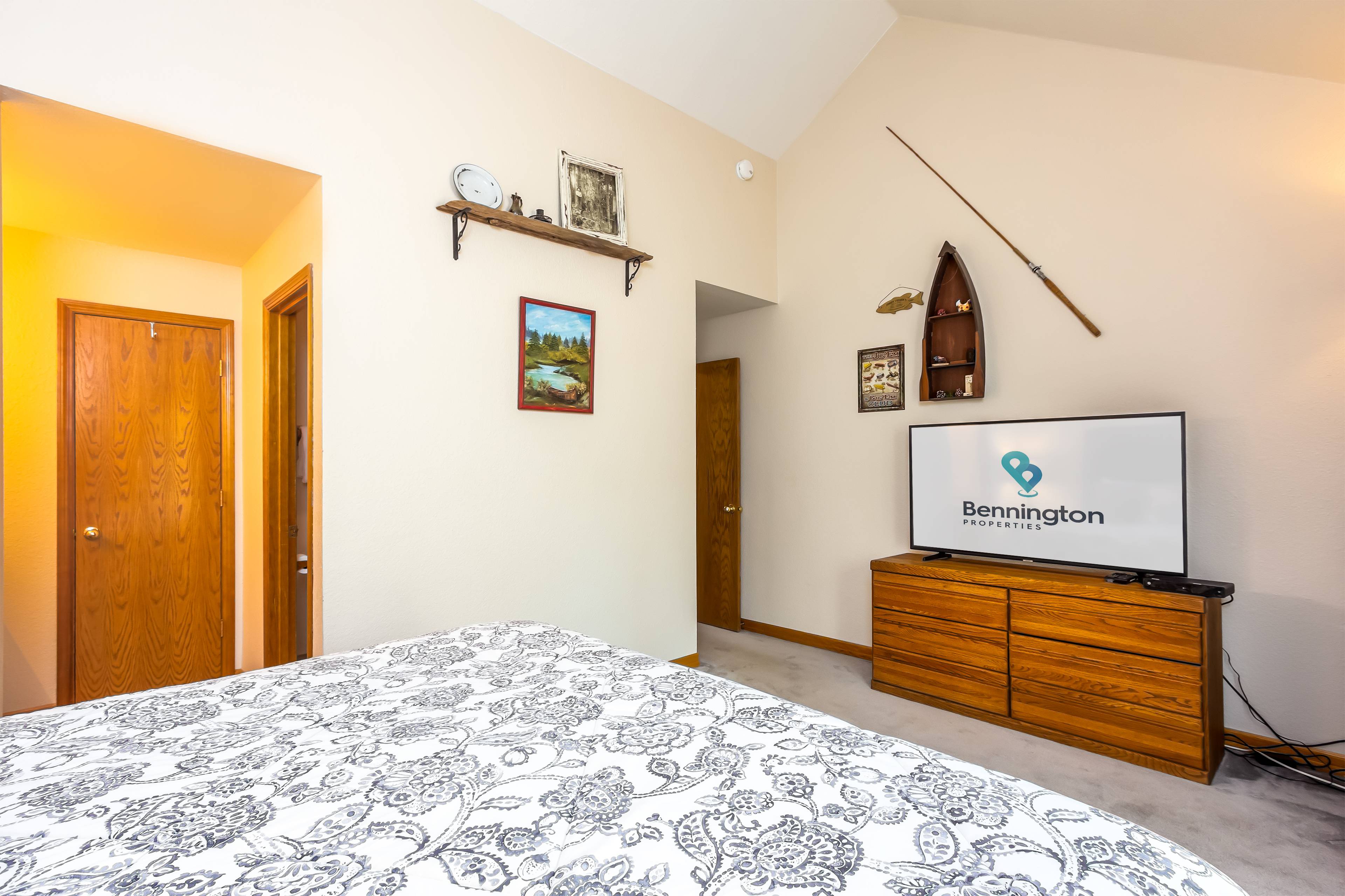 Downstairs you'll find the primary suite features a king bed, cable TV, private bathroom with shower and a walk in closet, laundry, and half guest bathroom can also be found on the mail level.