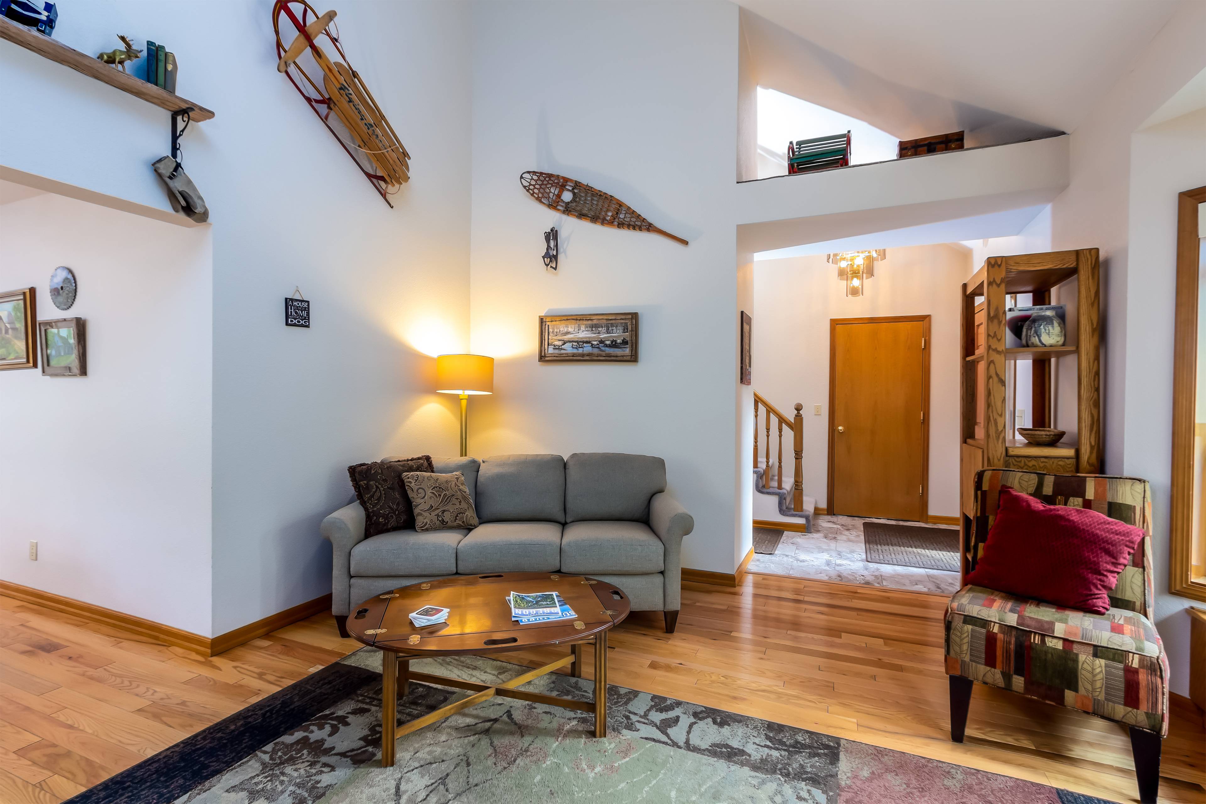 Downstairs you'll find an open floor plan, with living room, kitchen, dining and family room areas all together. You'll find a gas fireplace in the family room with cable TV and DVD player. The updated kitchen has everything you'll need to whip up your family's favorite meals, and the adjacent dining room offers seating for 8 plus three more at the kitchen counter.