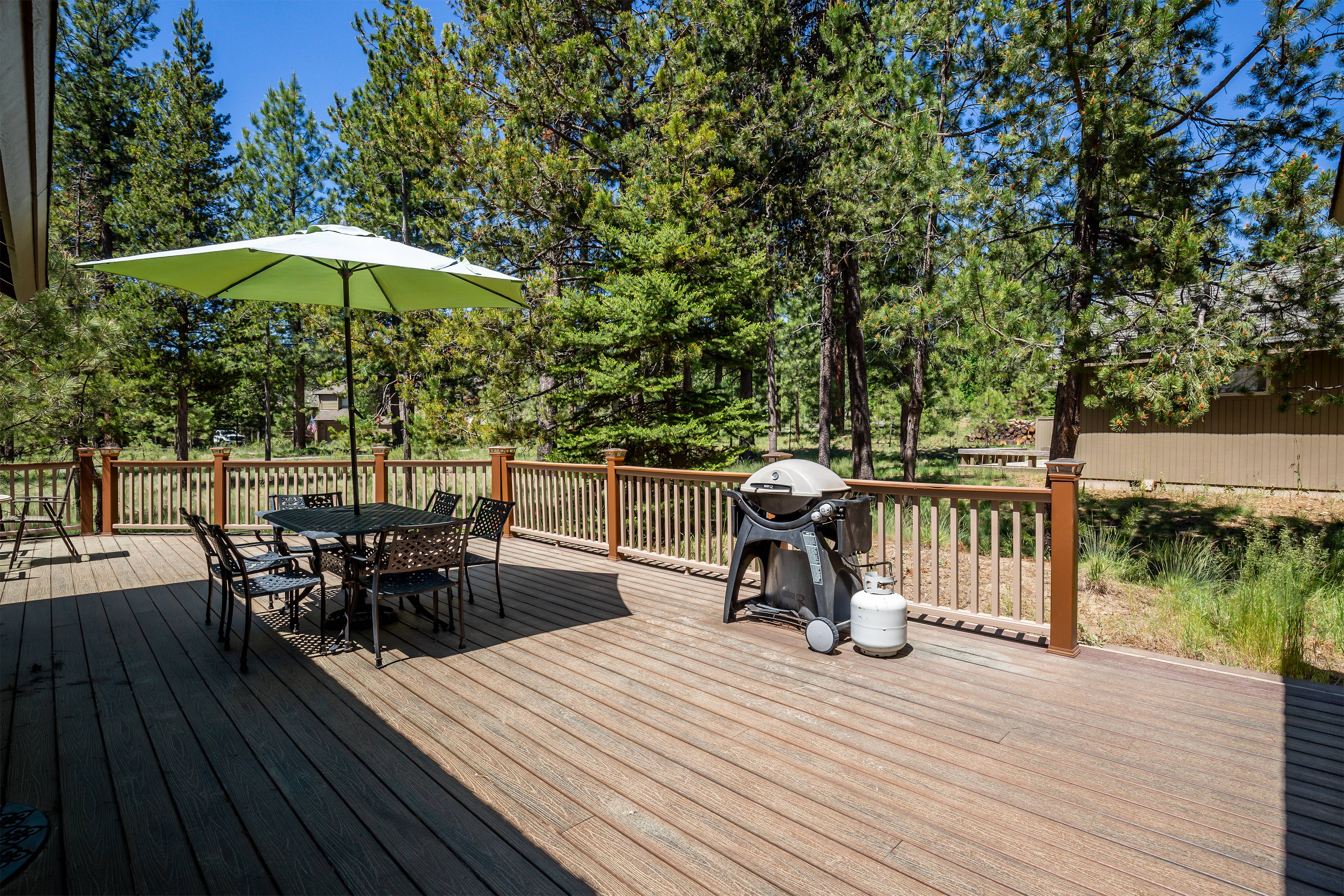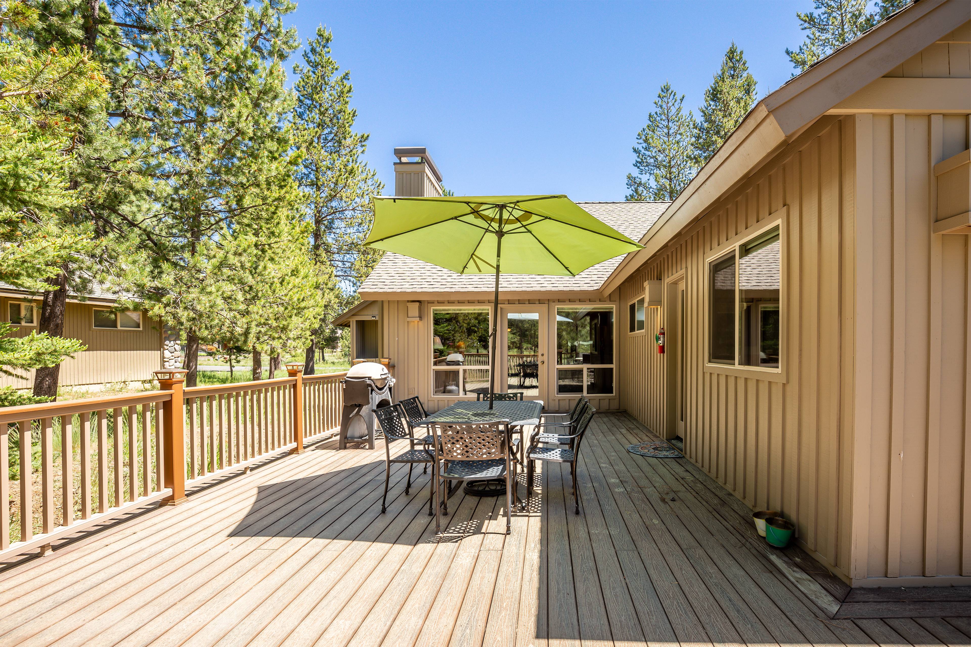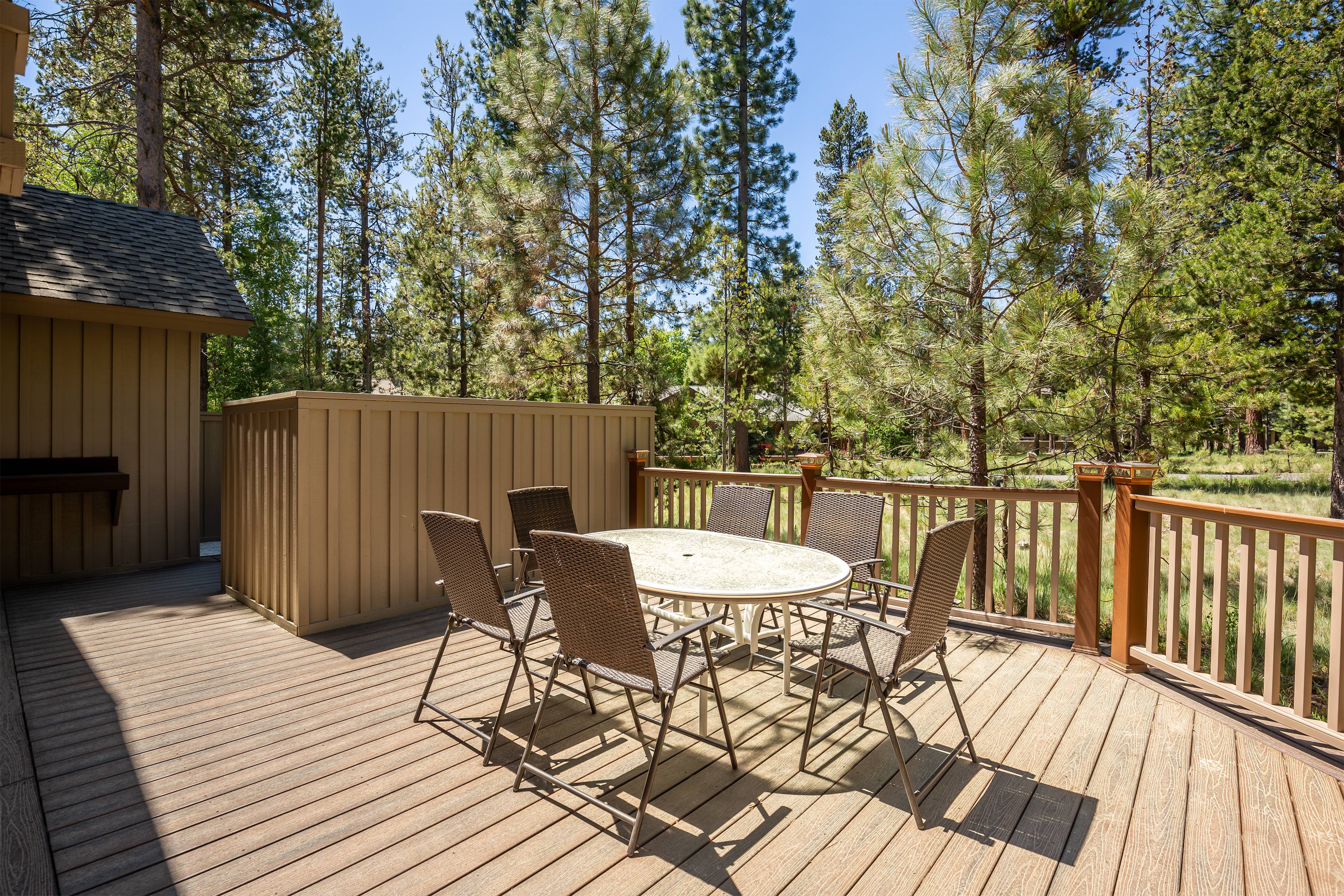 Adjacent to the great room is the dining area with seating for six and the fully stocked kitchen. Meal prep with ease on the large kitchen island or head out to the back deck to grill up your favorite BBQ.