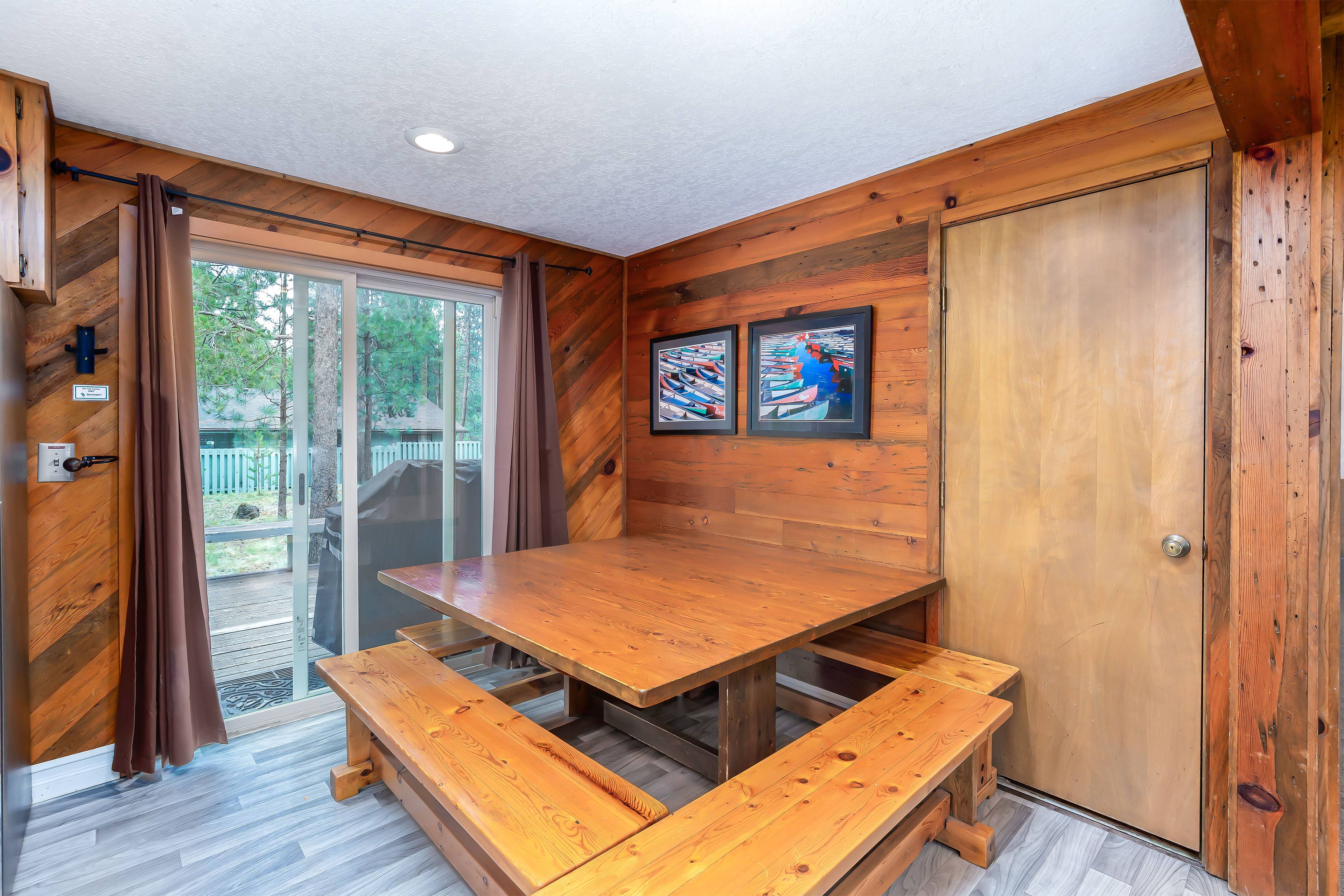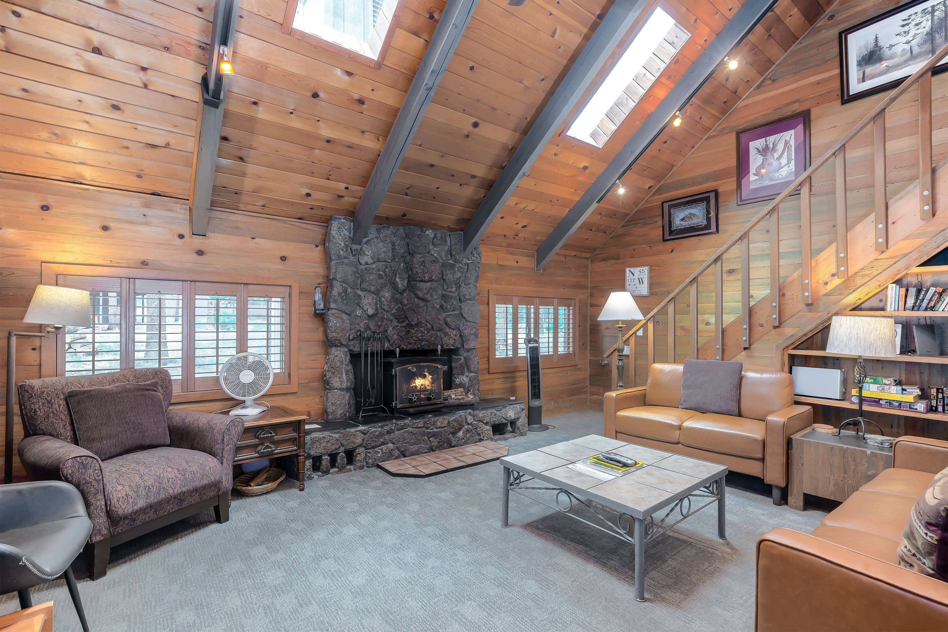 Welcome to your classic Sunriver getaway—where comfort, charm, and plenty of space make it the perfect home base for your next family adventure. Tucked beneath the pines, this inviting cabin blends rustic warmth with thoughtful amenities, starting with the cozy living room featuring vaulted ceilings, a crackling wood-burning fireplace, and ample room to relax after a day on the trails or slopes.