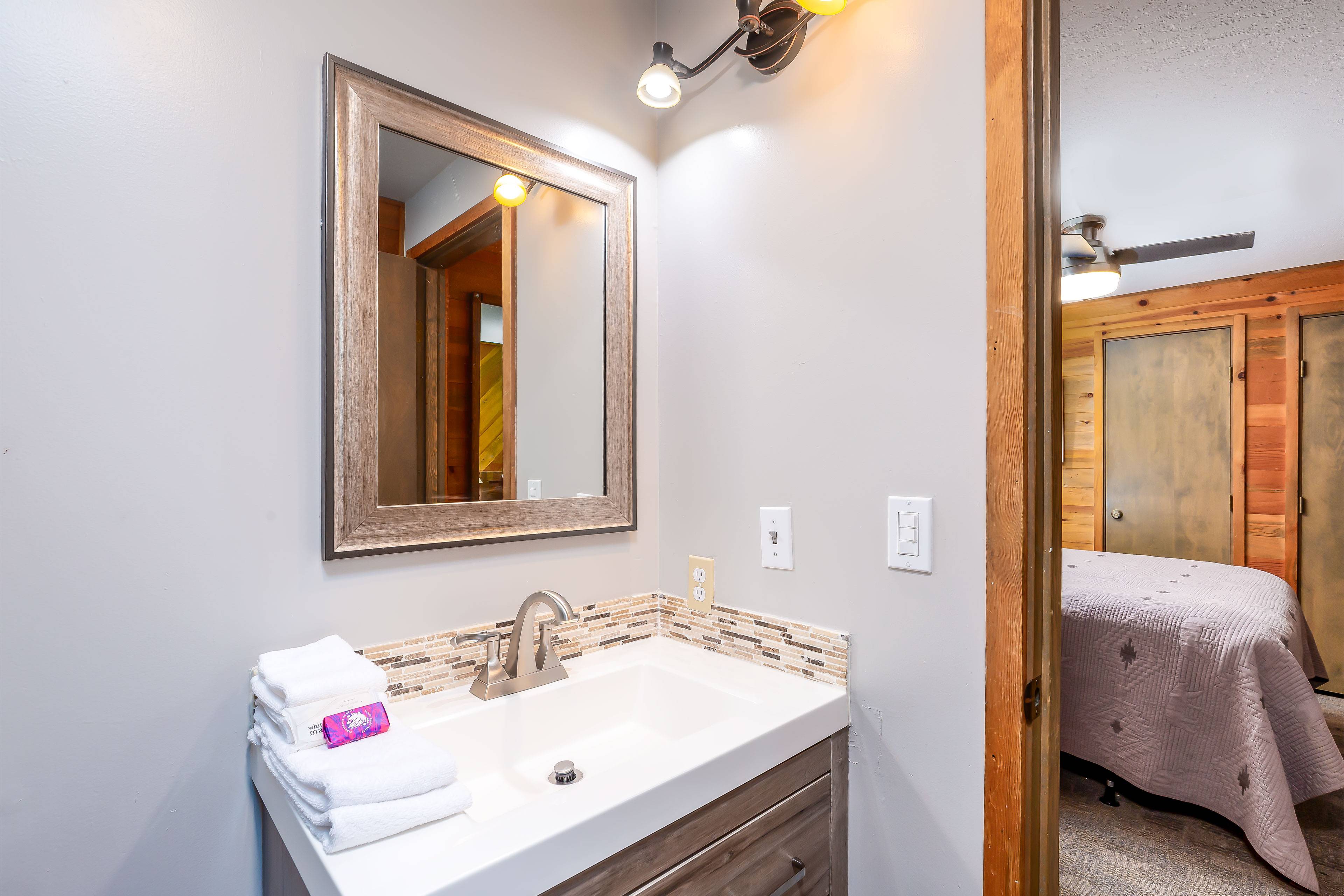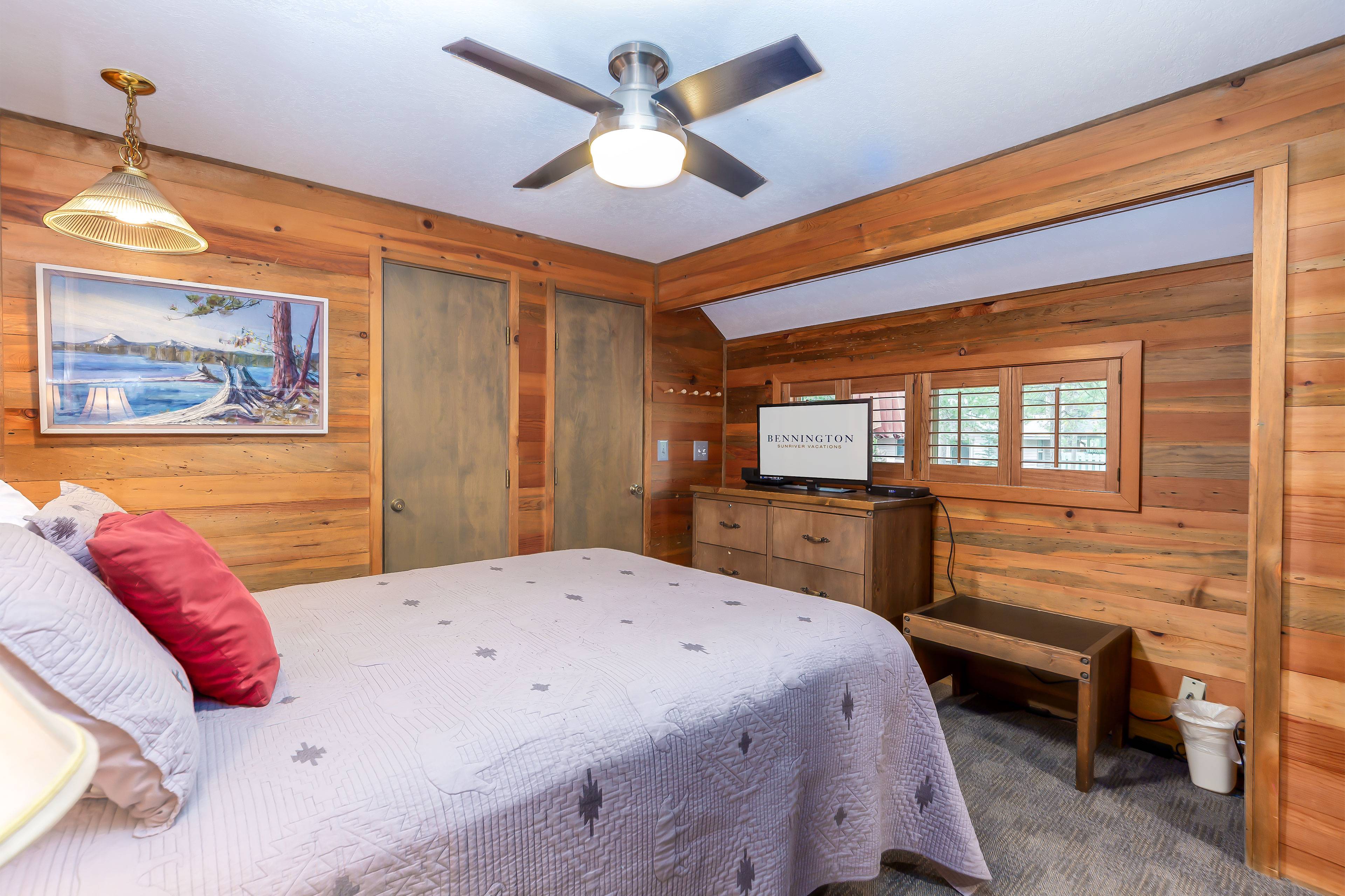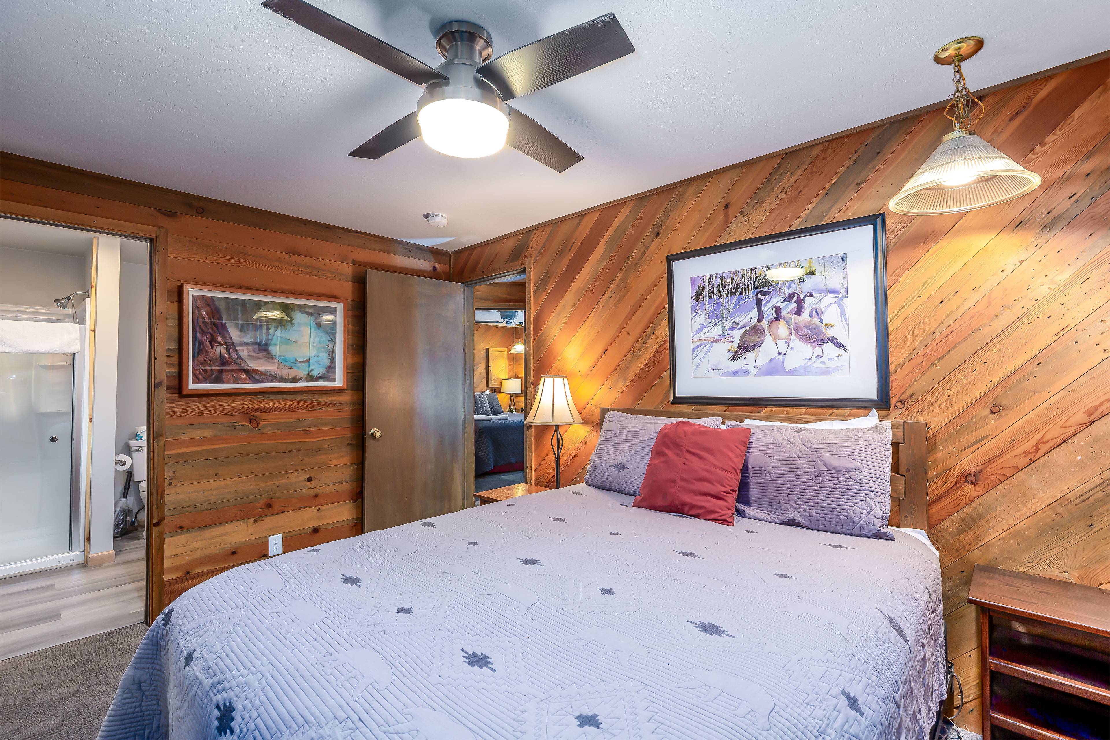 The fully stocked kitchen has everything you need to cook up family favorites, and the adjacent dining room is ready for everything from pancake breakfasts to game night feasts. On the main level, you’ll find a spacious king ensuite with a private full bathroom—ideal for parents or grandparents looking for a little retreat. Also on the main level are two queen bedrooms that share a full bath.
