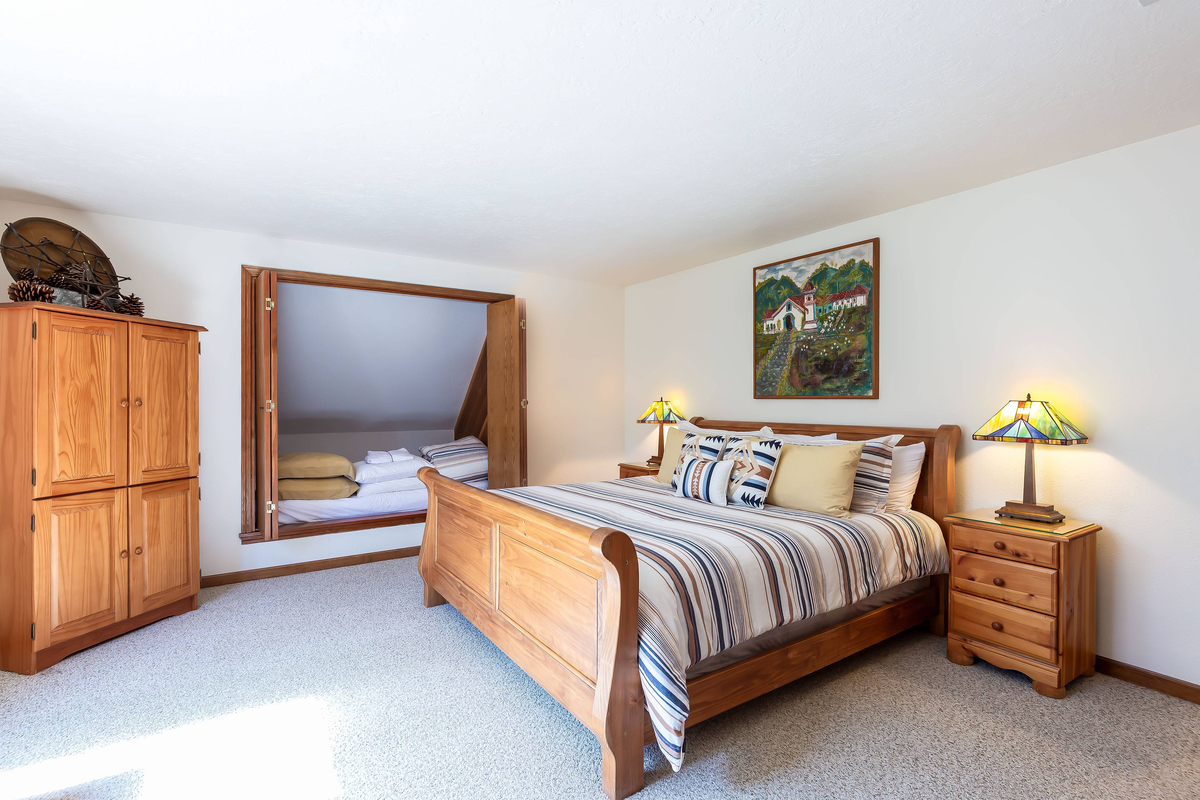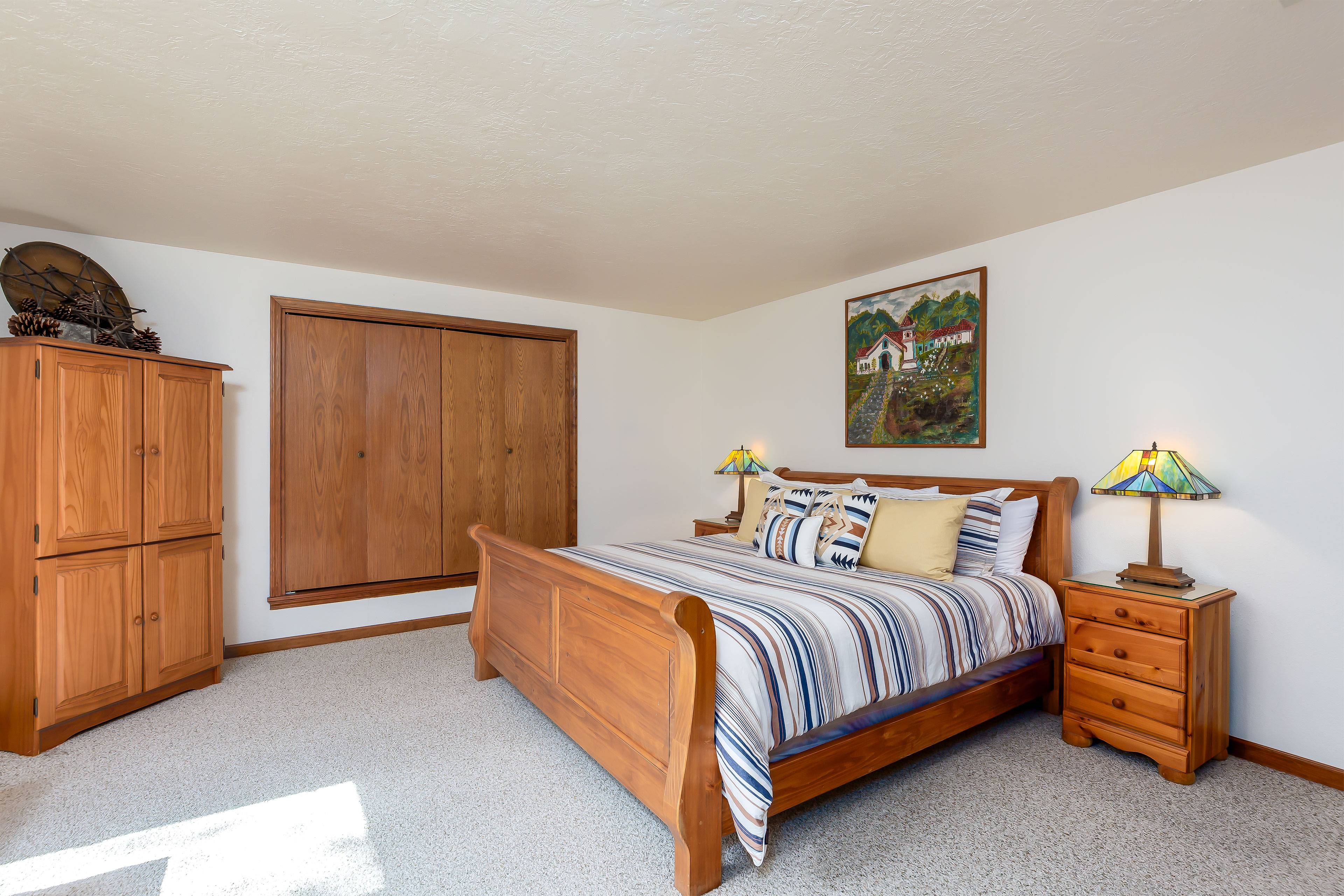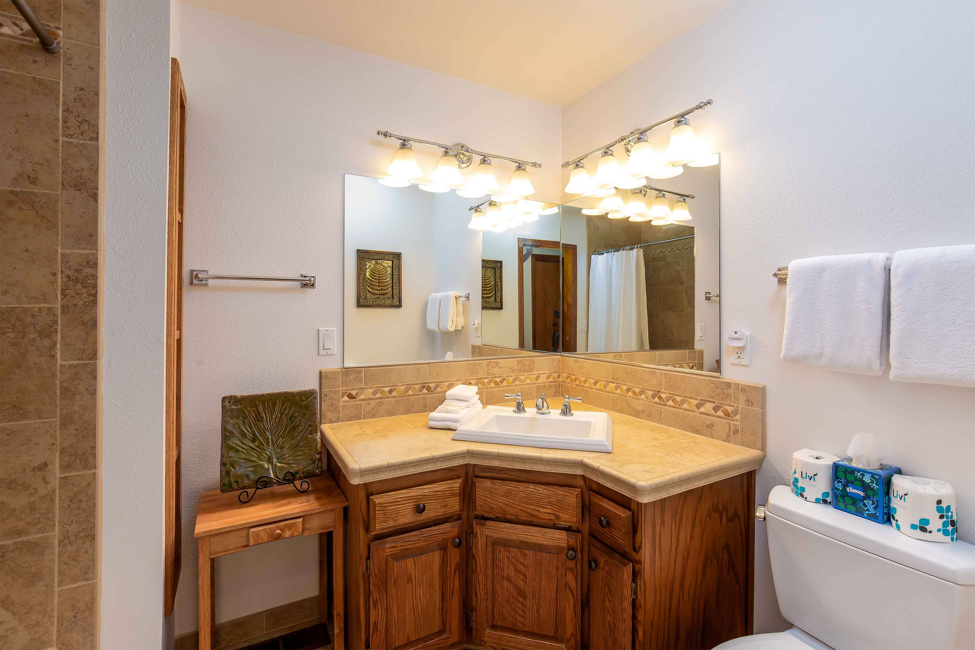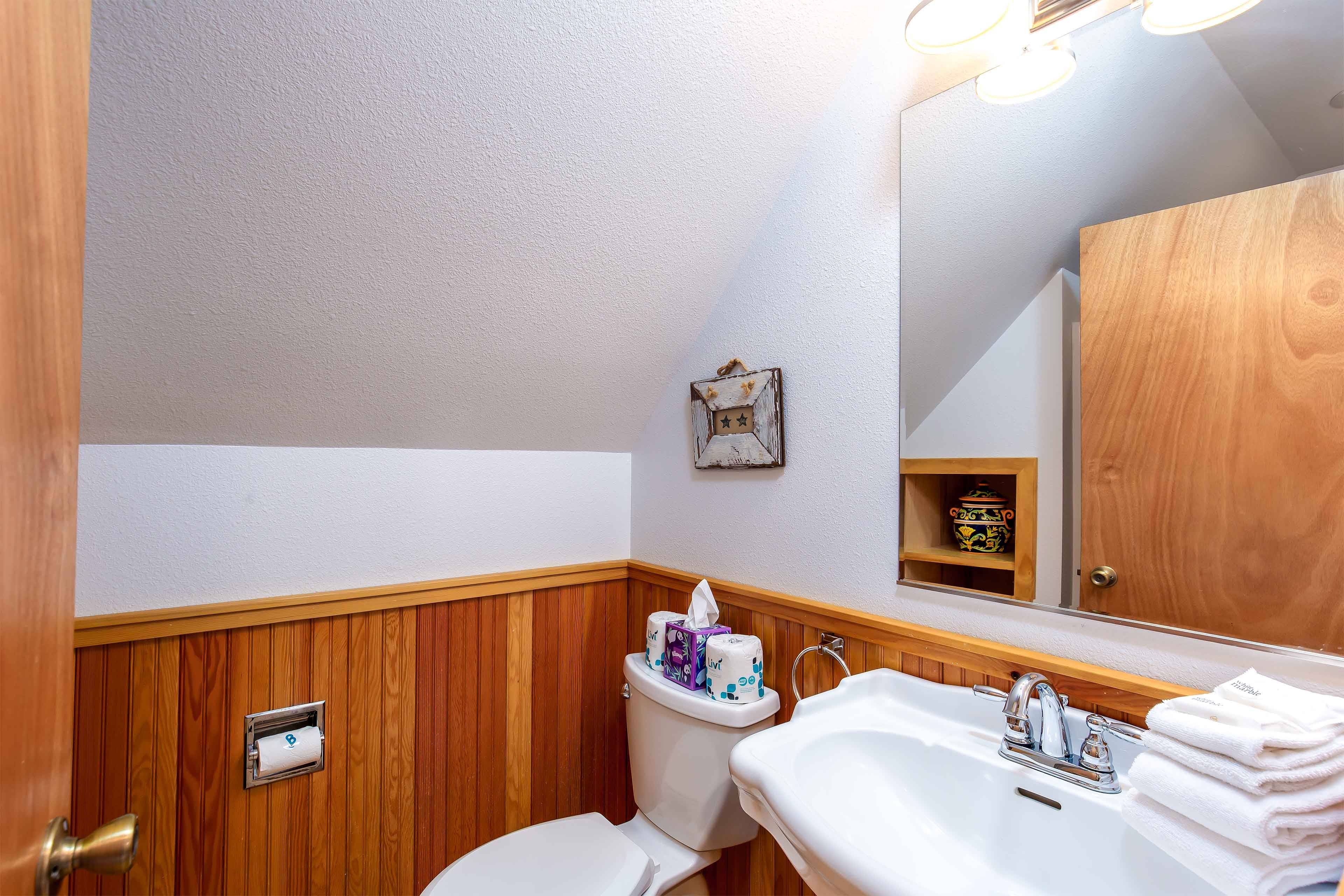 The primary suite is conveniently located on the main level, complete with a private bathroom – perfect for a peaceful retreat after a long day of adventure.
