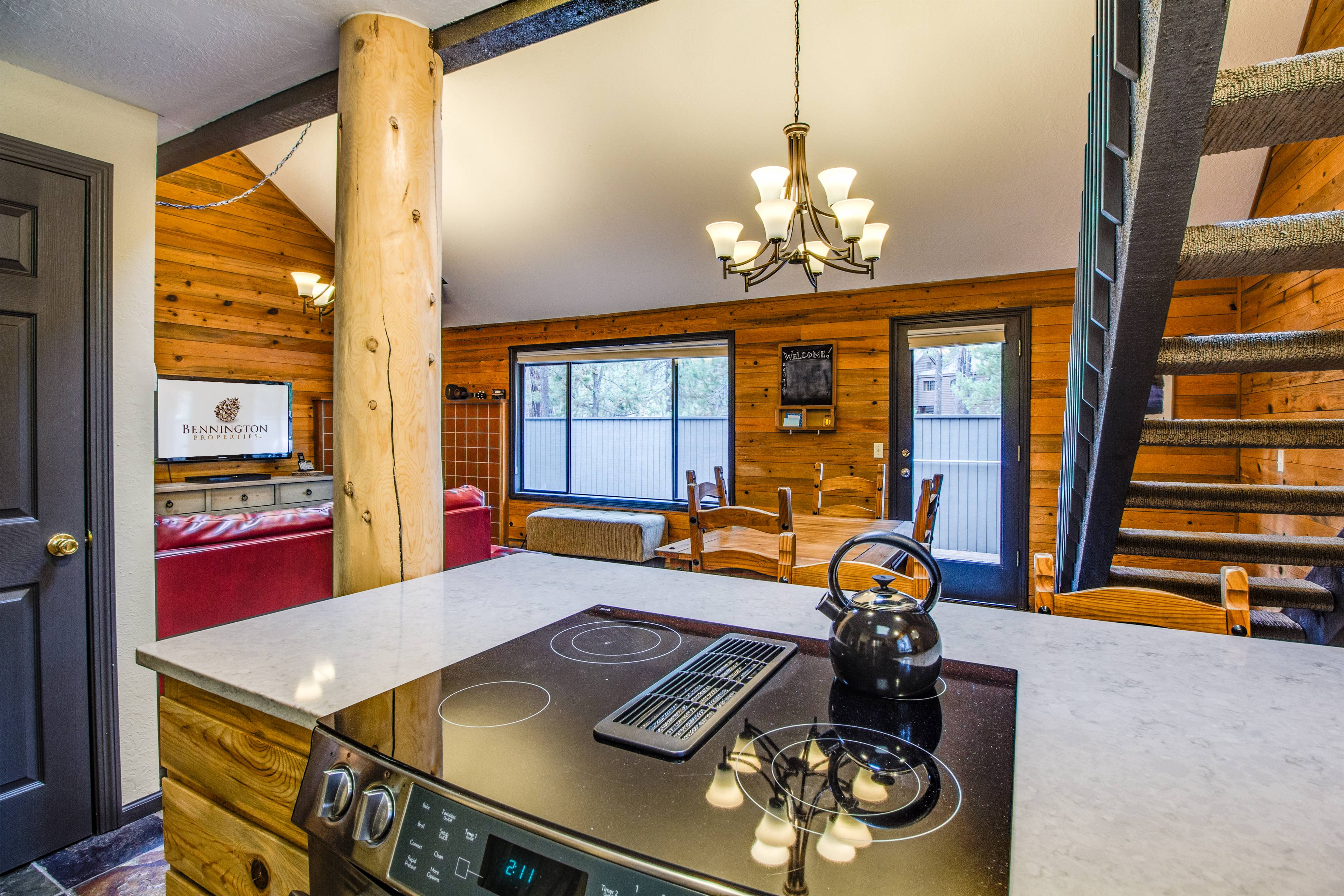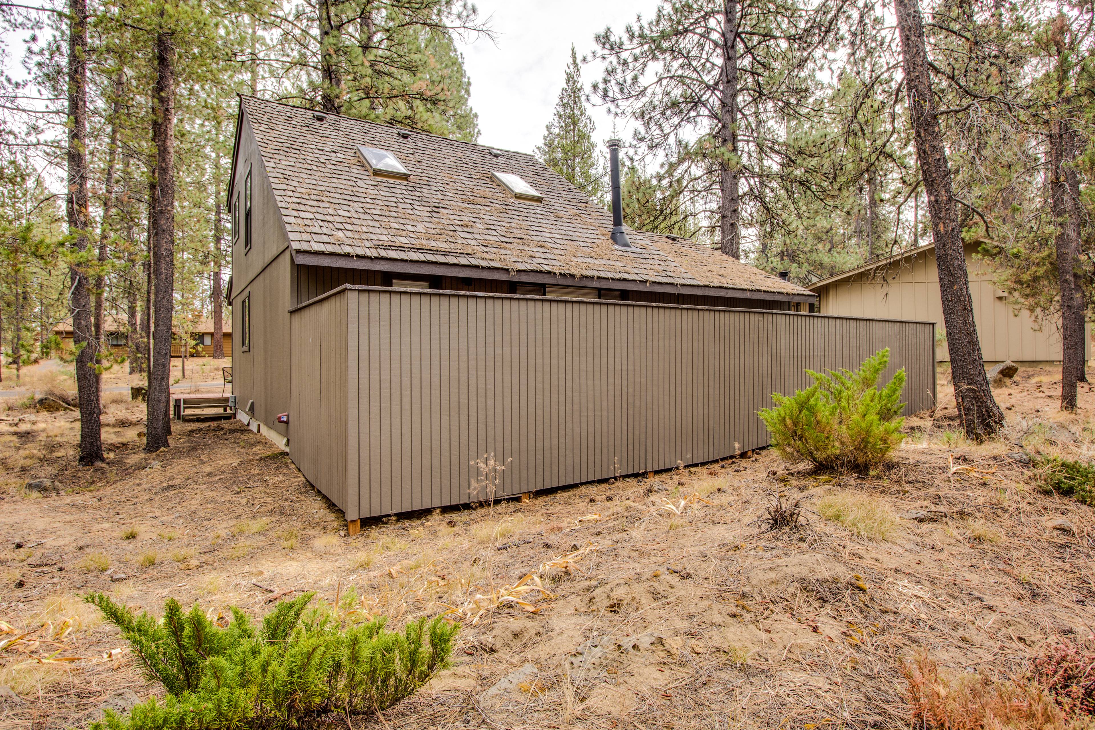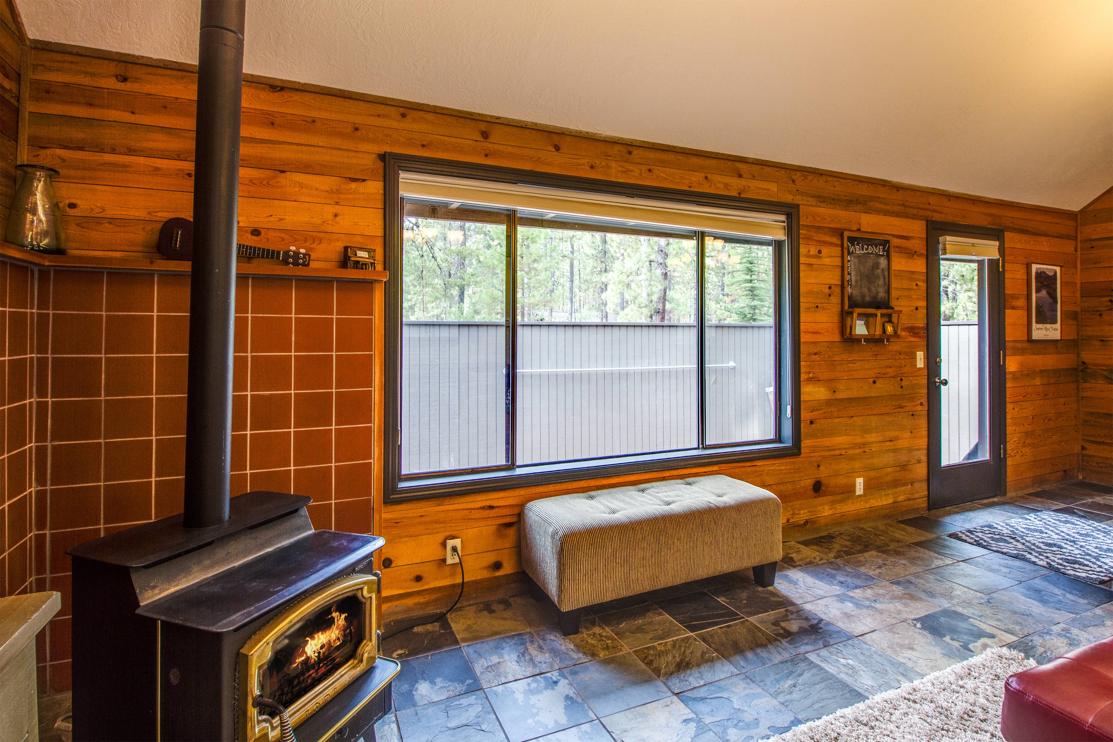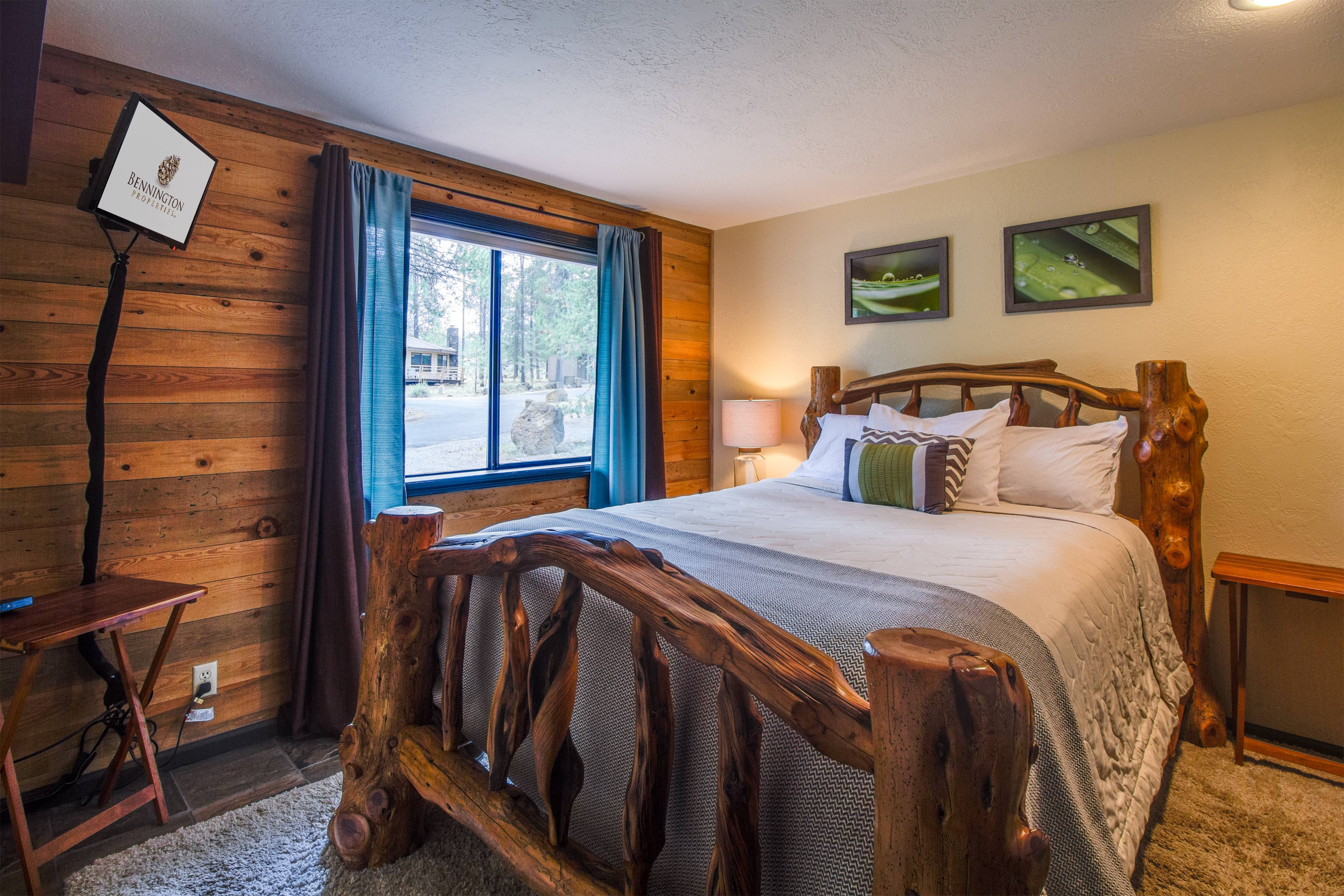 This conveniently located home is a great getaway in the forest. Downstairs you will find a queen bedroom with beautiful wood frame bed, large closet, and flat screen TV. Across the hall is the downstairs full bathroom with tub. The kitchen has all the necessities, including a Keurig coffee maker [bring your own pods] and bar seating. Adjacent is the dining room with seating for 6. In the living room you will find a large sectional, flat screen TV, and gas fireplace to keep you warm on those chilly Sunriver nights, and central A/C to keep you cool during the warm summer days. The back door leads out to the fully enclosed patio with BBQ and hot tub, a perfect private spot for stargazing.