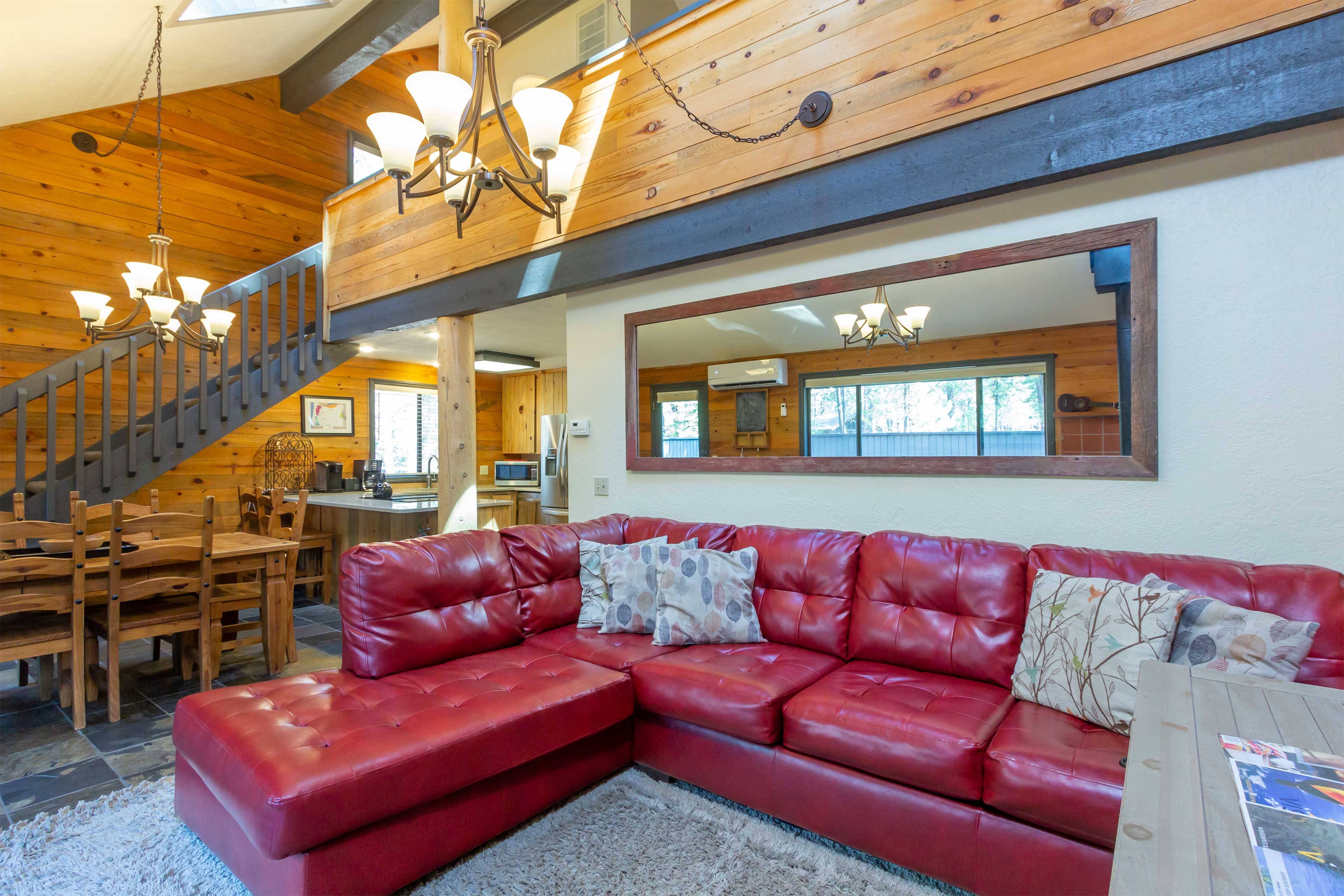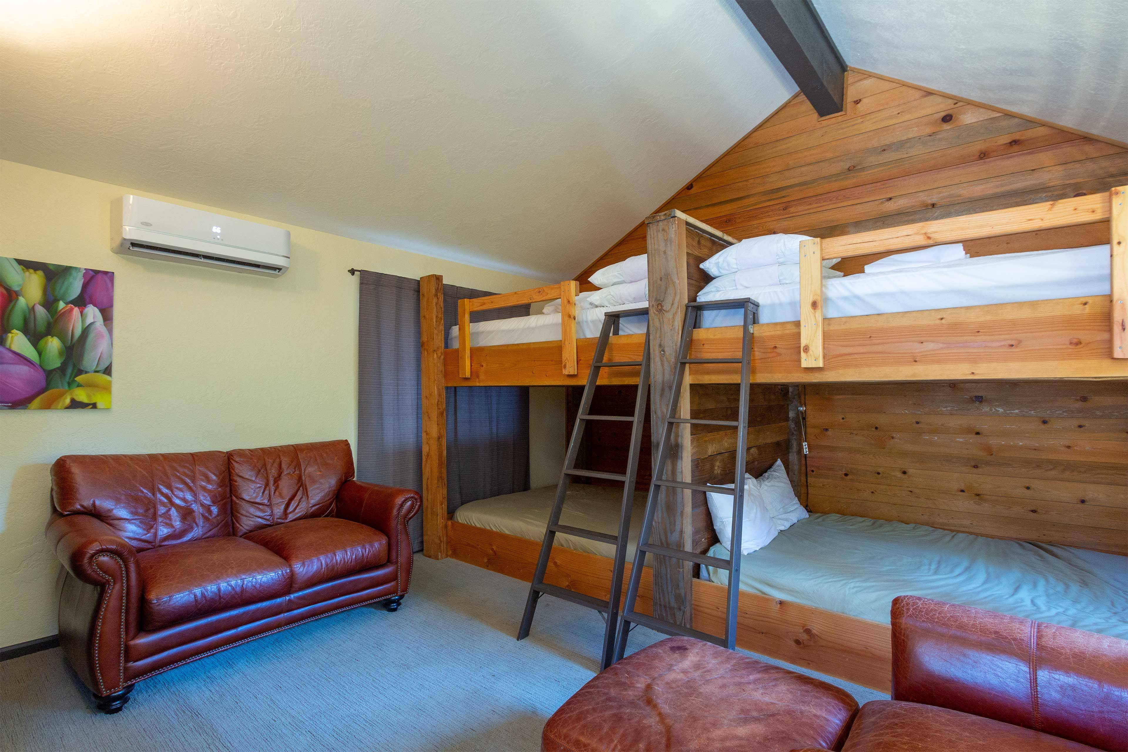 Upstairs is the loft with a second full bathroom and two sets of queen bunk beds. Several skylights show off serene forest views and let in that gorgeous Sunriver light.