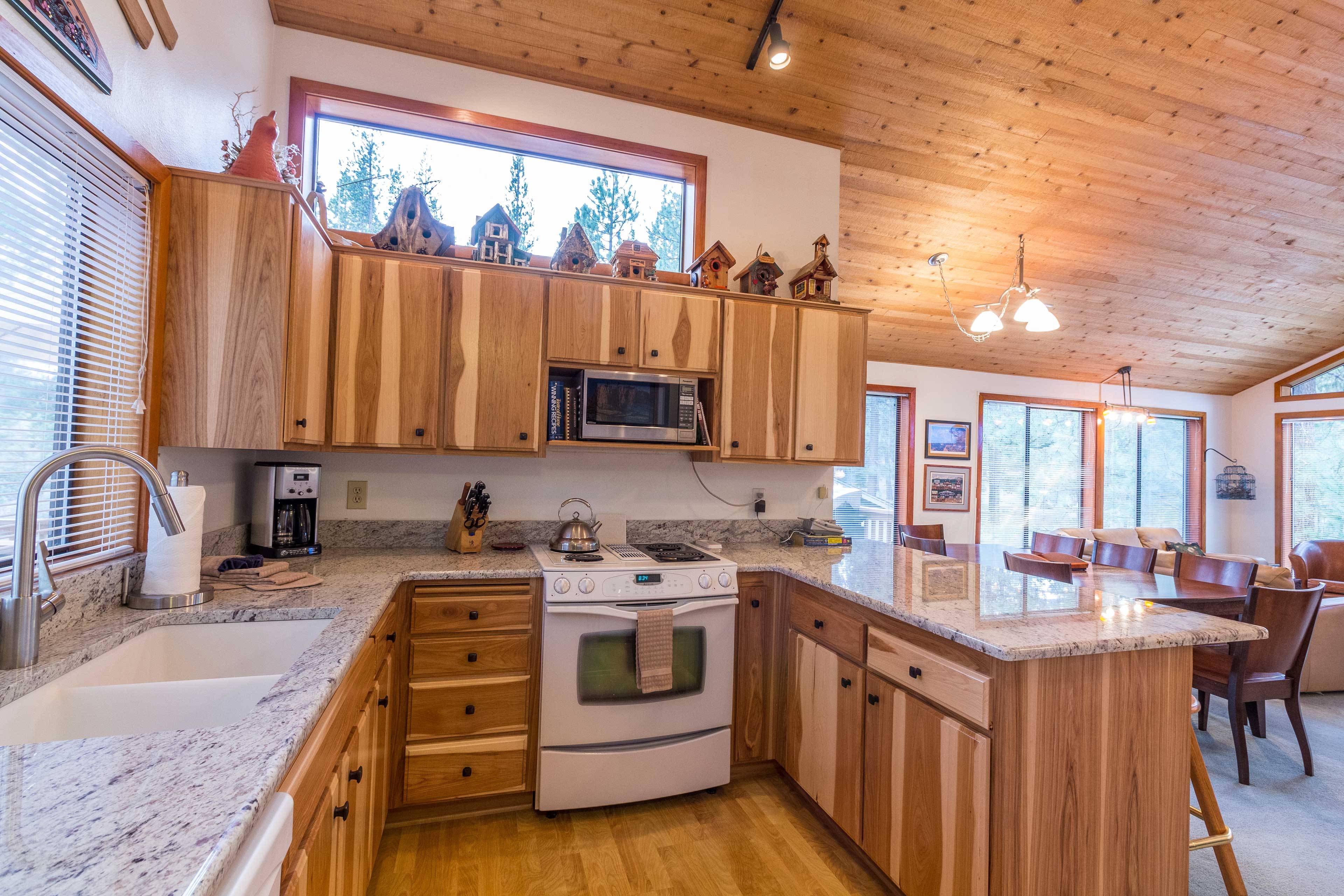 Welcome to your serene retreat at Juniper 9, nestled in the heart of Sunriver, Oregon. This charming four-bedroom, two-bathroom home is perfect for families and friends seeking a cozy getaway. The spacious layout includes a fully equipped kitchen, a comfortable living room with a gas fireplace, and a dining area that seats eight.