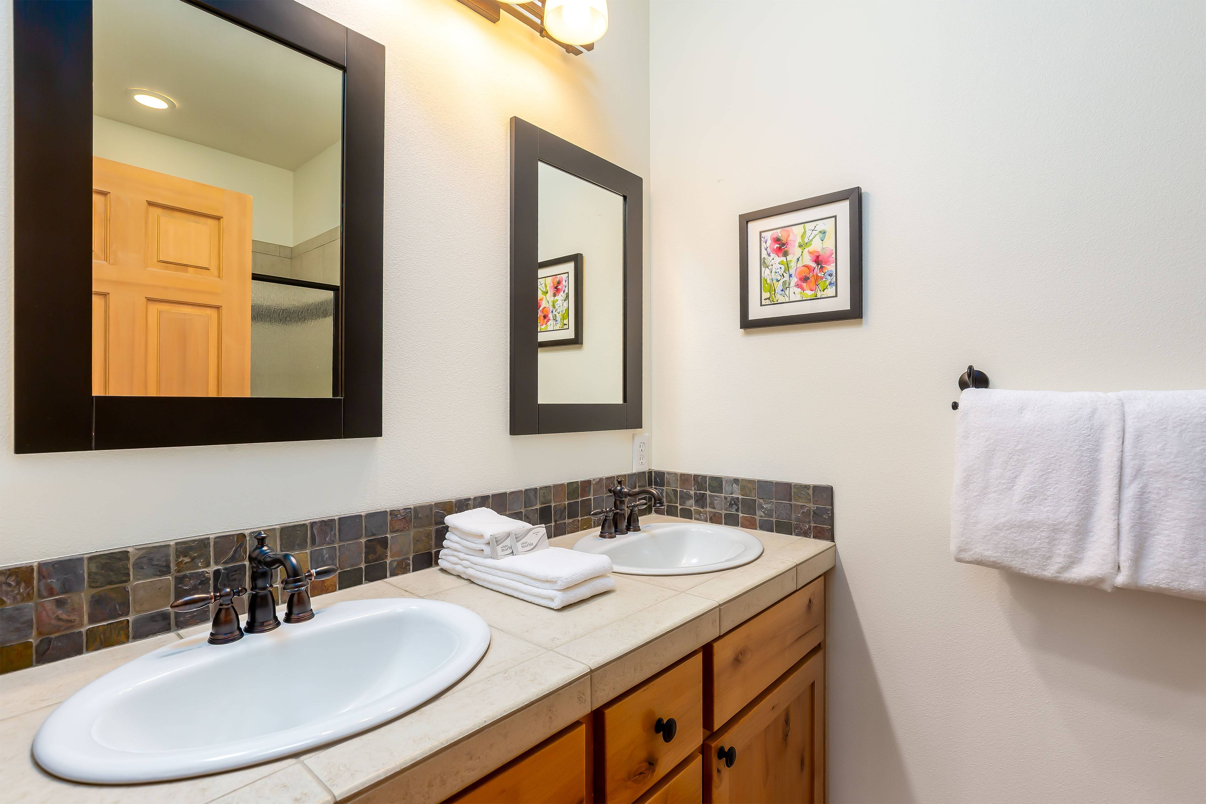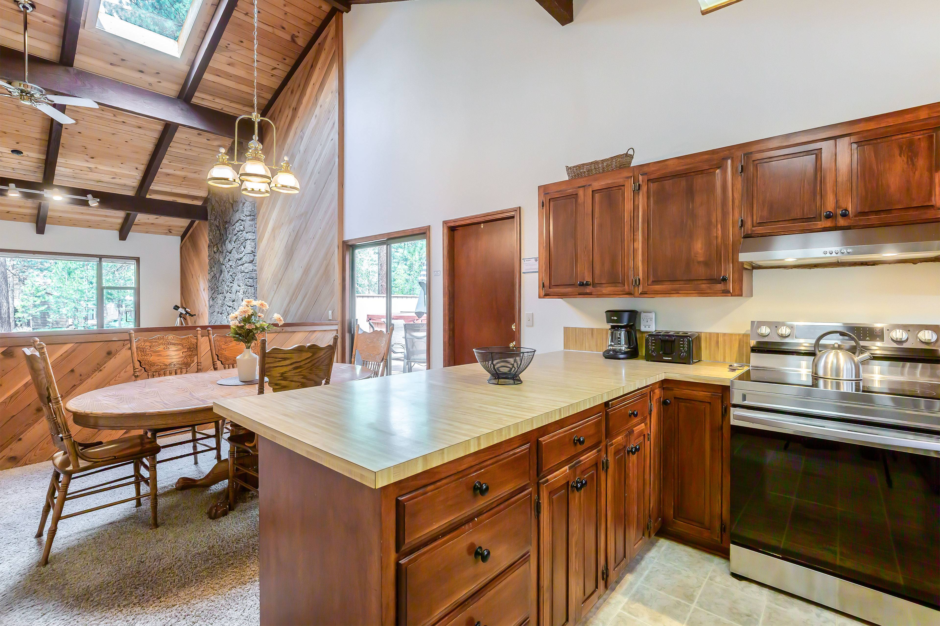 Two master bedrooms and a large bunkroom for the kids give everyone their own space when they want it. Plenty of room on the deck with lots of seating available in the garage for dining outside in the evening to enjoy the pleasant summer breeze. Grill worked great, hot tub was a great ending to days of hiking, paddling, biking, and disc golf. One of the best-equipped kitchens we've seen in Sunriver, making meal prep easy and fun!