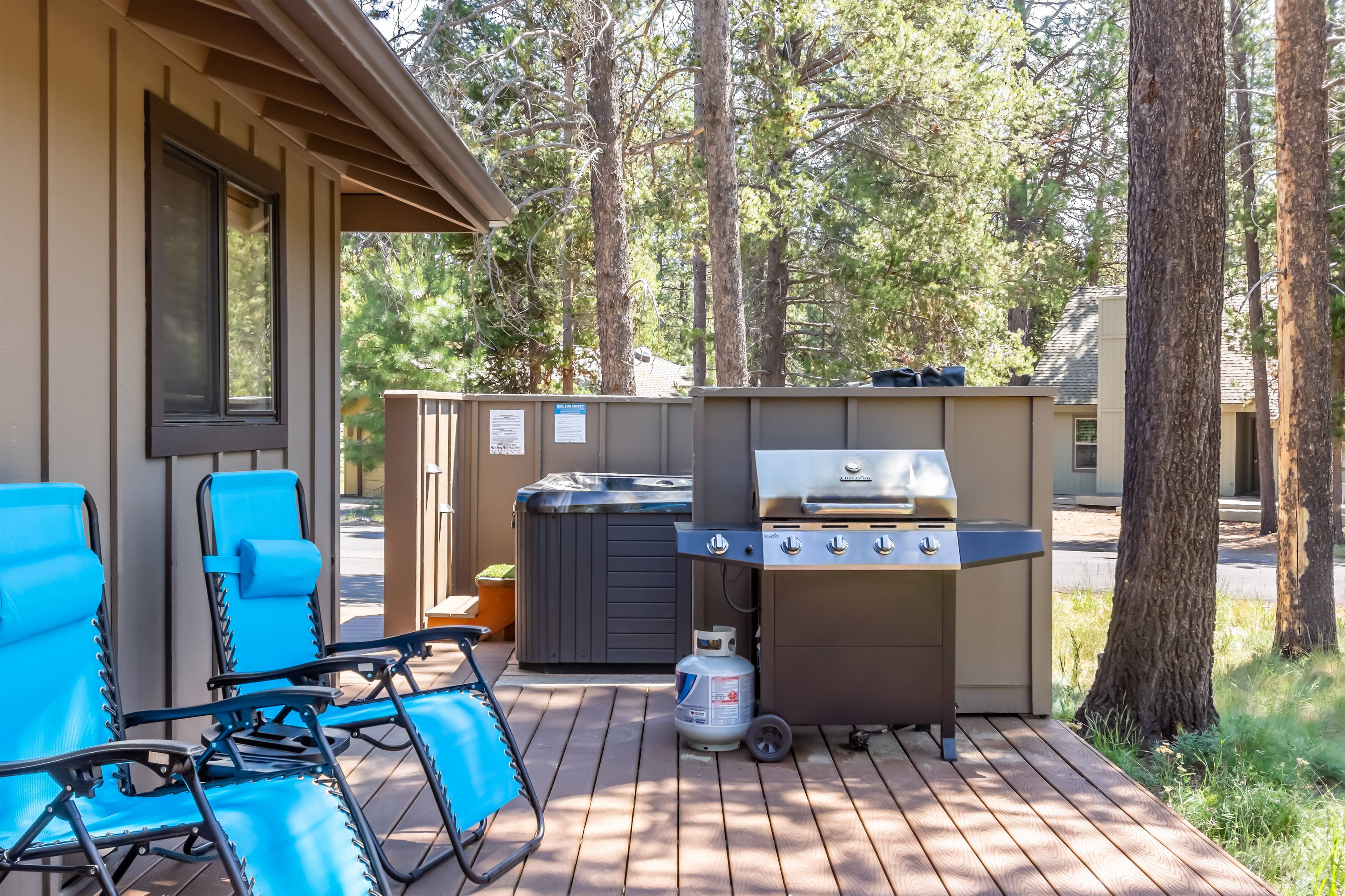 Outside, there's a large deck with a private hot tub and grill, it's the perfect place to spend a sunny morning with a cup of coffee or a comfortable summer evening enjoying a meal together.