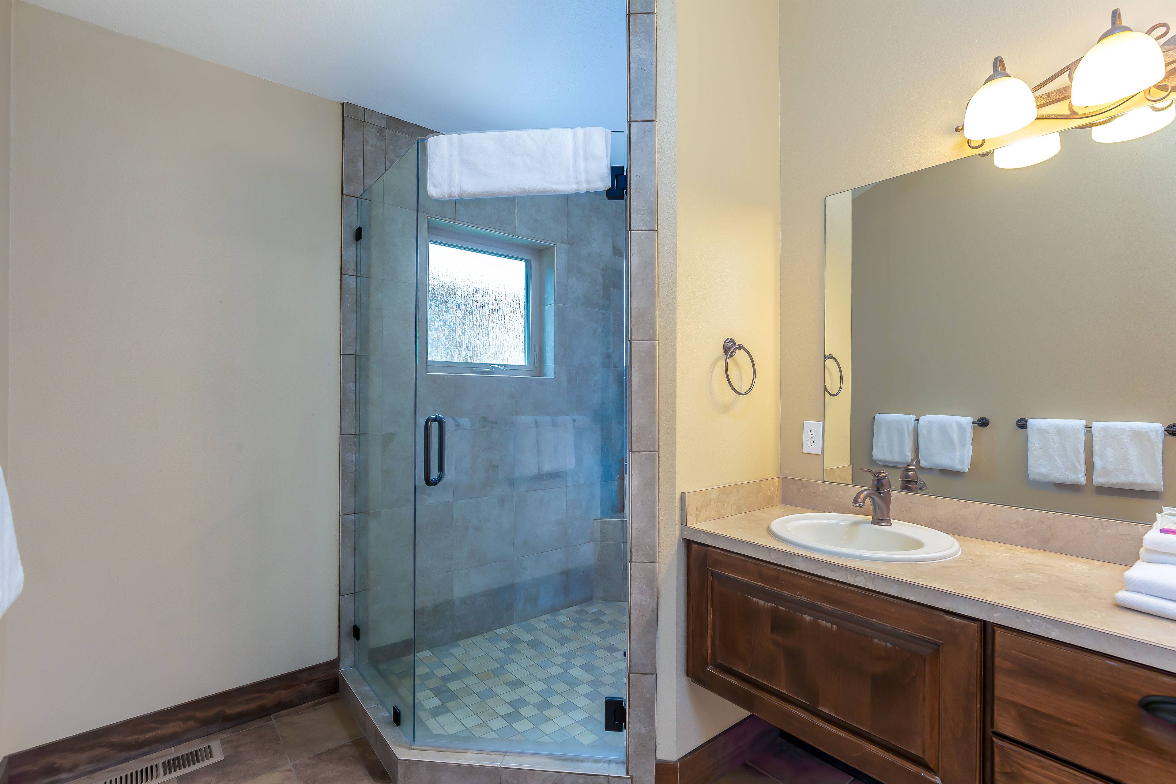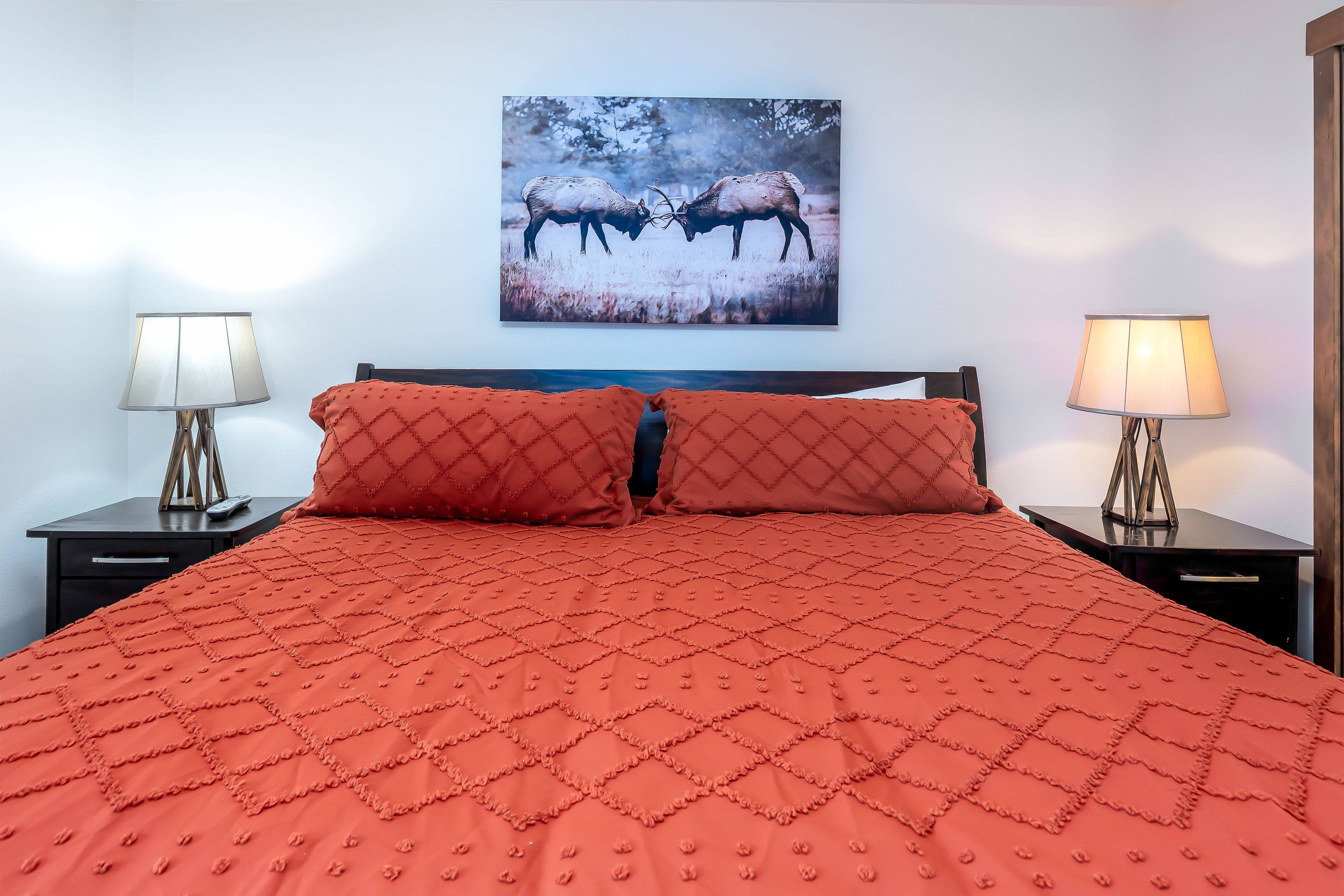 Bedroom 2: One King Bed, One Bunk Bed, Full Bathroom with Walk-in Shower