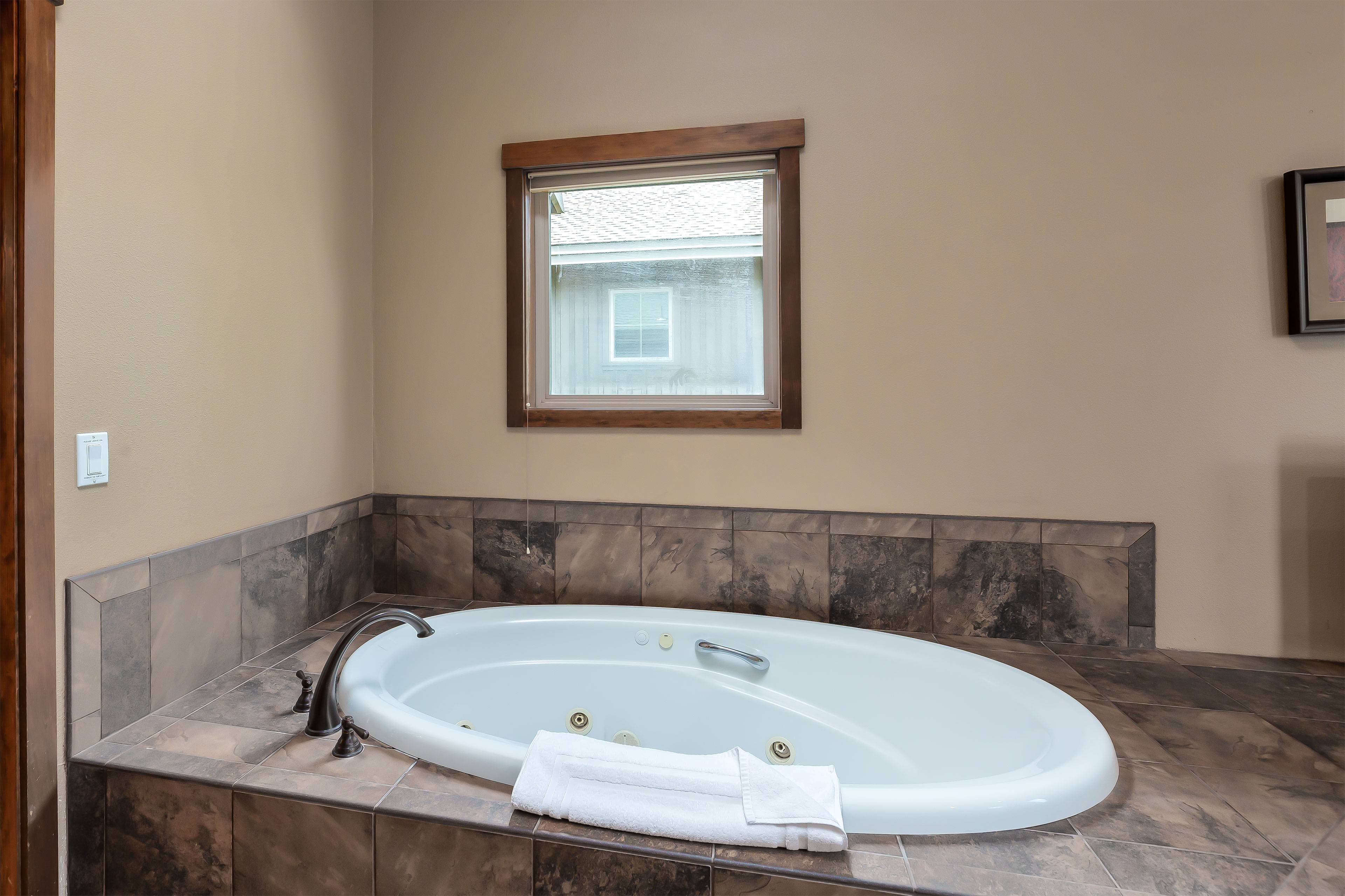 Bedroom 1: One King Bed, Full Bathroom with Soaking Tub