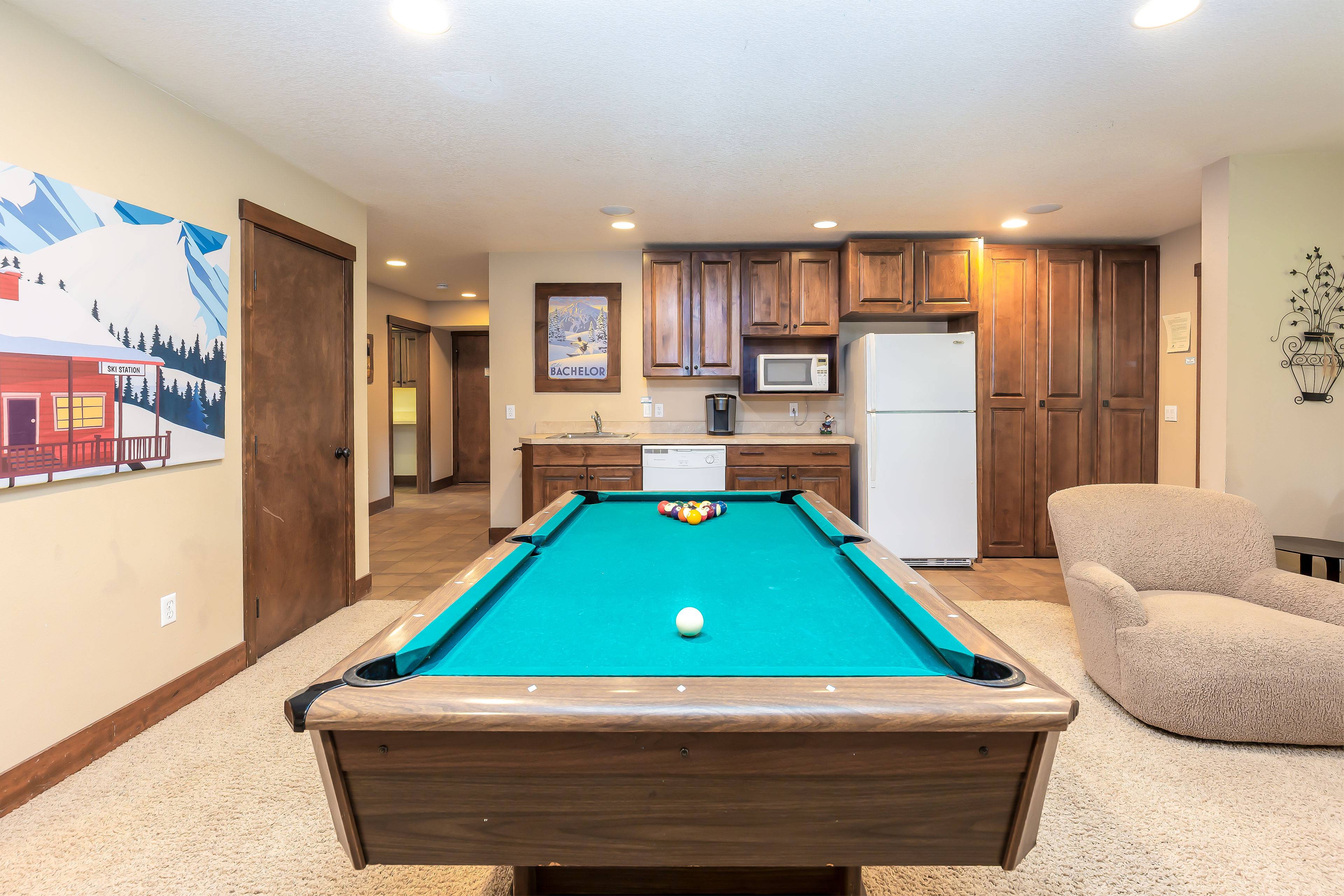 Media Room with TV, DVD, Pool Table and Kitchenette