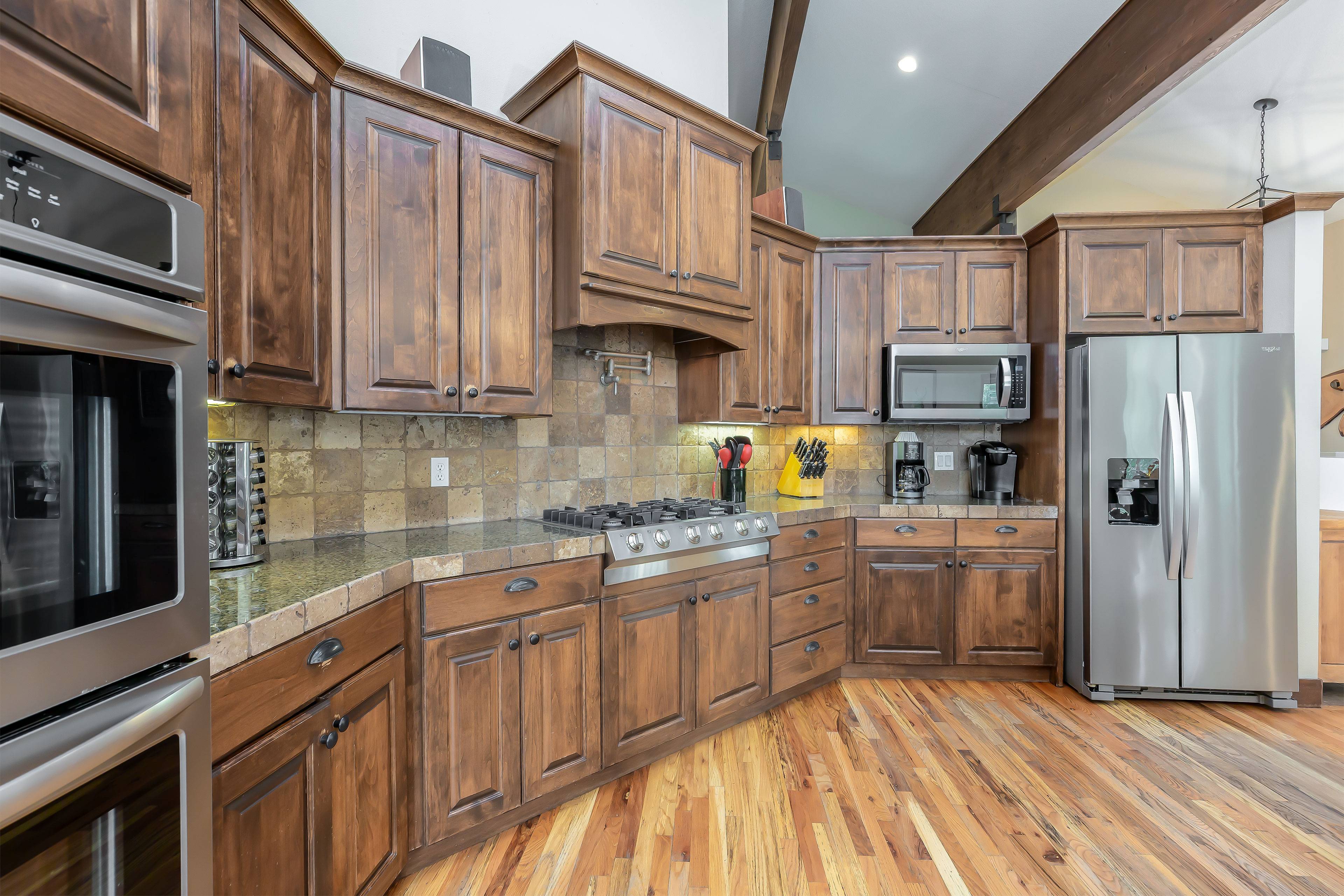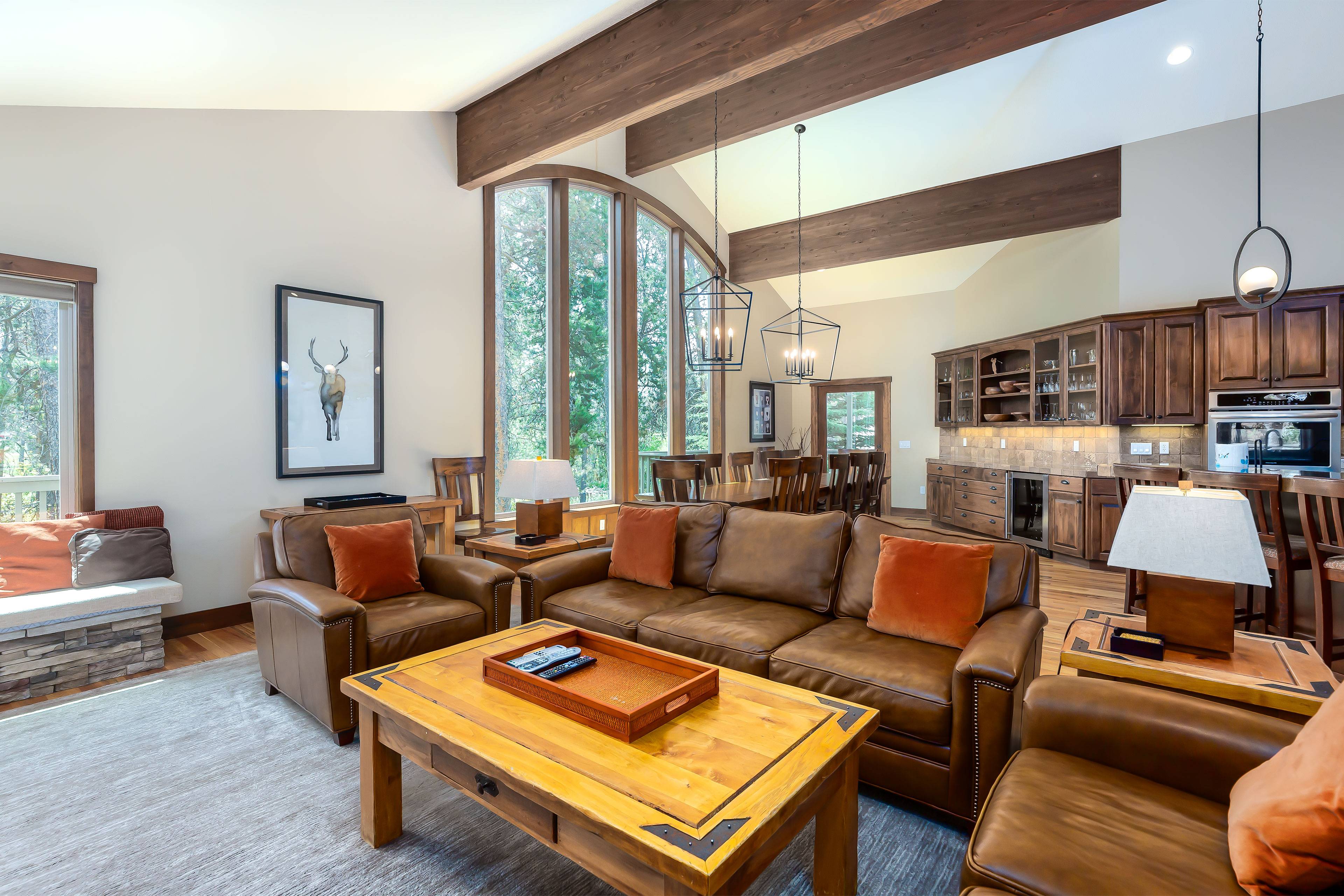 Two well-appointed living areas in the home provide plenty of room for movie viewing and relaxing with friends. You can also take advantage of a well-equipped kitchen for all your cooking or food storage needs. Don’t forget to use the hot tub and the large backyard deck after a busy day of skiing, biking or swimming.
