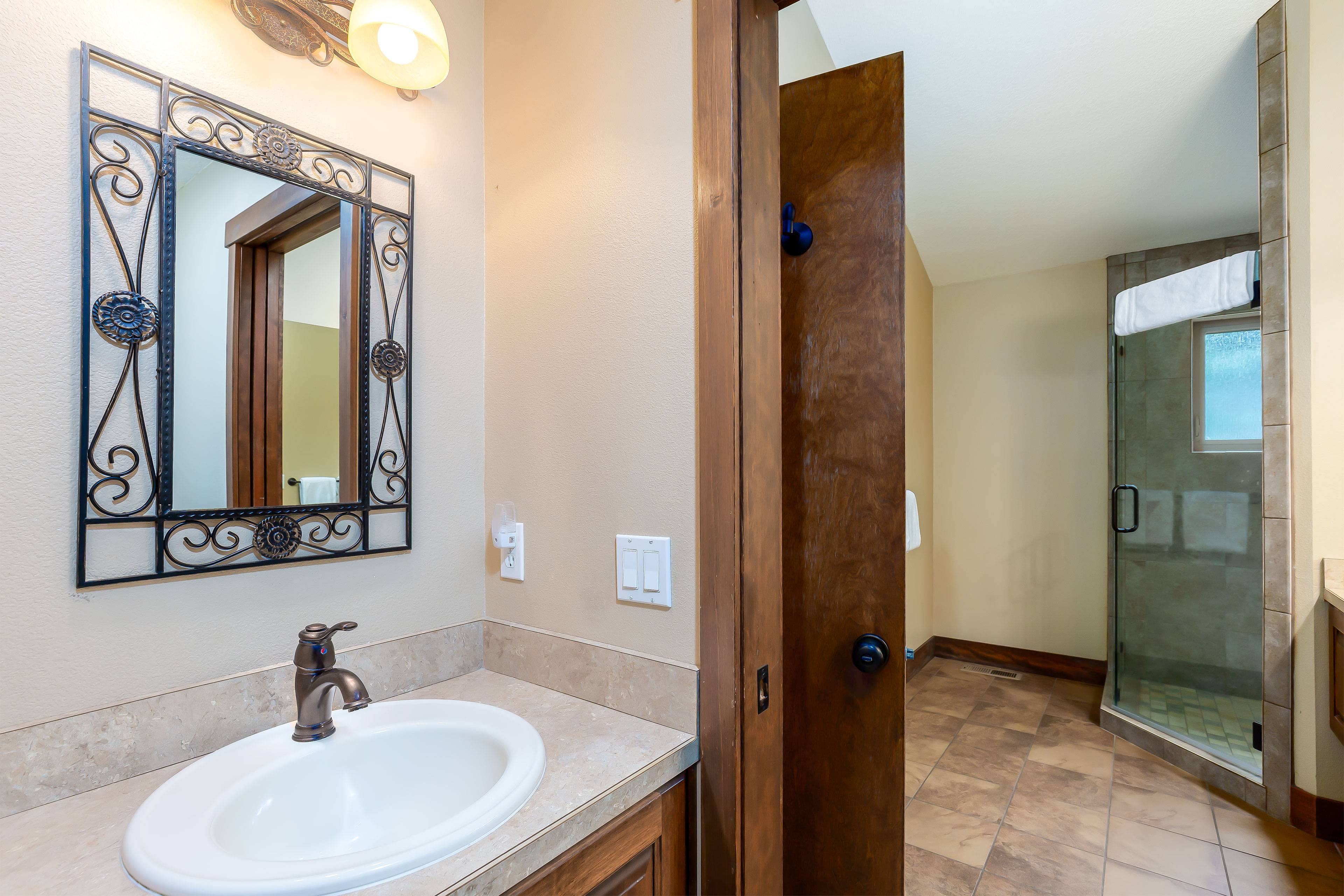 Gather your family and friends to come and enjoy this spacious six-bedroom (all suites) Sunriver home. Situated amongst beautiful Ponderosa Pines, this immaculate home boasts all the amenities you might need for a fun vacation. With two bedrooms on the main floor, you have the choice to stay close to your guests or you can stay in one of the four bedrooms downstairs for added privacy.
