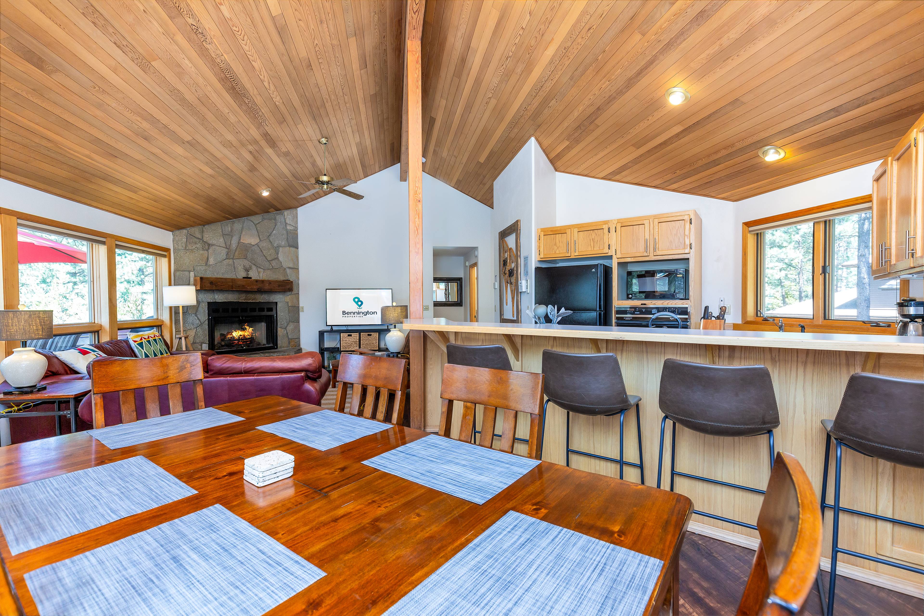 Had the pleasure of staying at 33 McNary in Sunriver for four days on 10/6-10/9. We have been staying at various vacation rentals in this wonderful family resort for decades, so we have lots of experience with rental properties. This one is truly special. It is quite spacious, and well maintained. Appliances are in good to excellent condition, the open concept of kitchen to dining area to living room is welcoming for a large group, and the area is surrounded by windows that look out onto national forest land. Decks are wide with nice views, and there is a gas barbecue, as well as a hot tub. There are three bedrooms, and the mattresses are new and comfortable. Each bedroom has its own smart TV, and there is a lot of attention to detail: laundry hampers in the closet, lots of hangers, smart phone chargers on the bedside tables, plenty of towels in the bathrooms. Also, so nice to have a mudroom when you come in from skiing, hiking, or biking right near the washer and dryer. Lots of bikes are available, including kids bikes in good condition! Really liked this quiet area which is close to the north golf course, and right by a bike path. It is an easy ride to the Deschutes river, and then a short hike to Benham Falls, which is truly stunning. All in all, we will definitely look forward to staying here again.