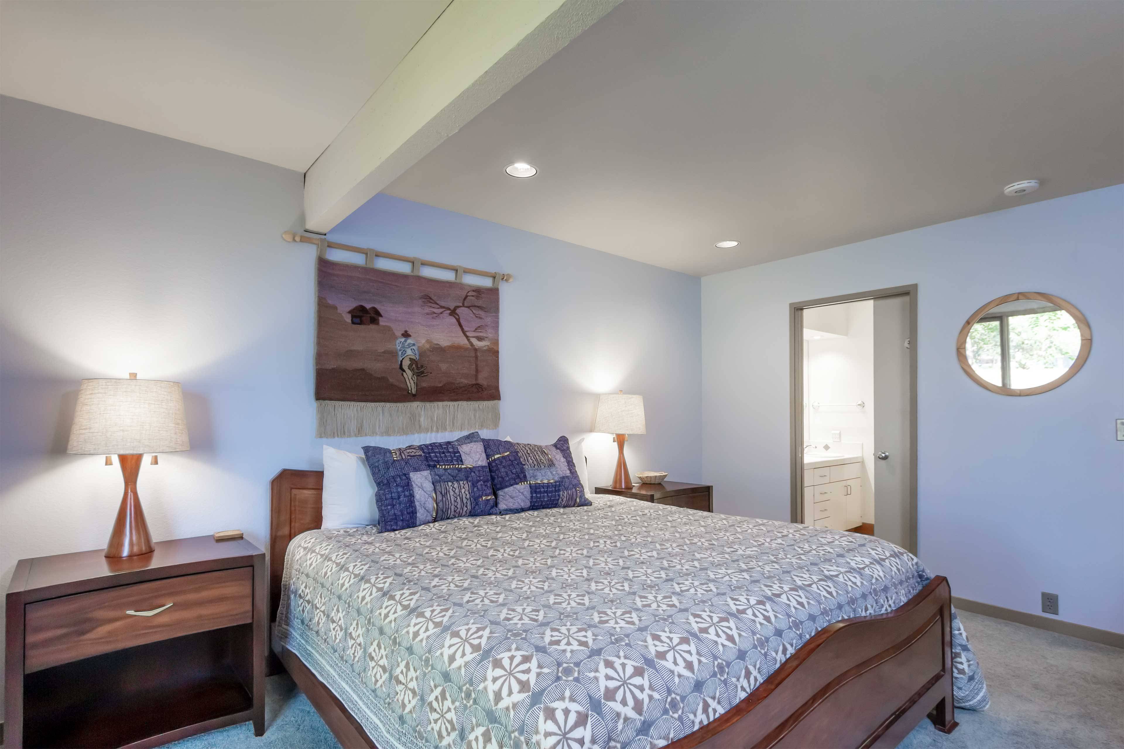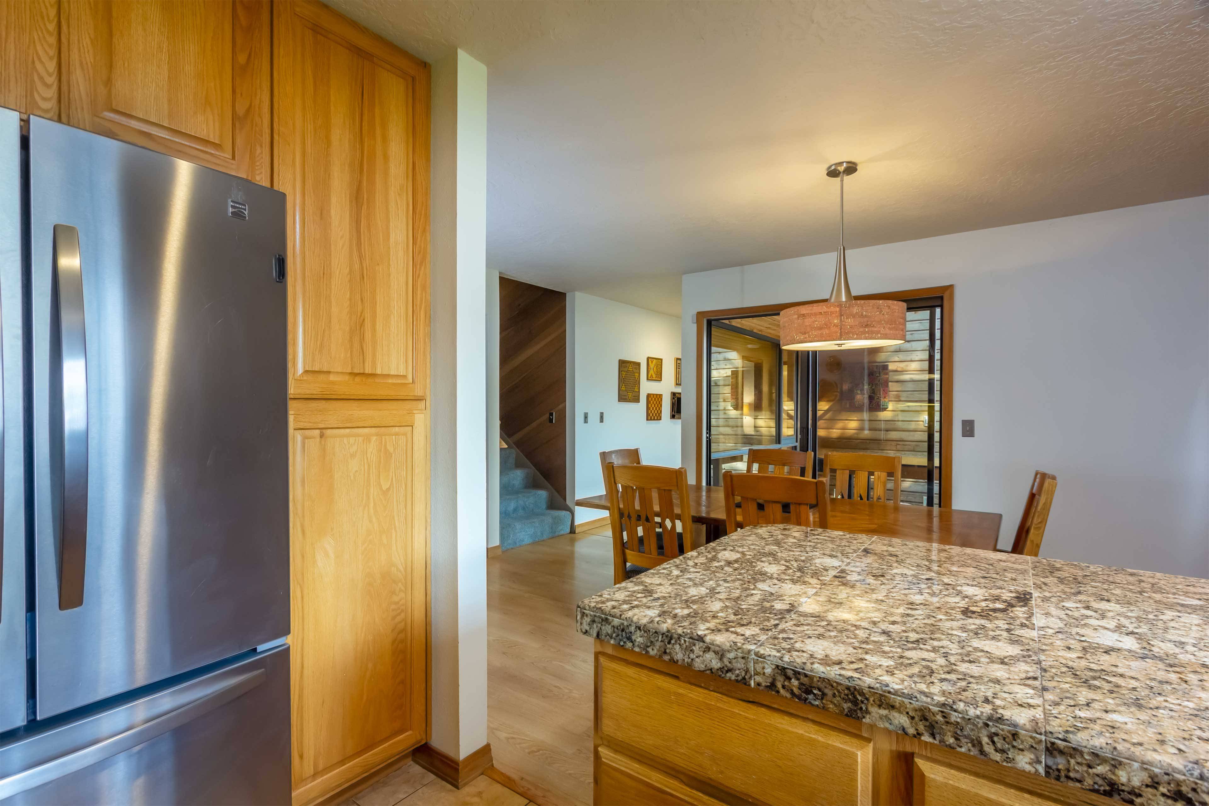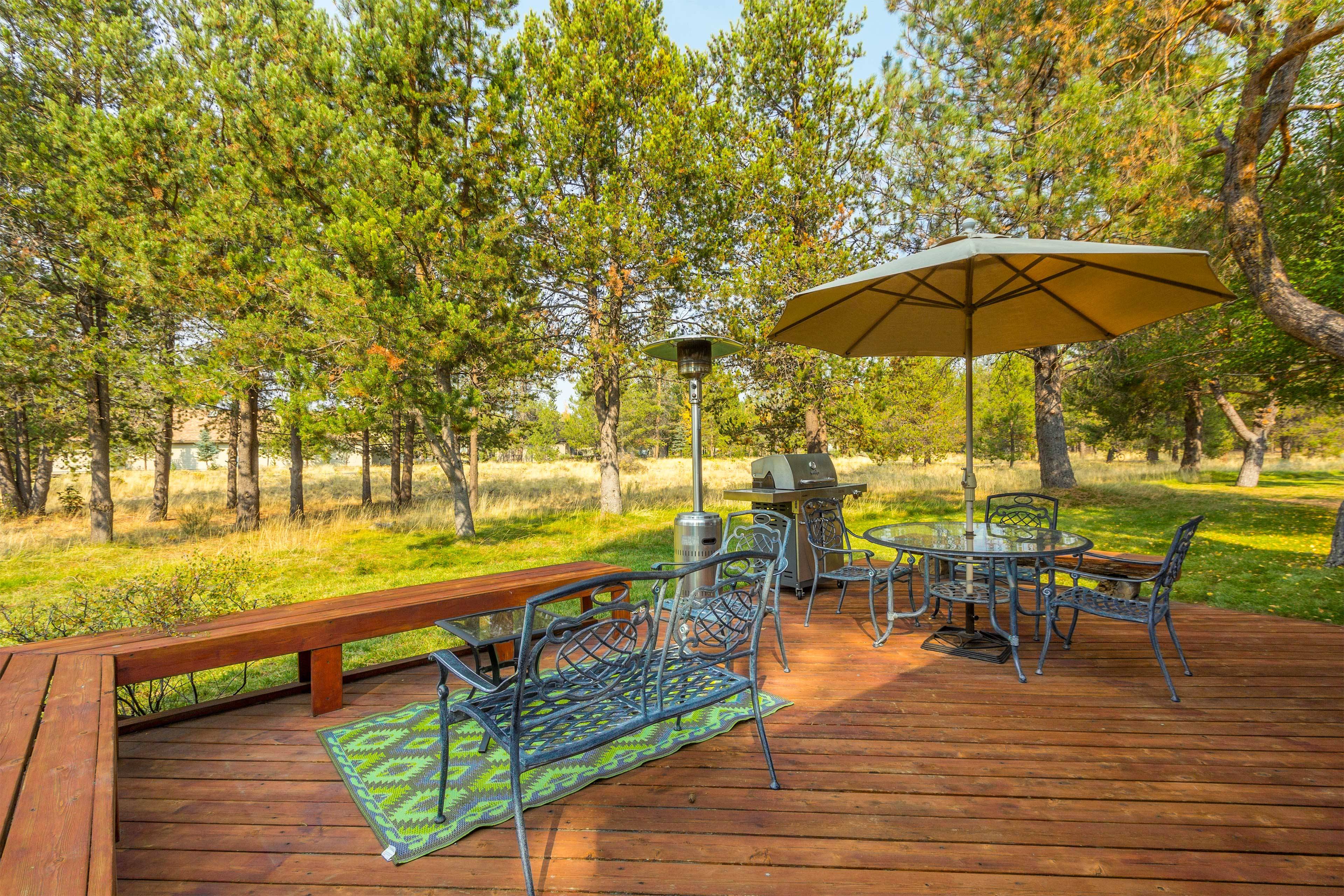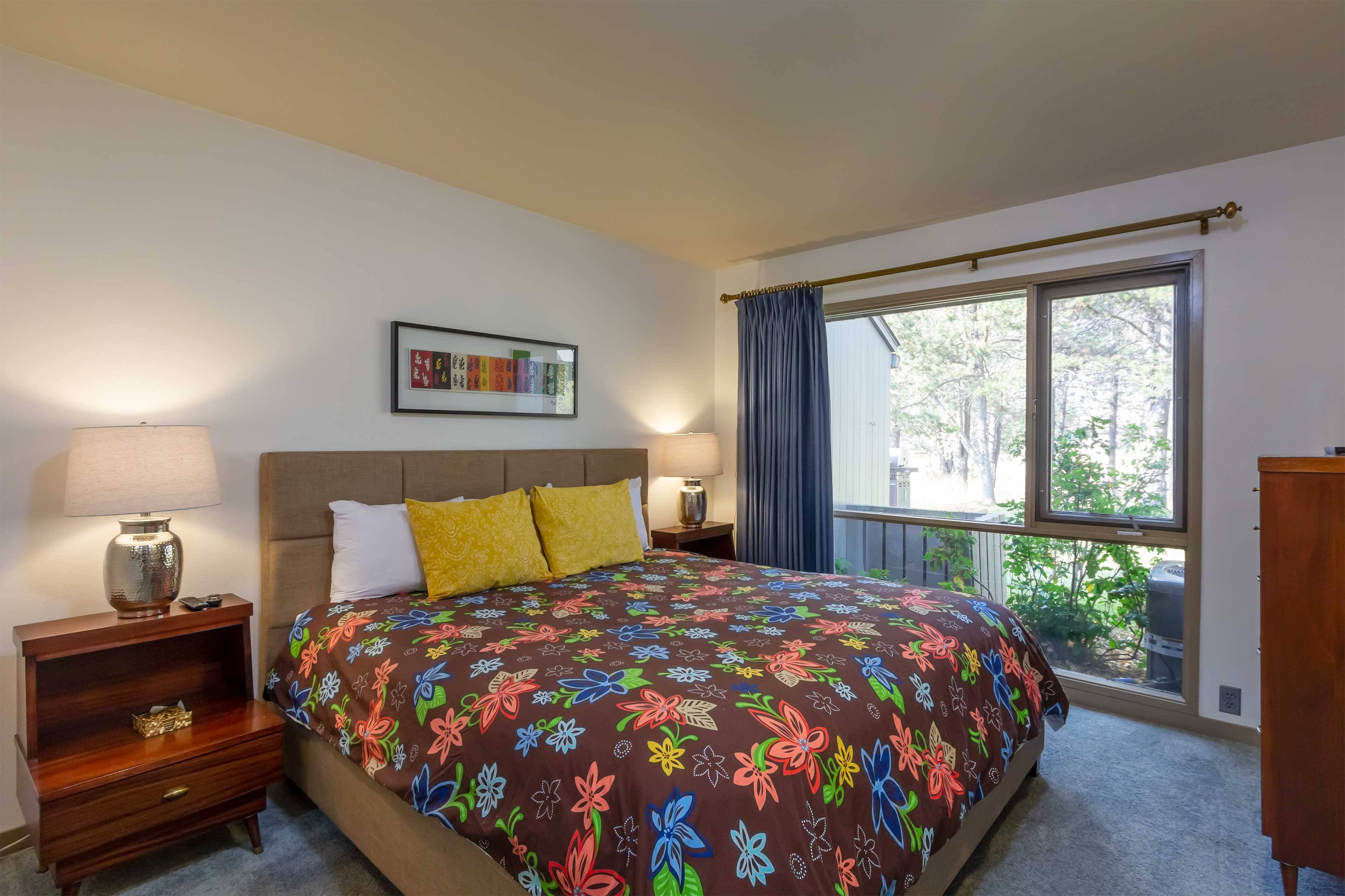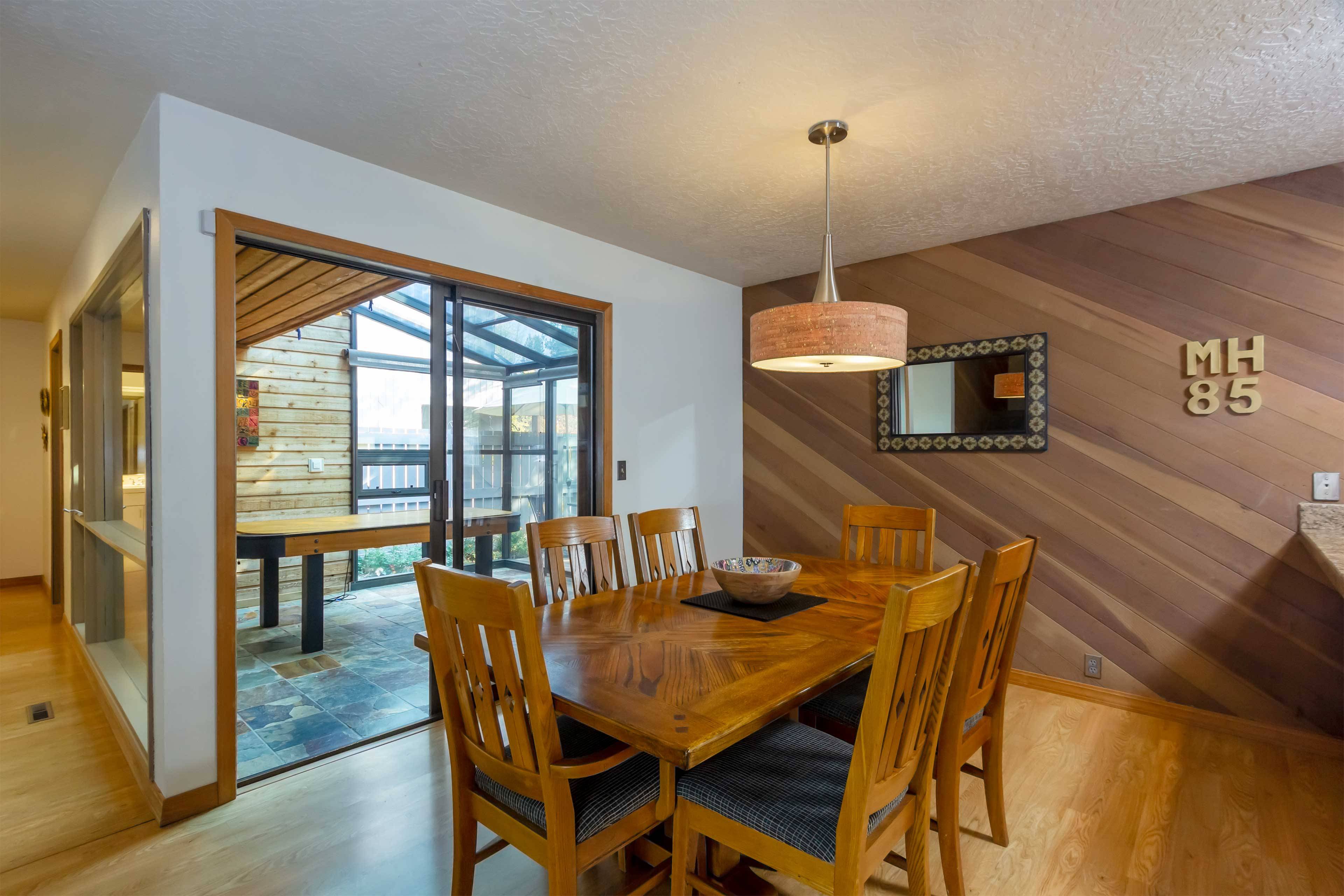 This condo has all the upgrades and charm to make your Sunriver experience truly exceptional. The gourmet kitchen with slab granite counter-tops, stainless appliances and gas range grill make cooking a breeze. An adjacent dining area features seating for 6 and opens up to a beautiful sun room and great outdoor living space with patio seating. Head back inside to the living area, tastefully decorated with comfortable furnishings, a TV, gas stone fireplace, hardwood flooring, and board games - creating a great cozy feeling on a snow-filled winter night! Exit the living room to the back deck featuring a gas BBQ and outdoor seating for hosting summer meals. Down the hall is the laundry room, a full Jack and Jill bathroom attached to the King Ensuite bedroom, and a second King bedroom, each with a TV. On the upper level, you will find the loft-bedroom suite with a Queen bed and a private bathroom.