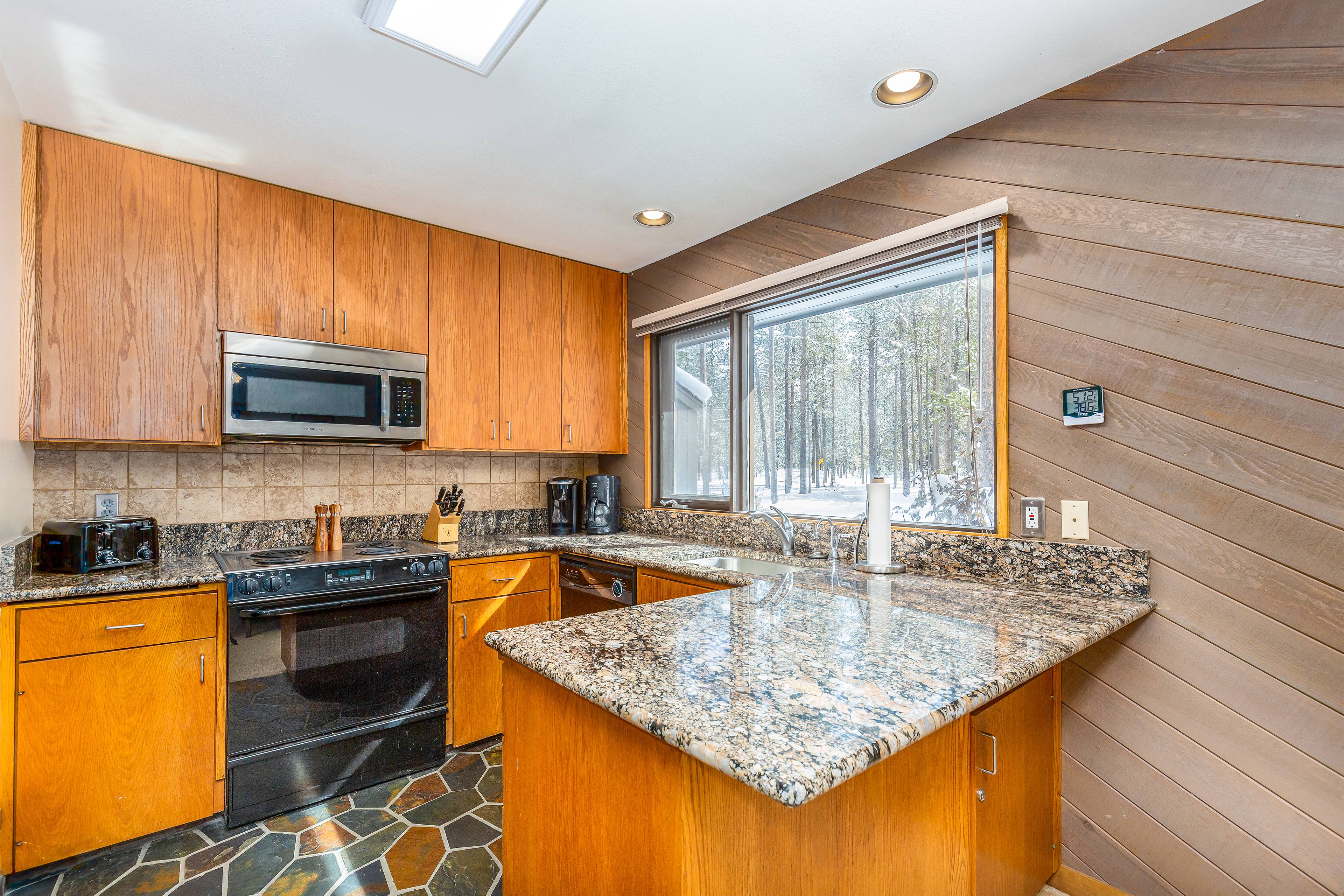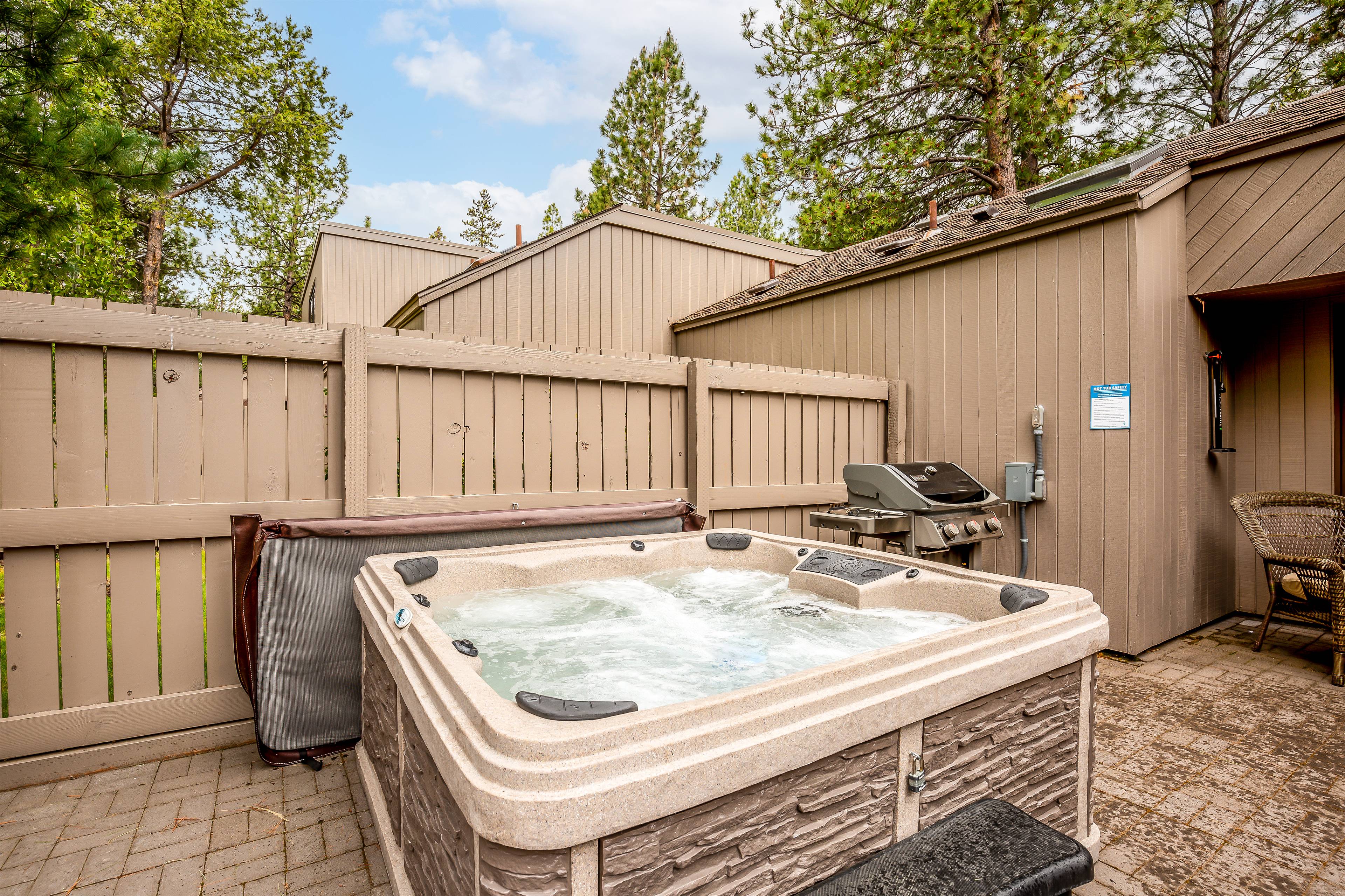 Enjoy the sunshine and outdoor grill in the private, enclosed patio. Hop on the two adult bikes to explore Sunriver and take a soak in the hot tub after a long day of adventure.