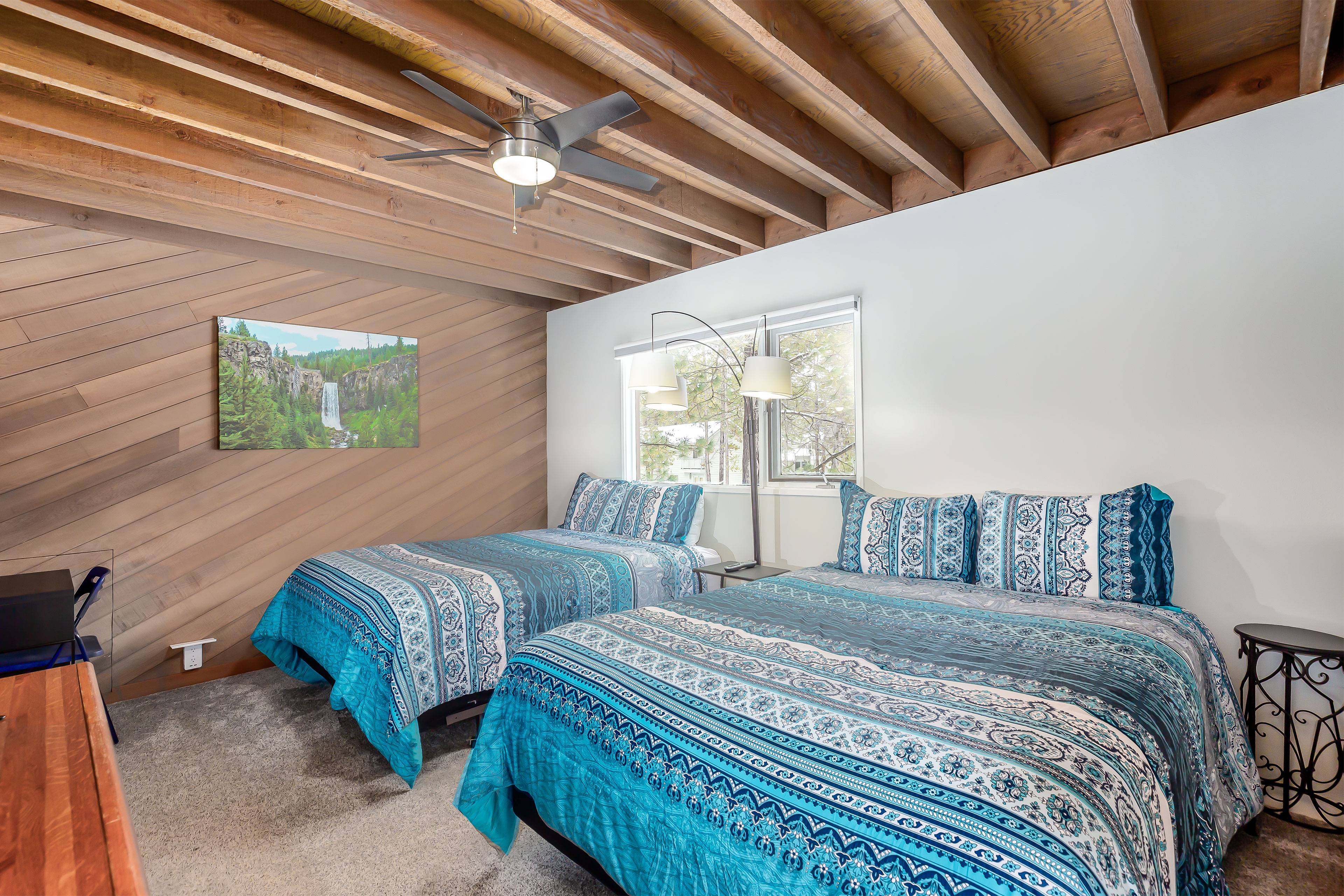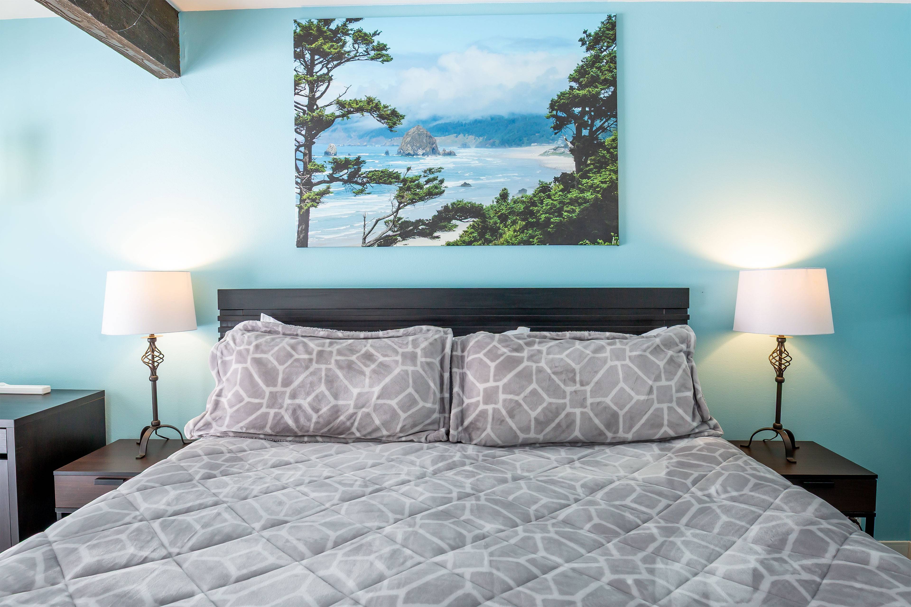Head upstairs to the open loft with two queen beds, a work station, and a private bathroom with walk-in shower.