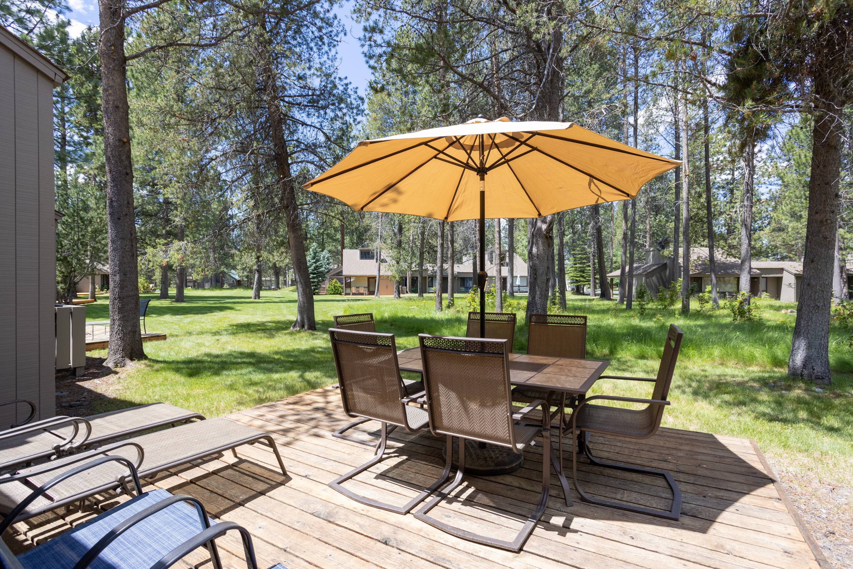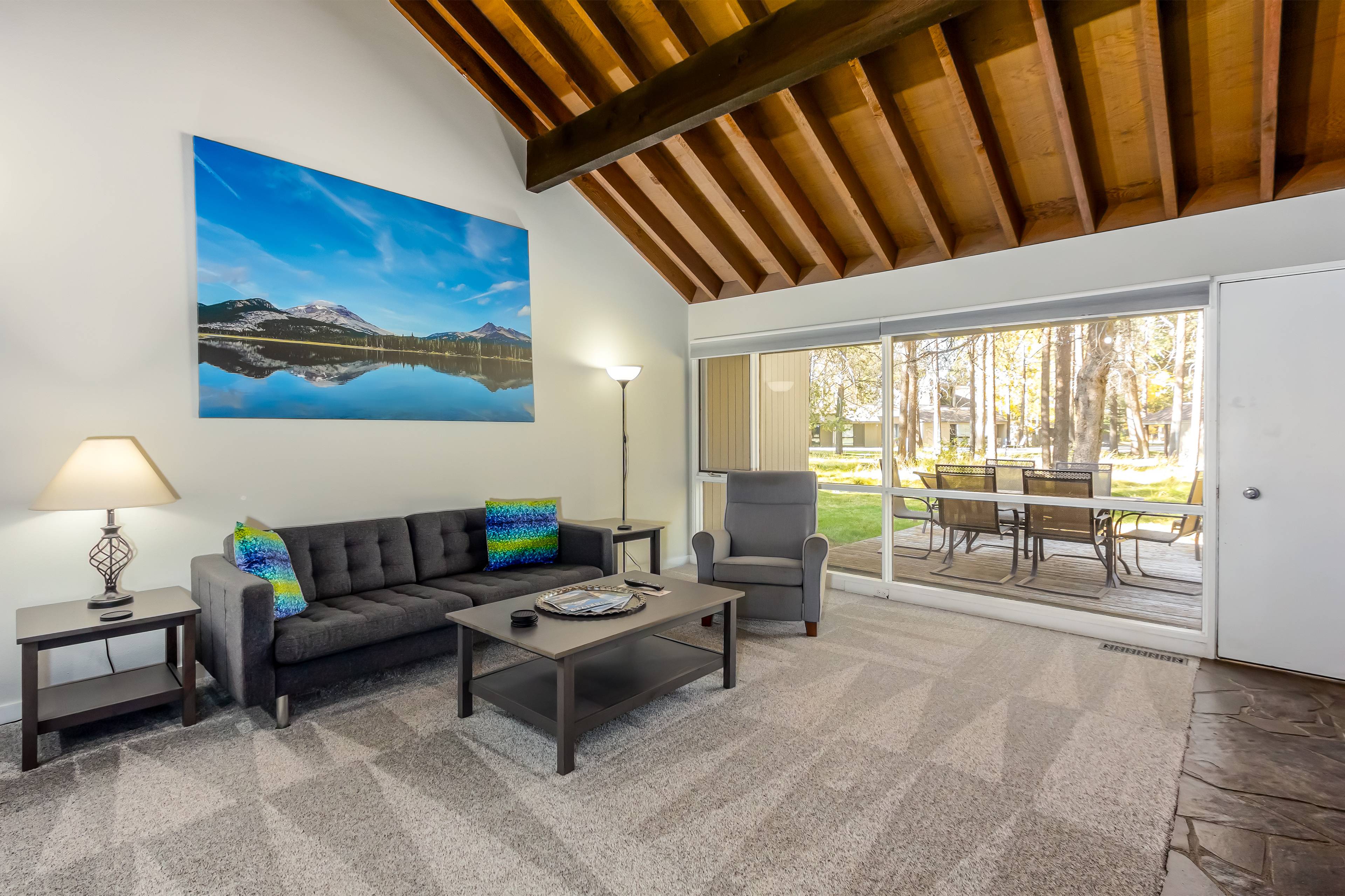 The location of this condo is amazing! It is an easy 5-8 minute walk to the Village. Meanwhile, it is also very quiet. The bright, cheerful interior is also versatile and comfortable. The kitchen is well stocked (but who needs to cook when you are so close to the Village?). Also, there's a great common area behind the back deck which is superb for a quick ball-throwing session for a dog. Furthermore, the Sunriver Nature Center and Observatory are an easy bike ride or walk.