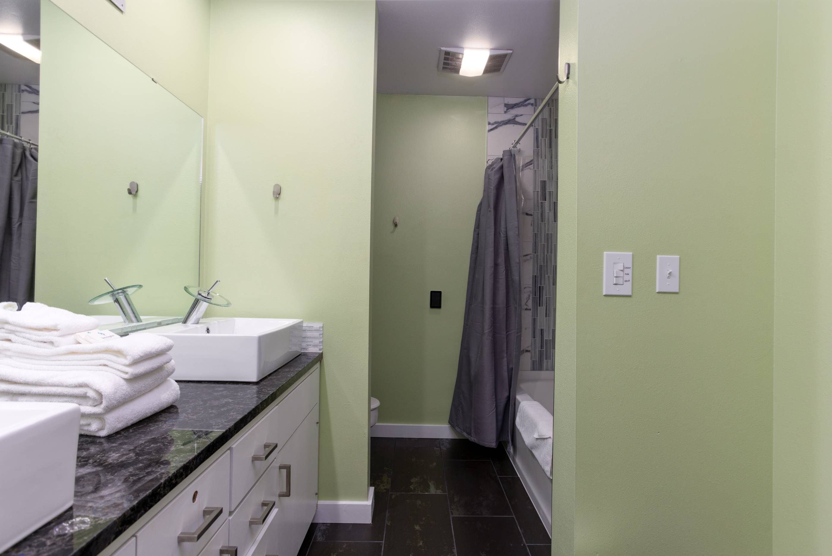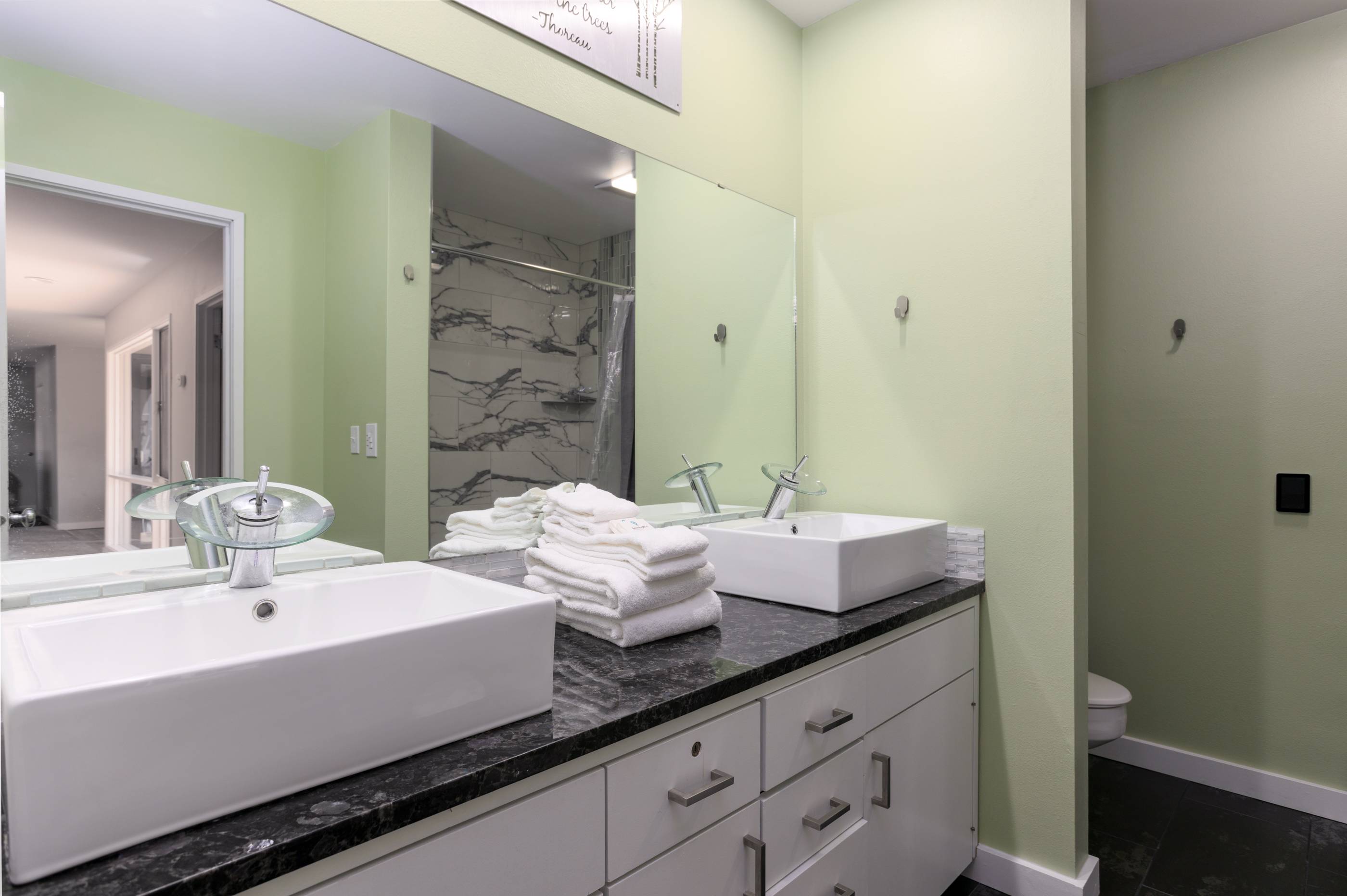 Downstairs you’ll find a King bedroom, Jack and Jill bathroom, and a queen bedroom with work station. There is also a laundry room on this level.