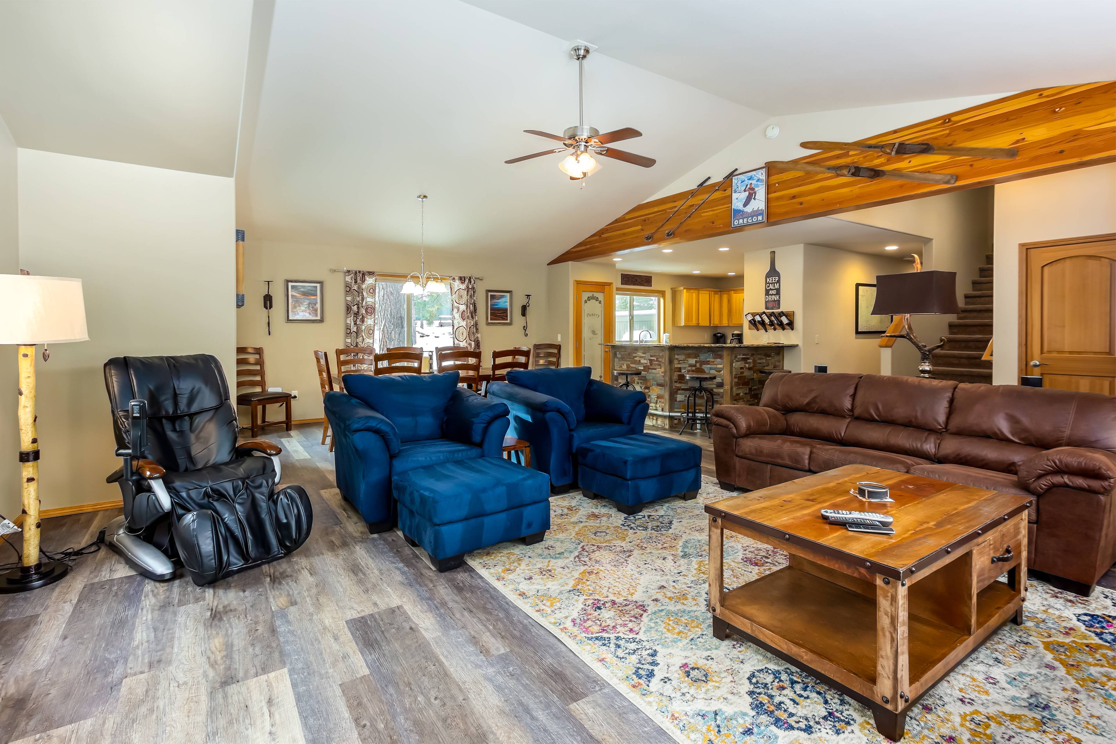 The fun continues outside! Enjoy ping pong in the garage, fire up the grill for al fresco dining on the large back deck, or hop on one of the 5 owner bikes to explore Sunriver’s 30+ miles of paved trails—there’s even direct access from the backyard path.